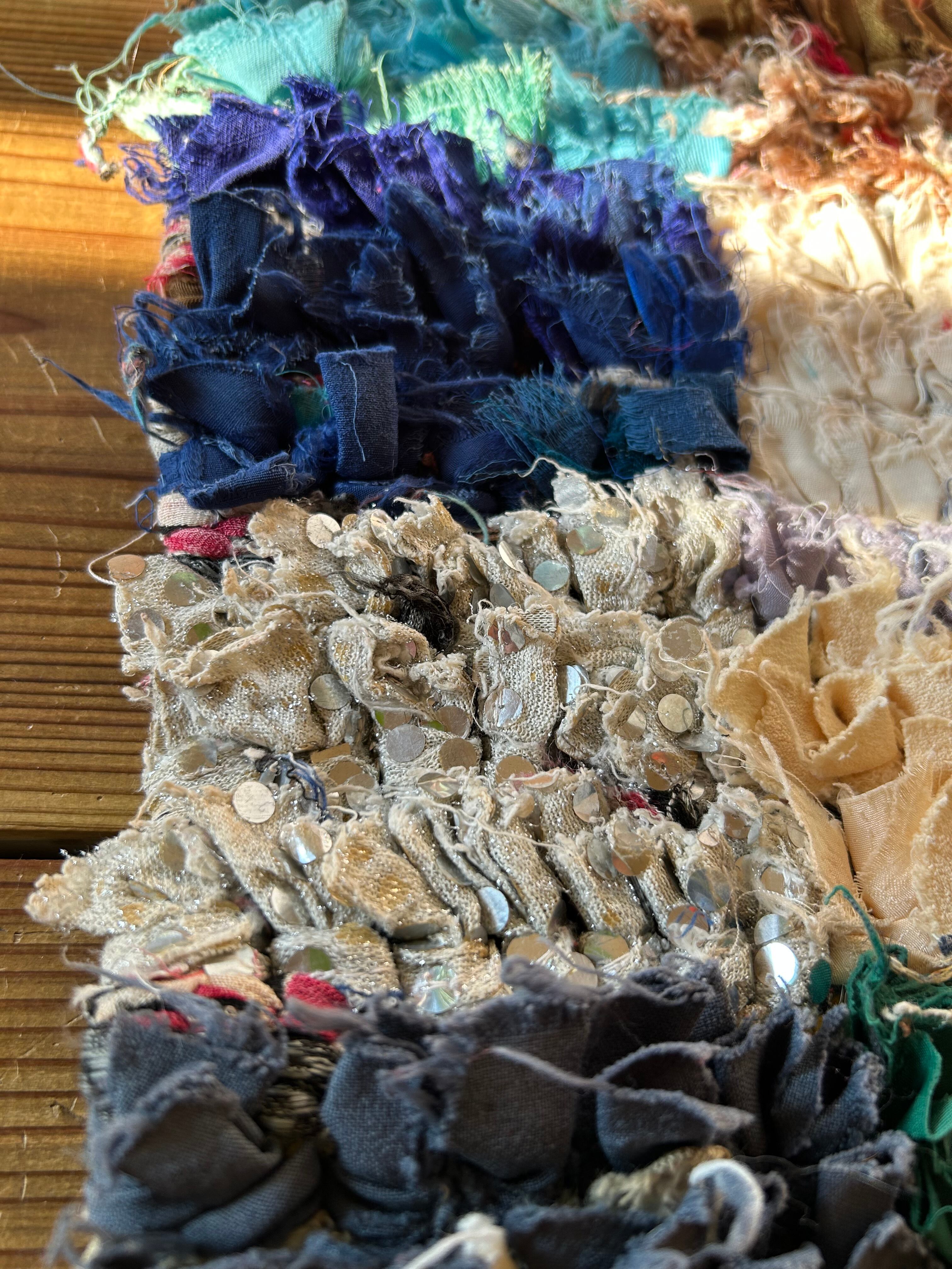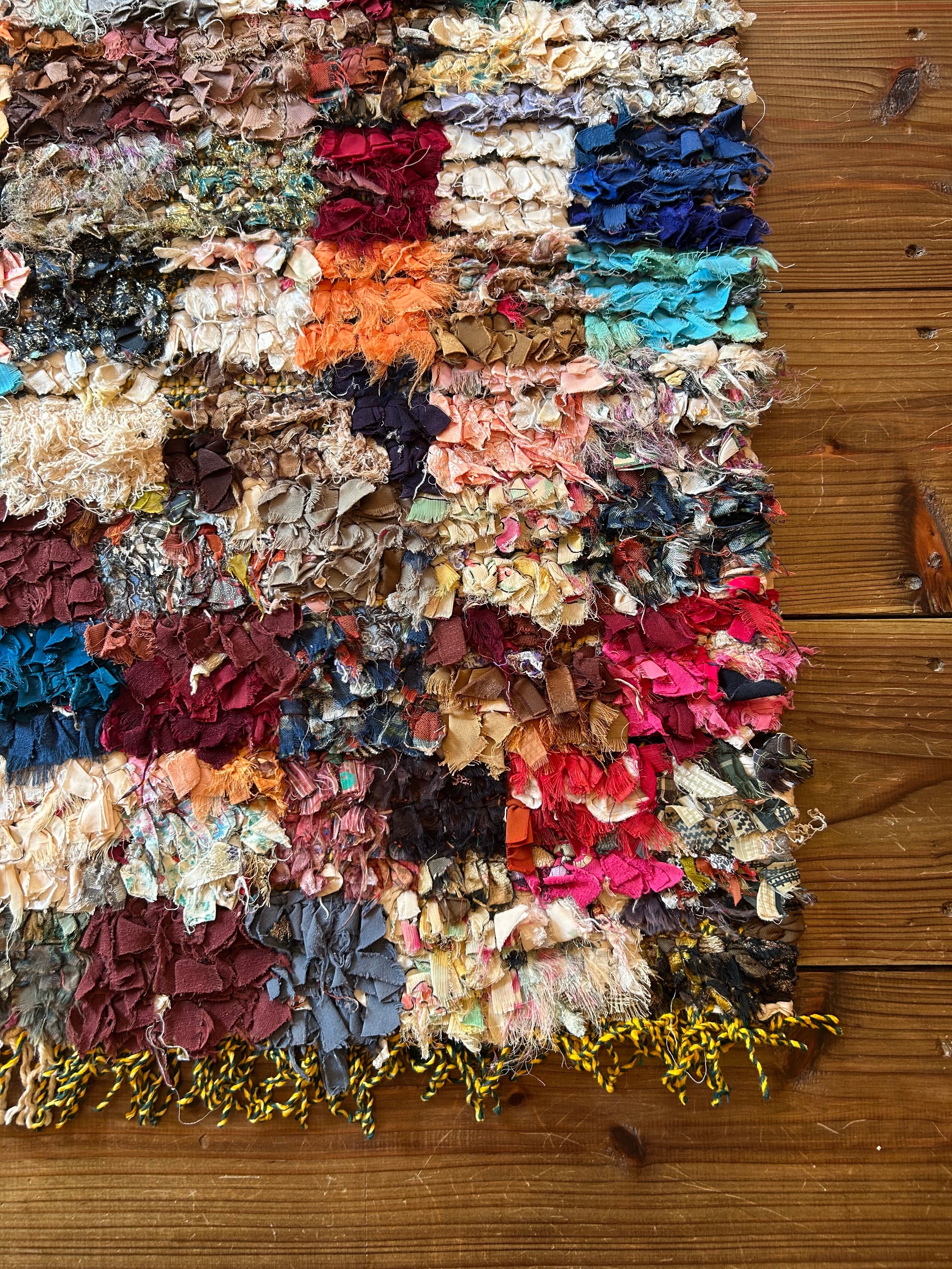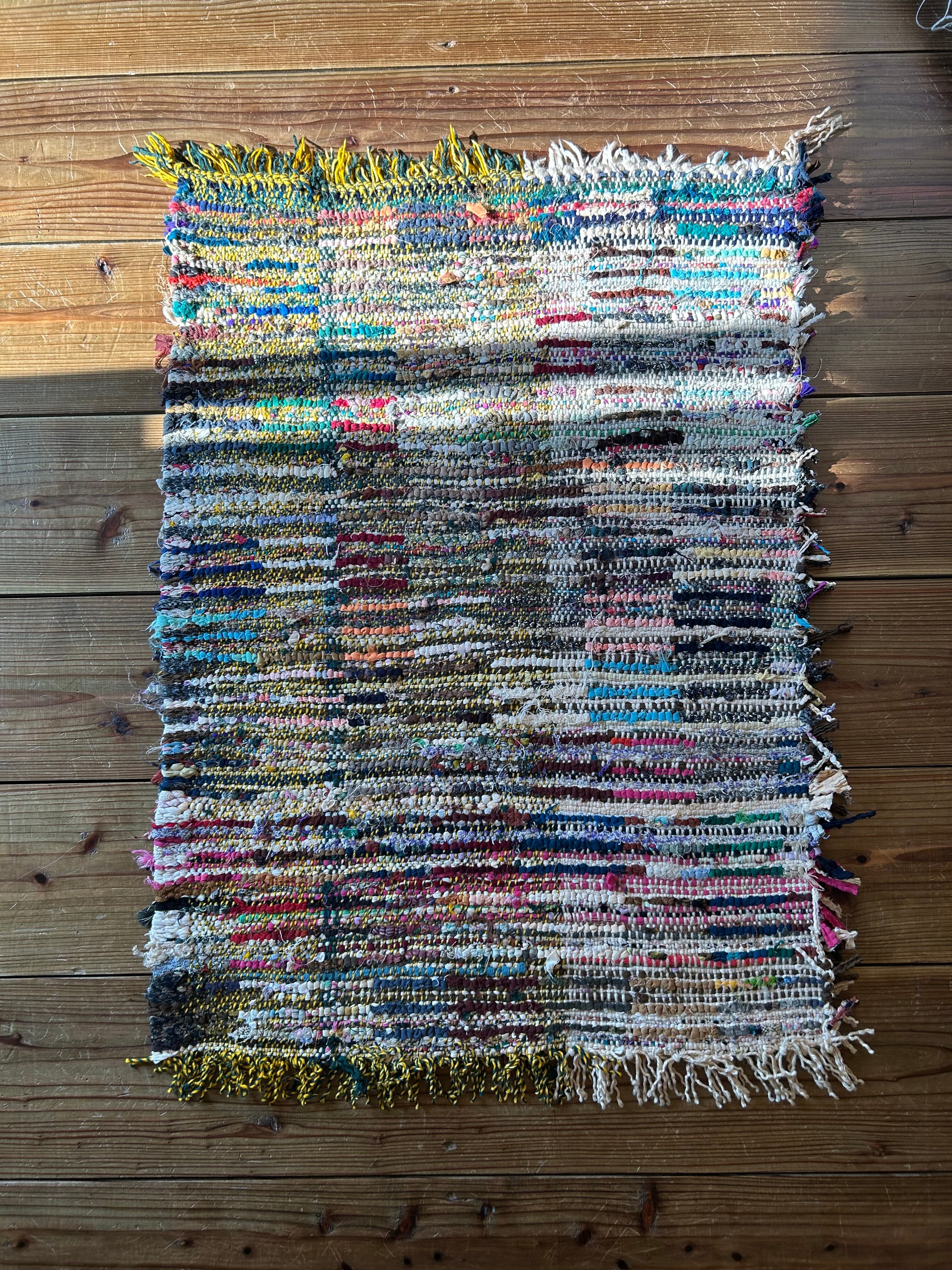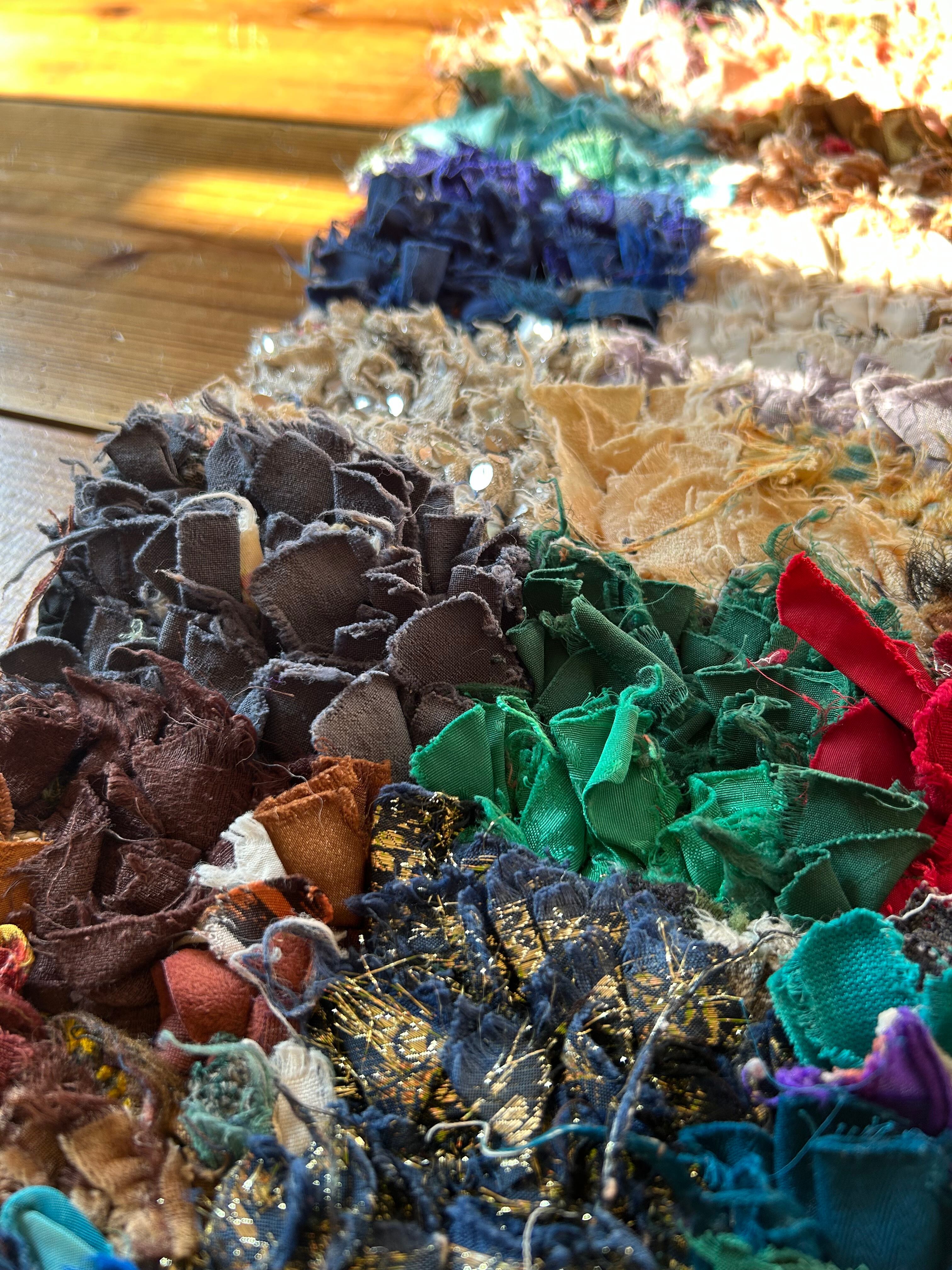 *いろんな種類の古着が使われてますので、強い日光に長時間当てると色落ちする場合もあります。裏返したり陰干しにして調整してあげるとカラフルな色が長持ちします^^