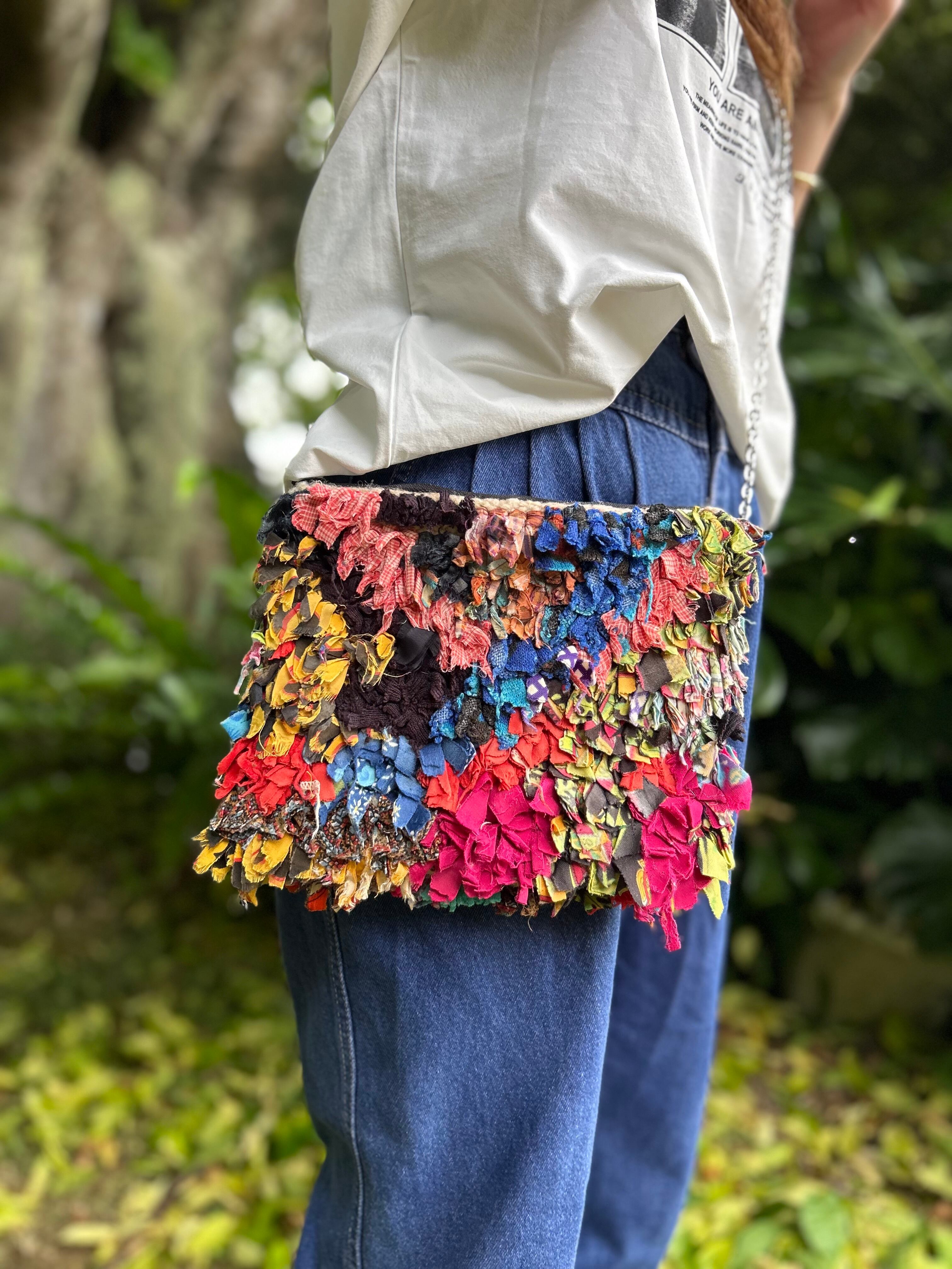 大胆なカラーのコントラストと独特の質感が、持つだけで気分を上げてくれる一品。