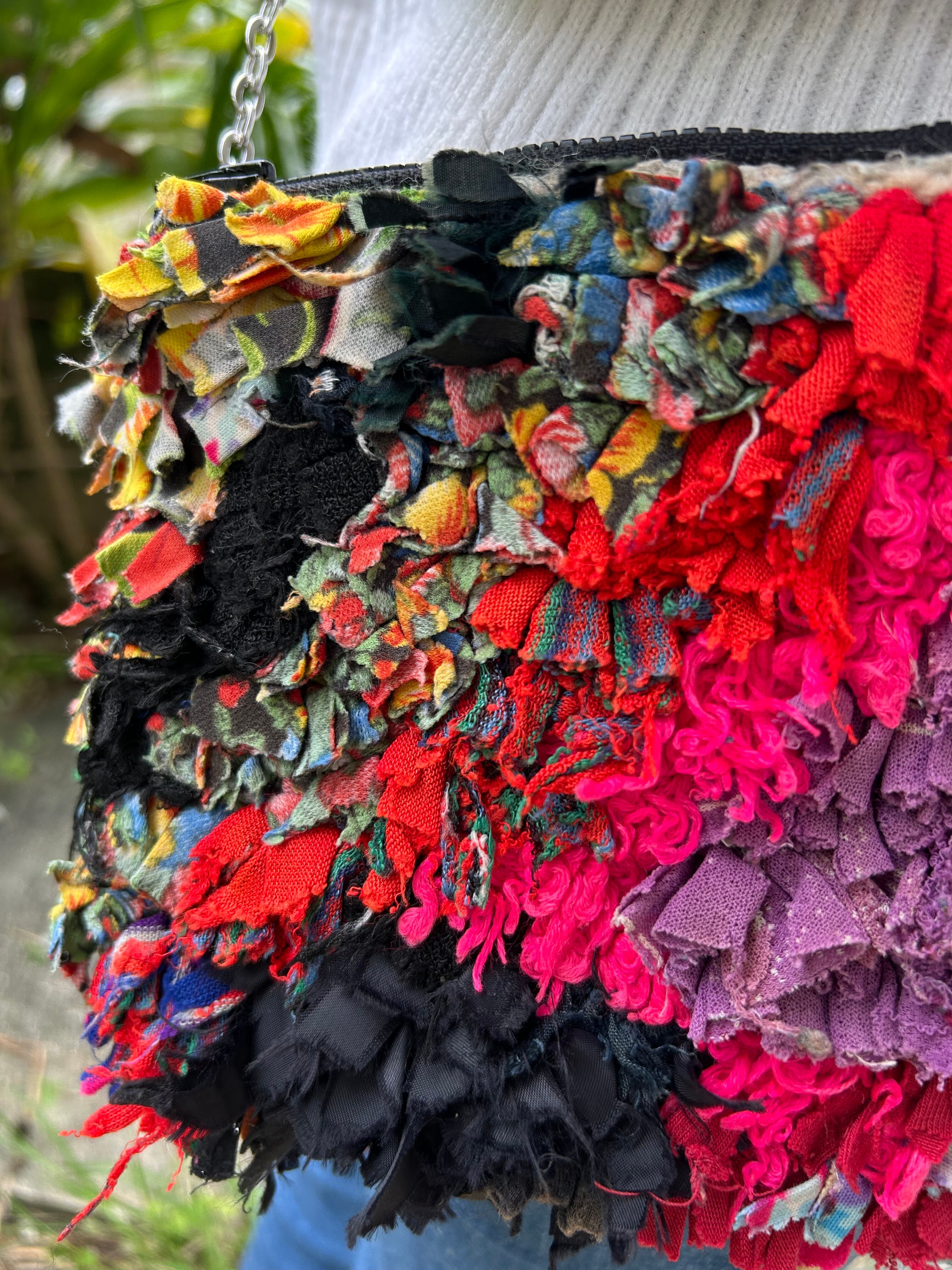 大胆なカラーのコントラストと独特の質感が、持つだけで気分を上げてくれる一品。