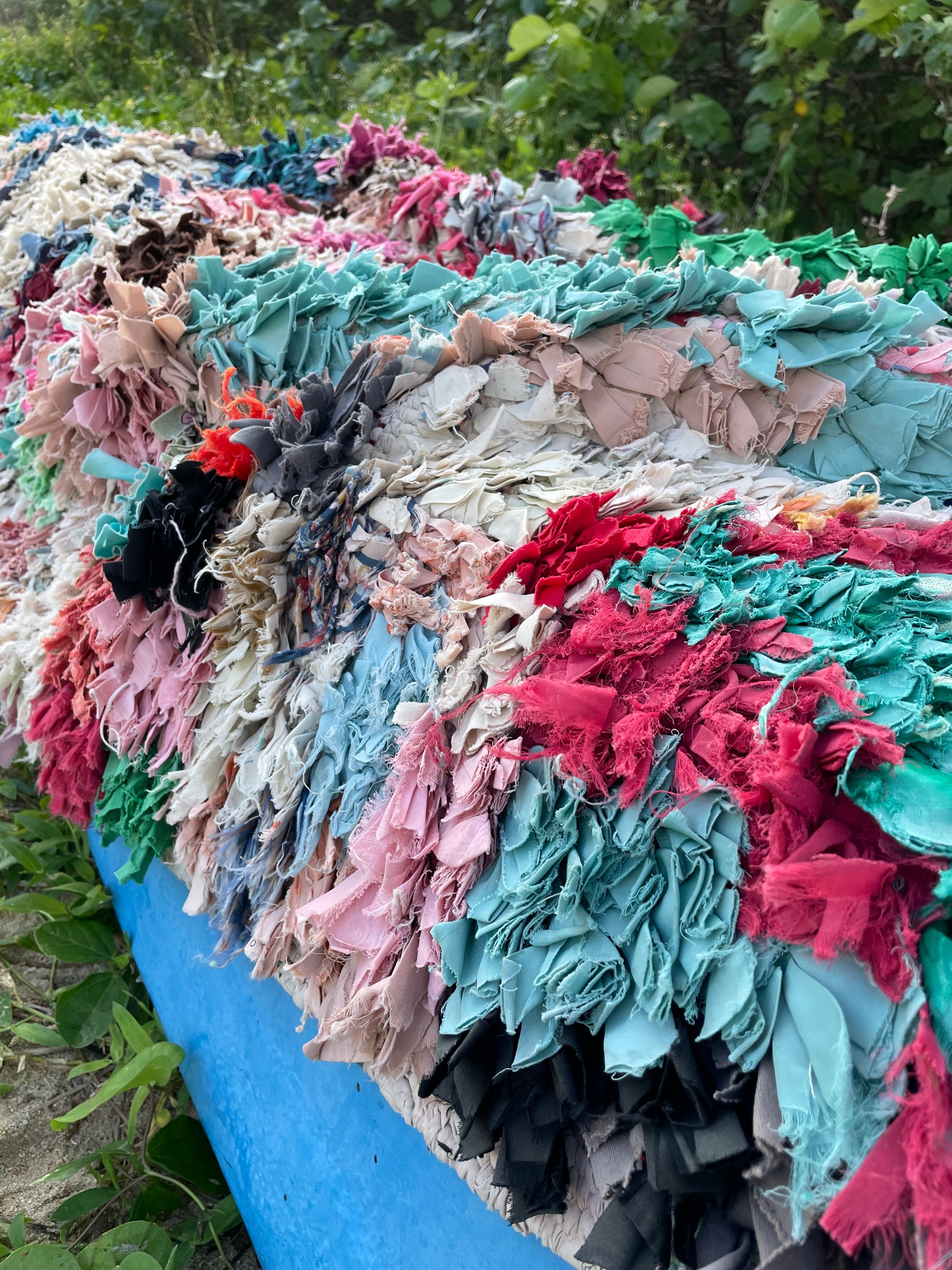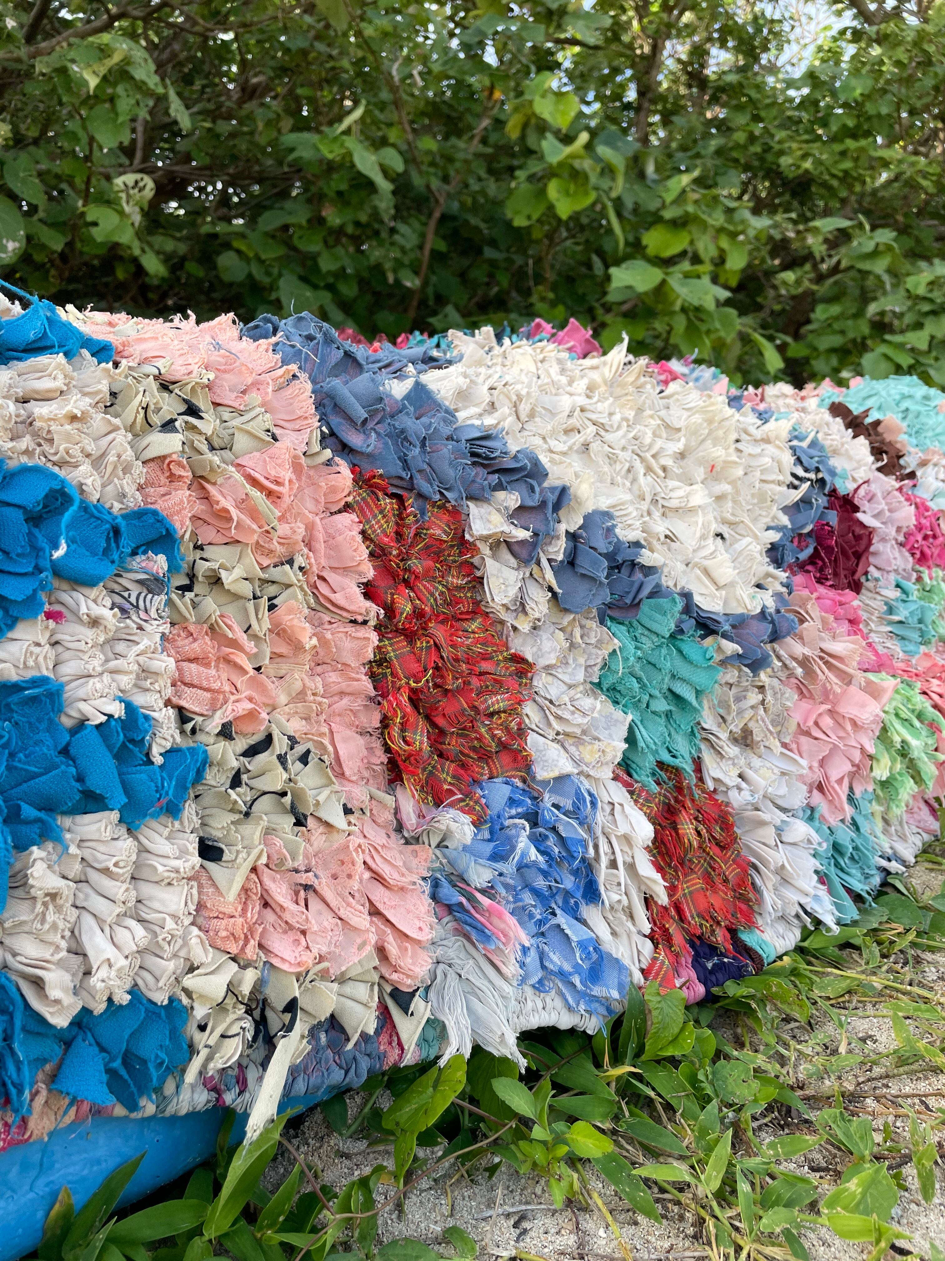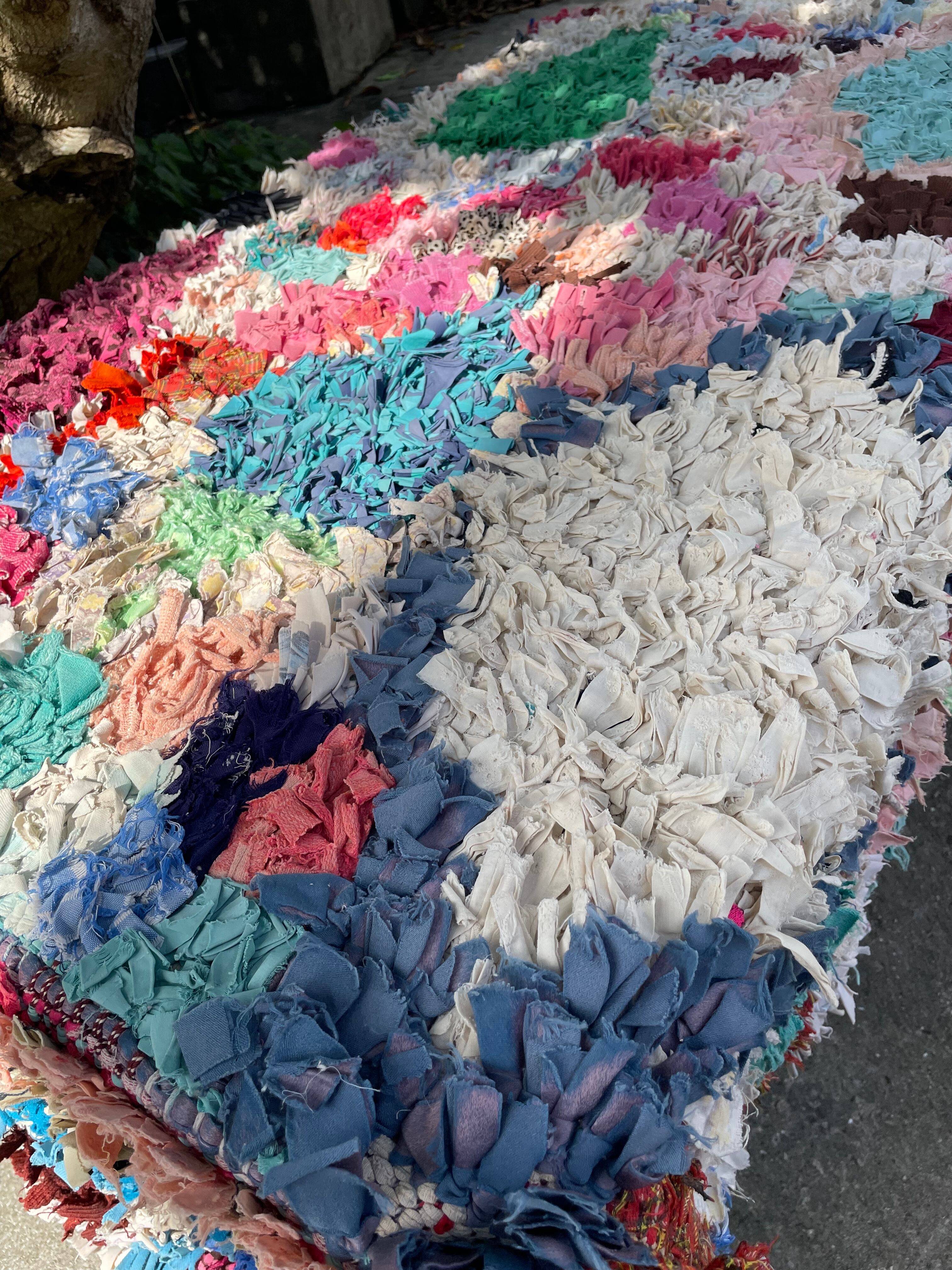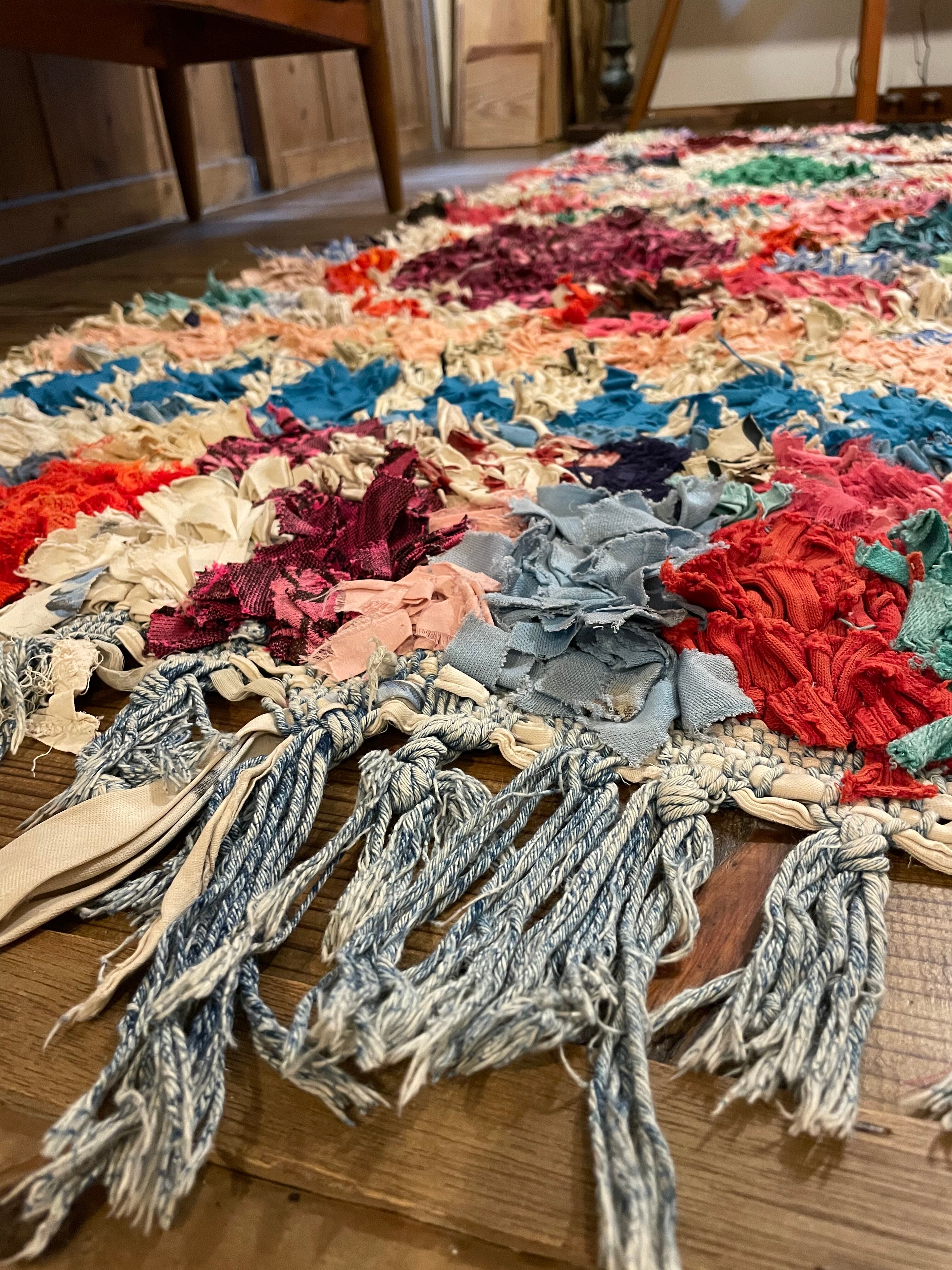 こちらのラグは優しい色のチェック柄やアイスクリーム柄、リネンなど、家族の思い出がたくさん詰まった一枚です。カラフルですが落ち着いた色合いで、優しさに包まれた空間になると思います。