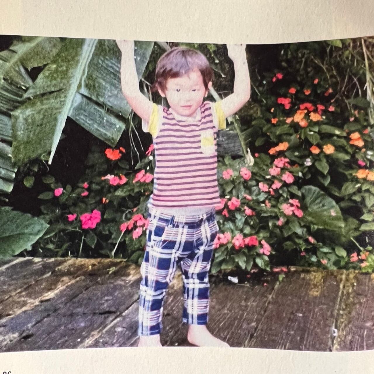 インパクトのある蛍光ピンク!立体的に模様が浮かんでいます。小さいお花、姉の住んでた家に自然に生えていたインパチェンスのお花のようです。緑色のフリンジもまさにその光景でした。