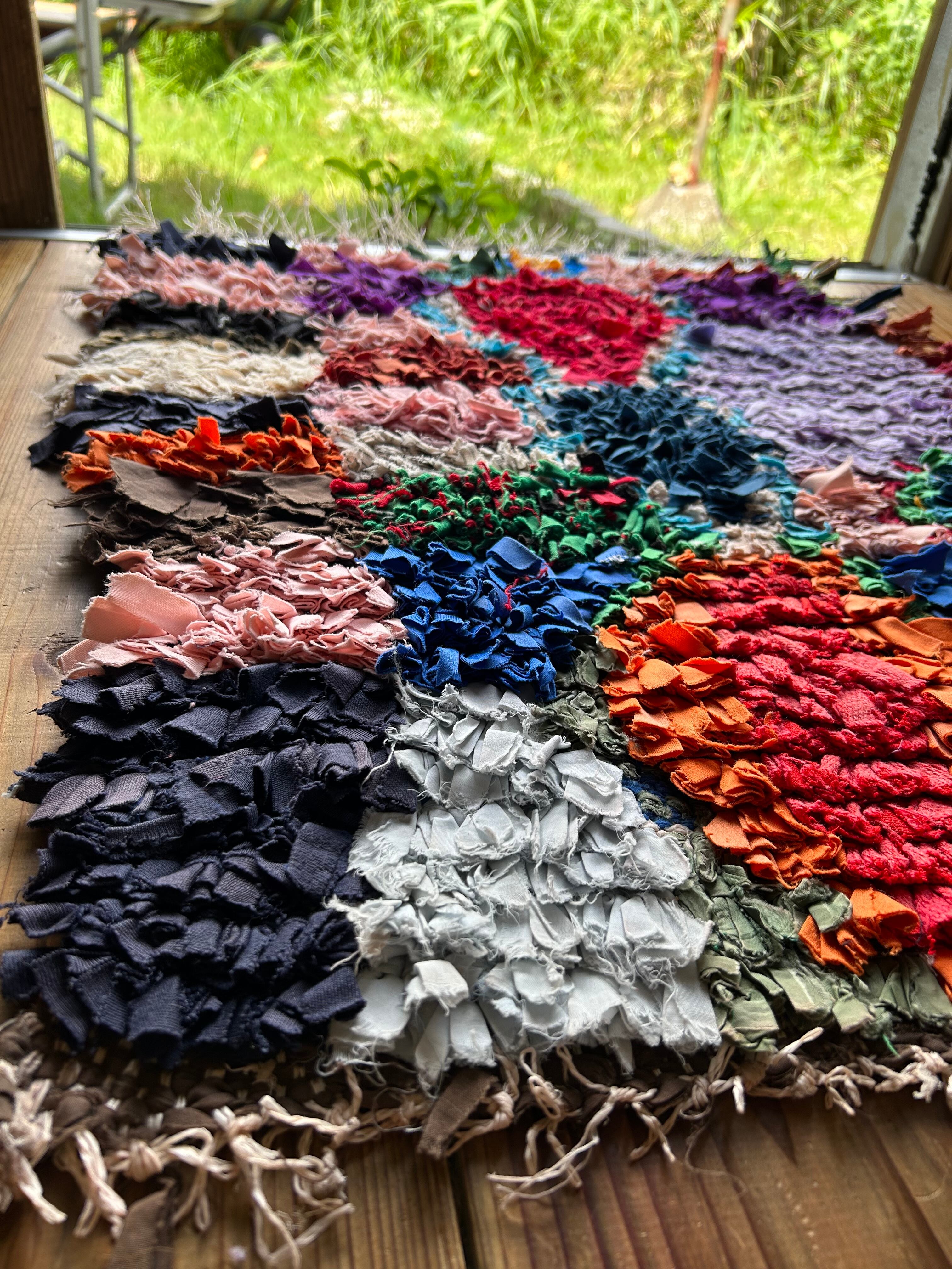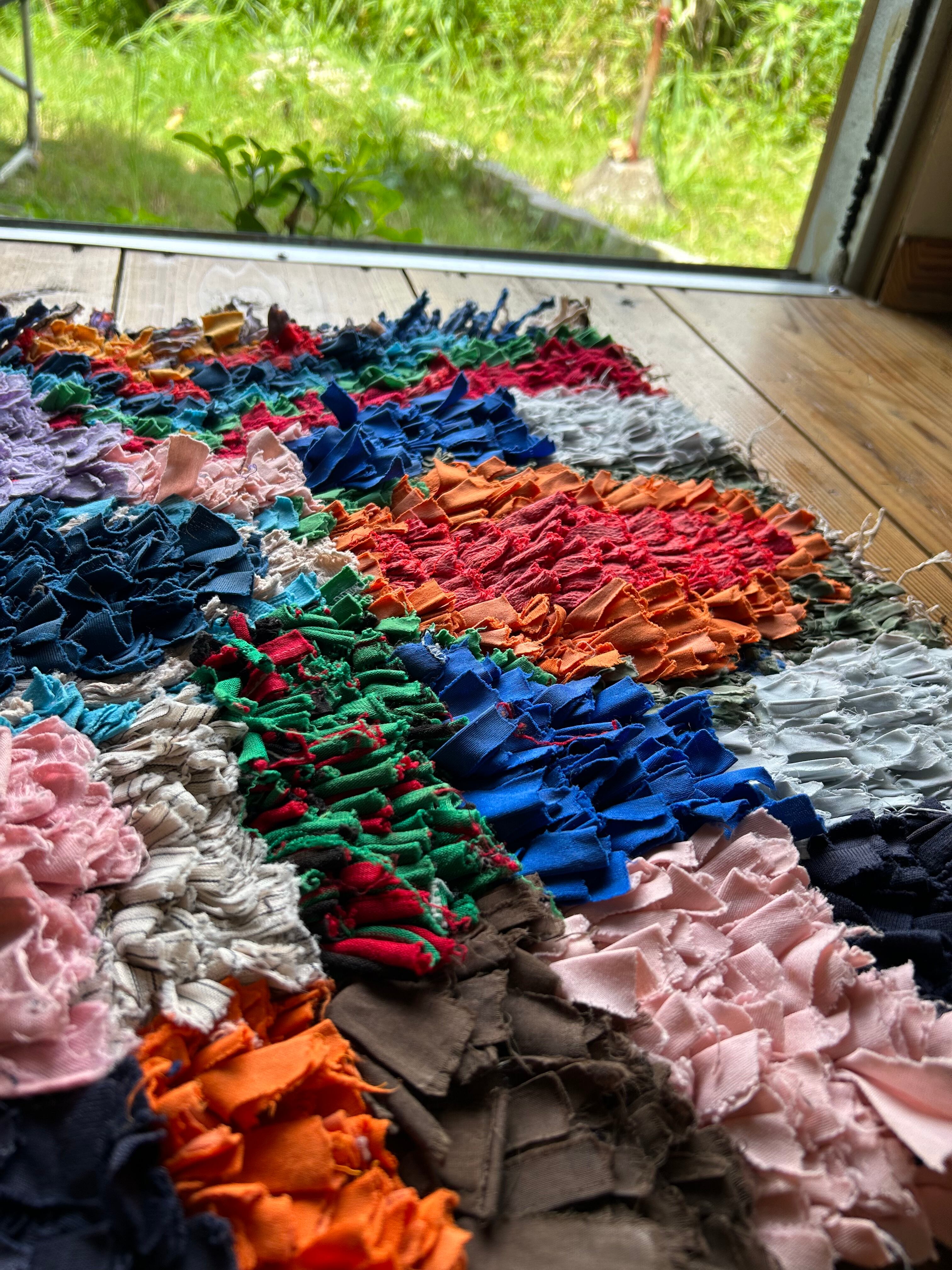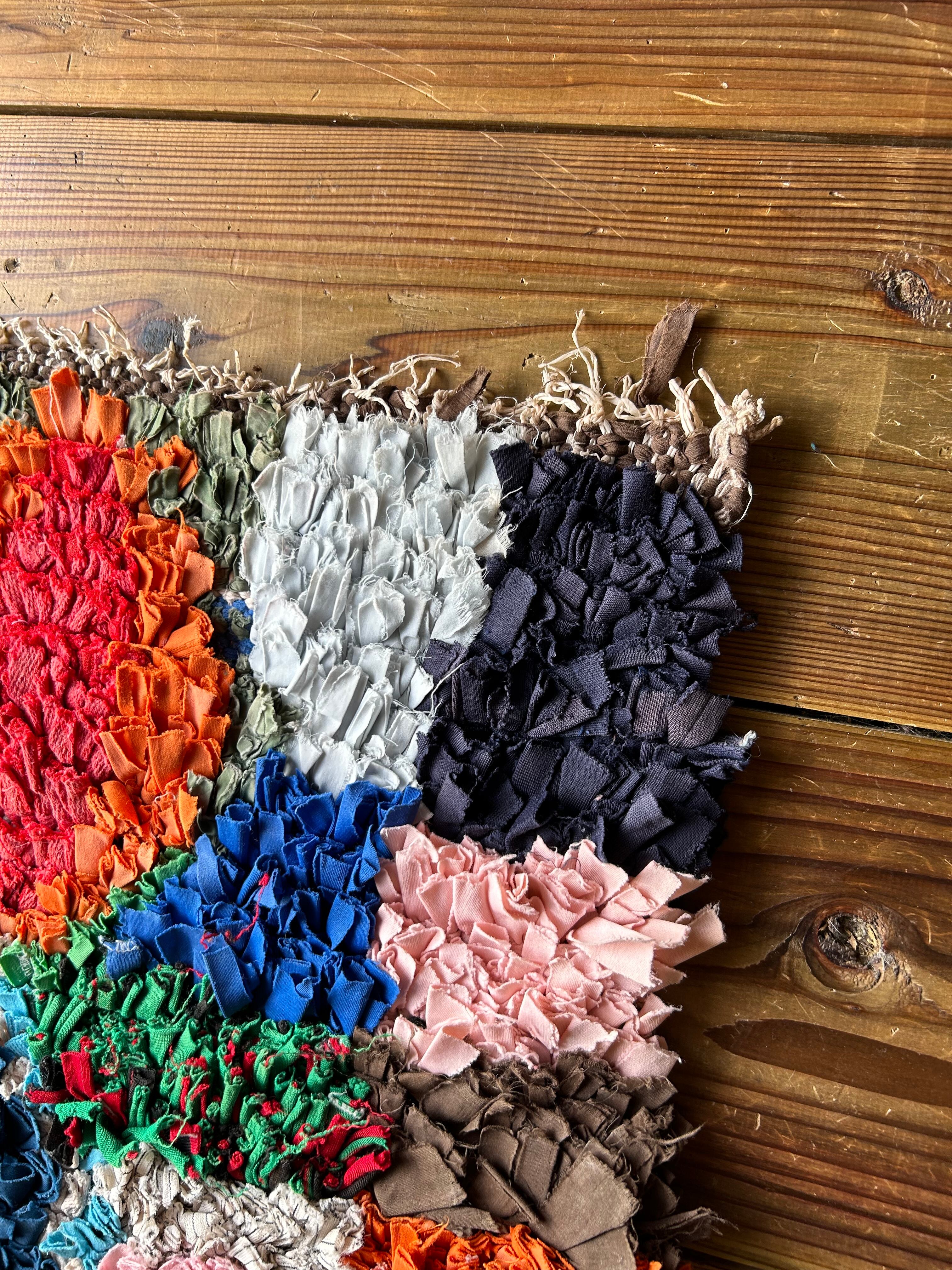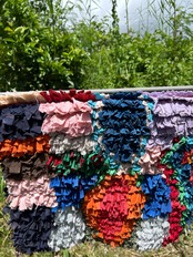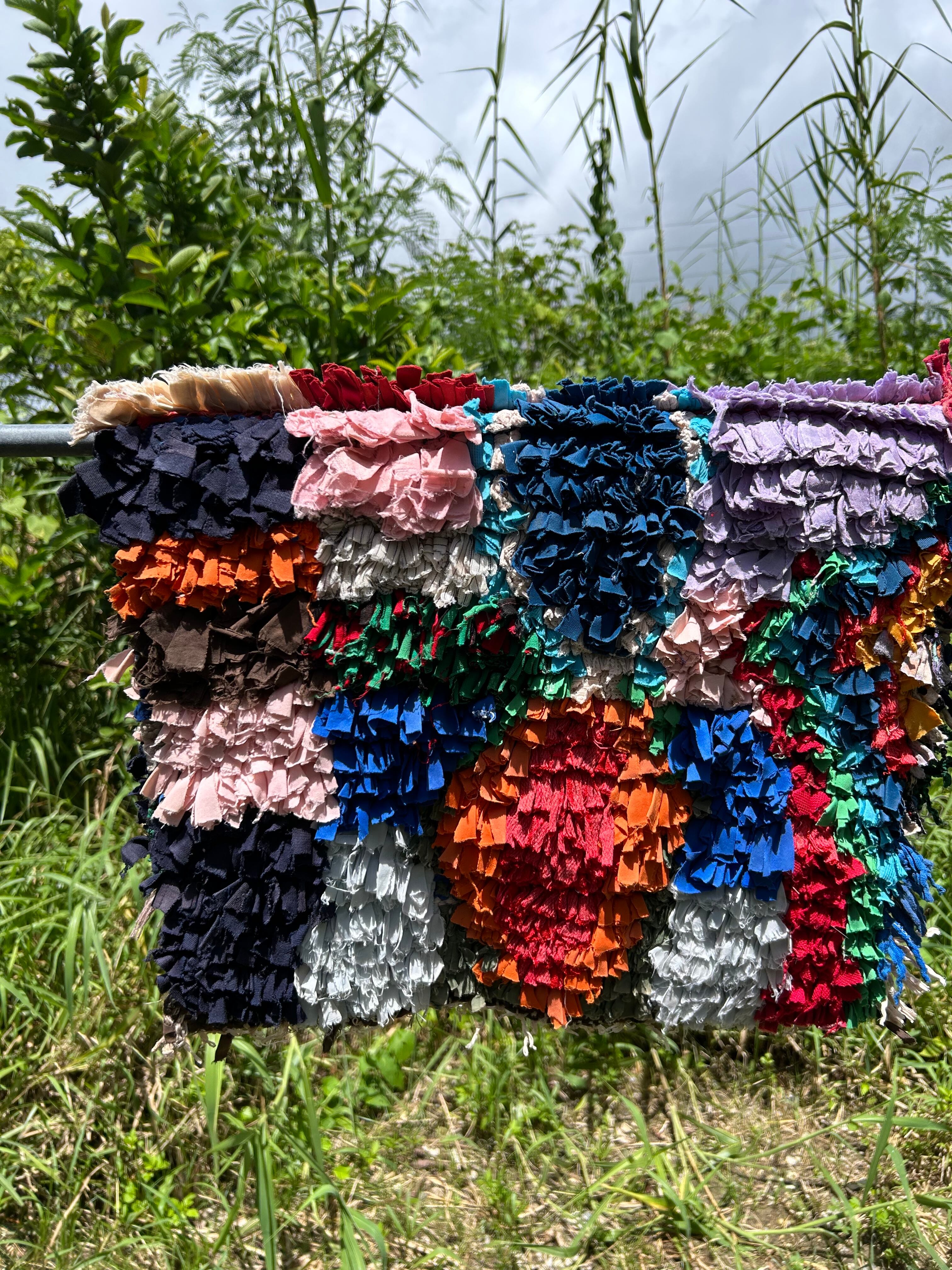 *いろんな種類の古着が使われてますので、強い日光に長時間当てると色落ちする場合もあります。裏返したり陰干しにして調整してあげるとカラフルな色が長持ちします^^