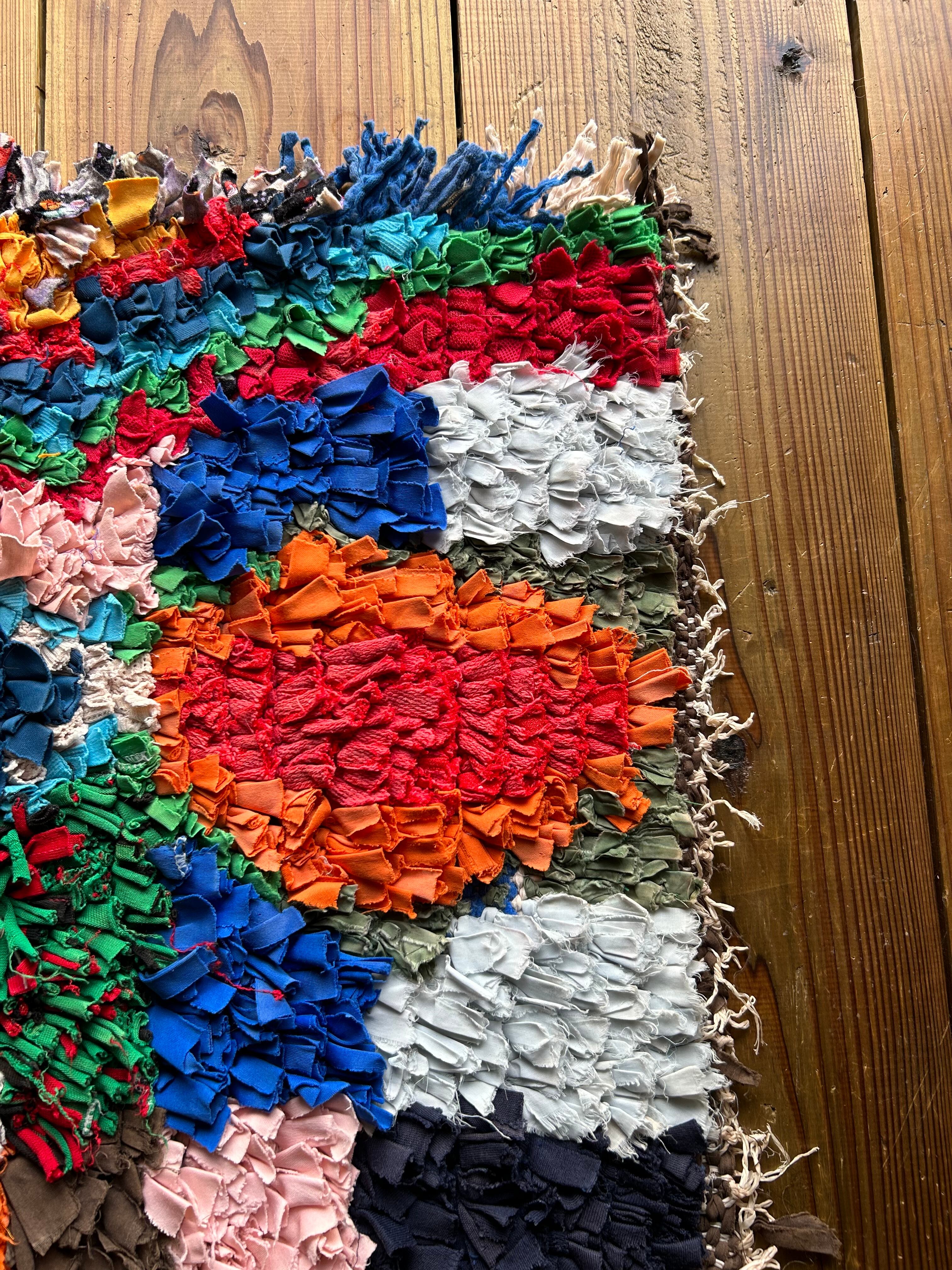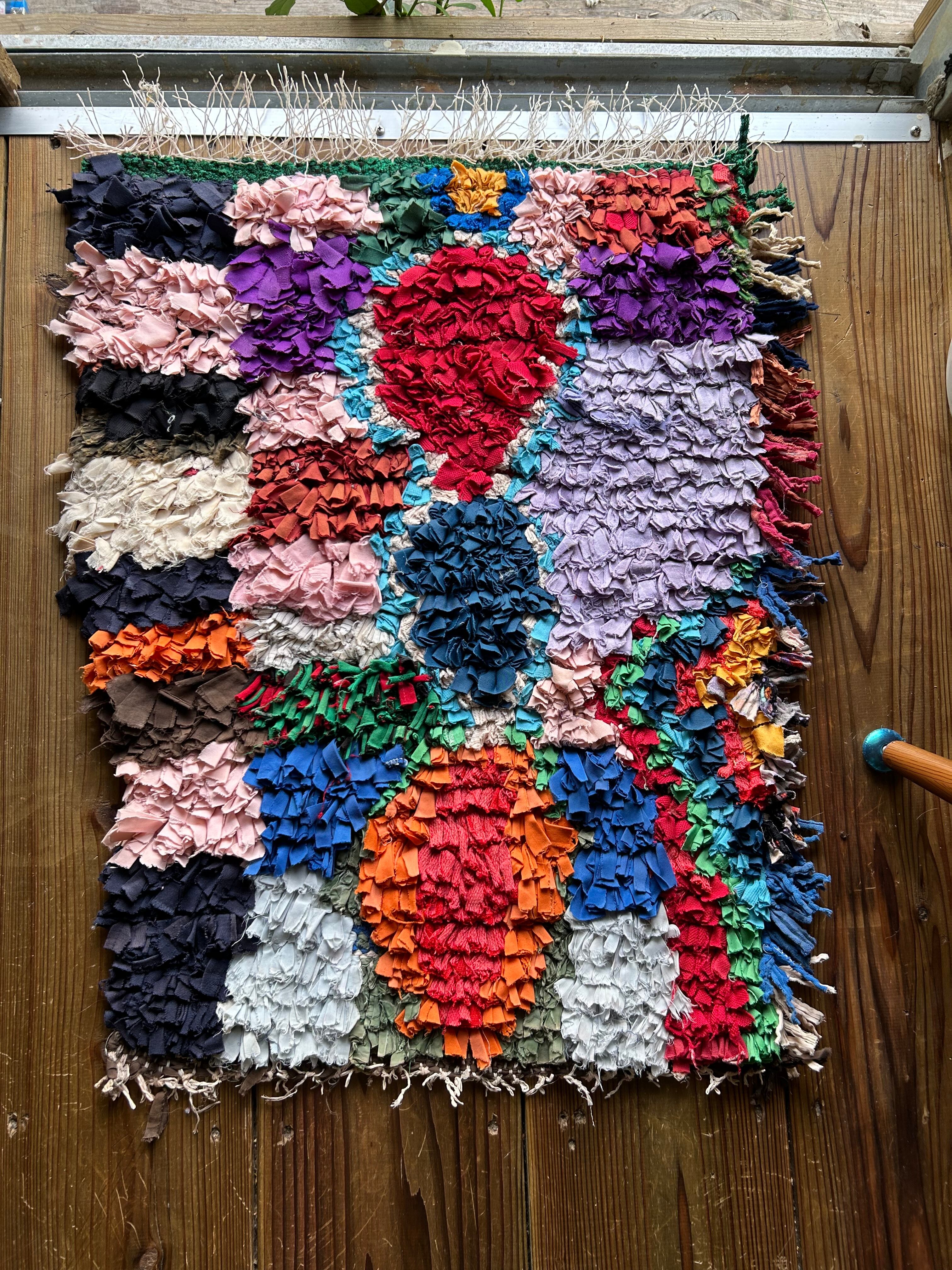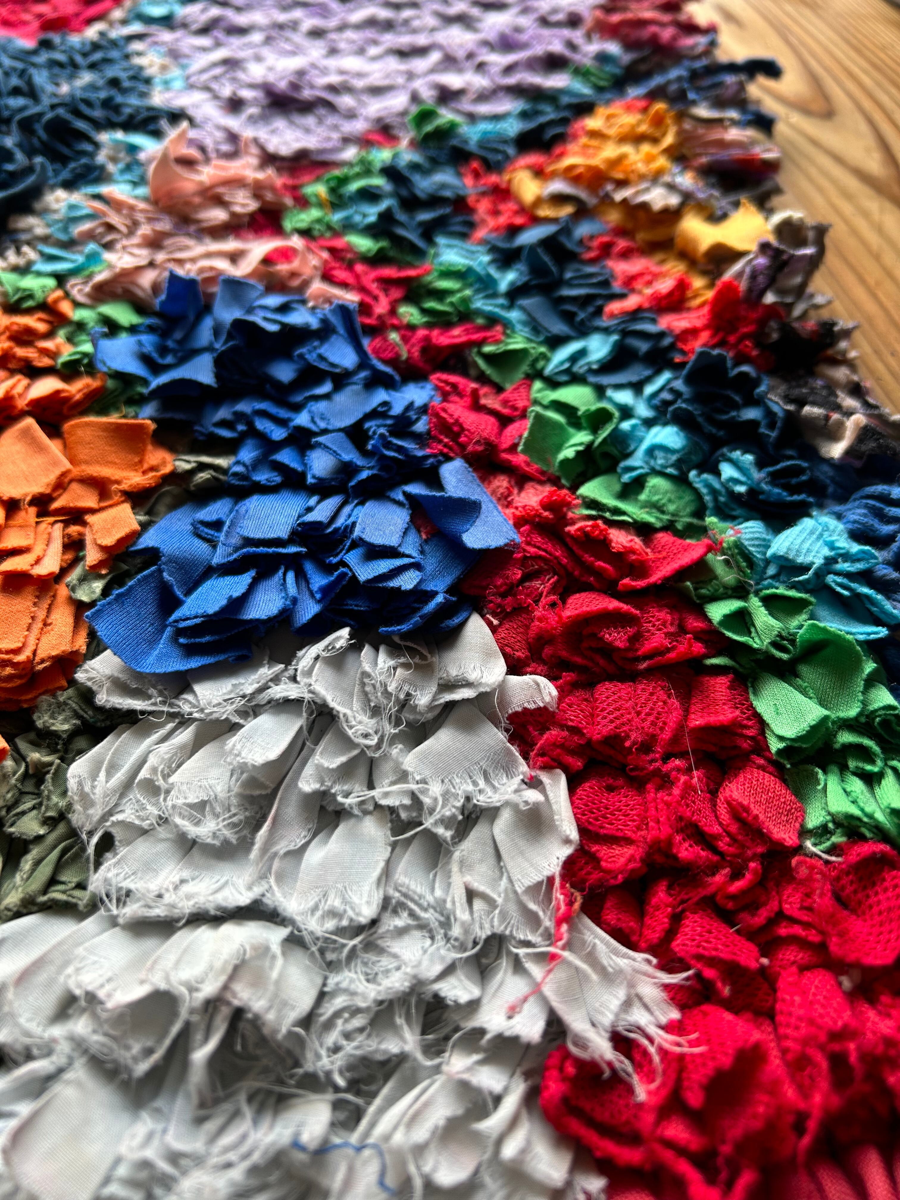 *いろんな種類の古着が使われてますので、強い日光に長時間当てると色落ちする場合もあります。裏返したり陰干しにして調整してあげるとカラフルな色が長持ちします^^