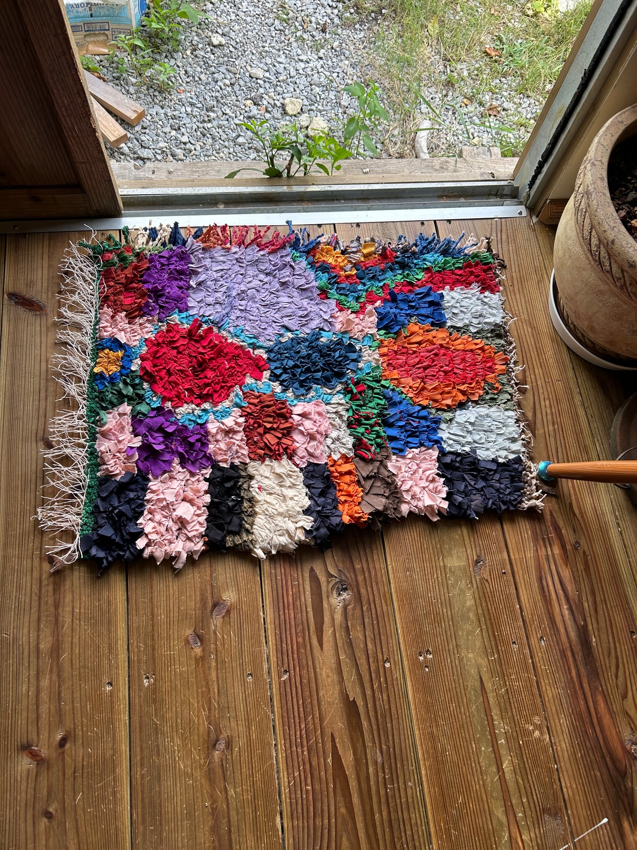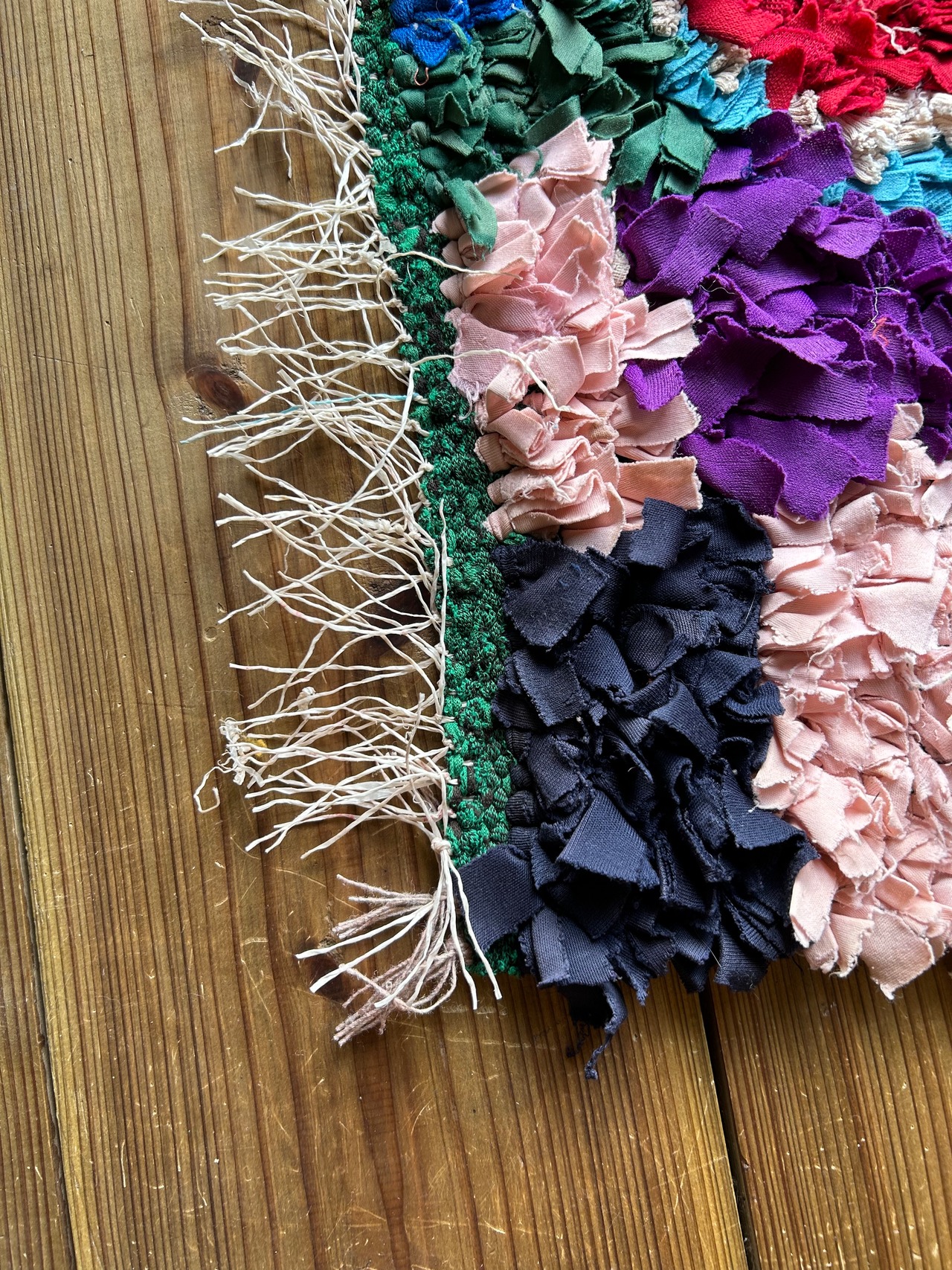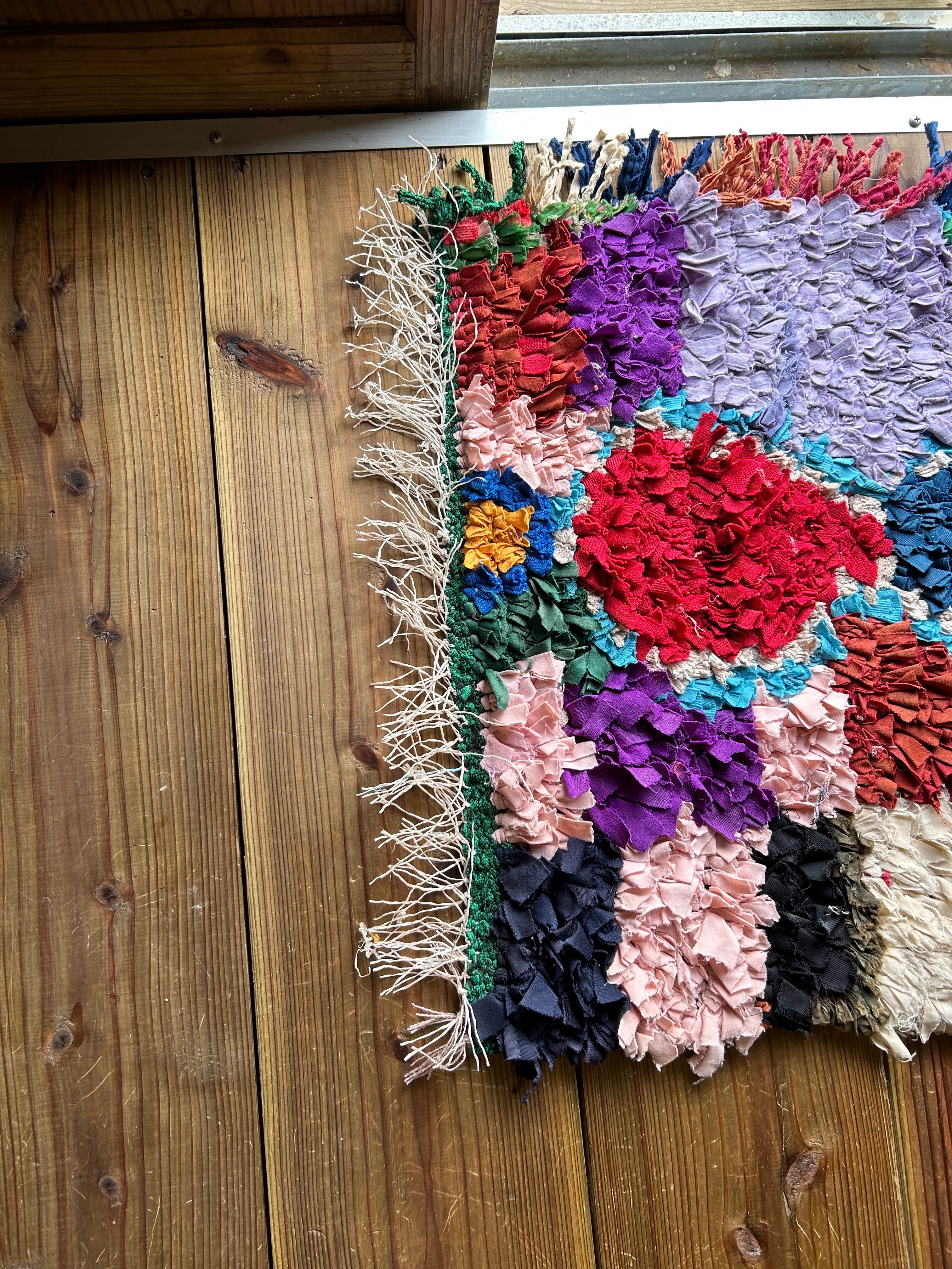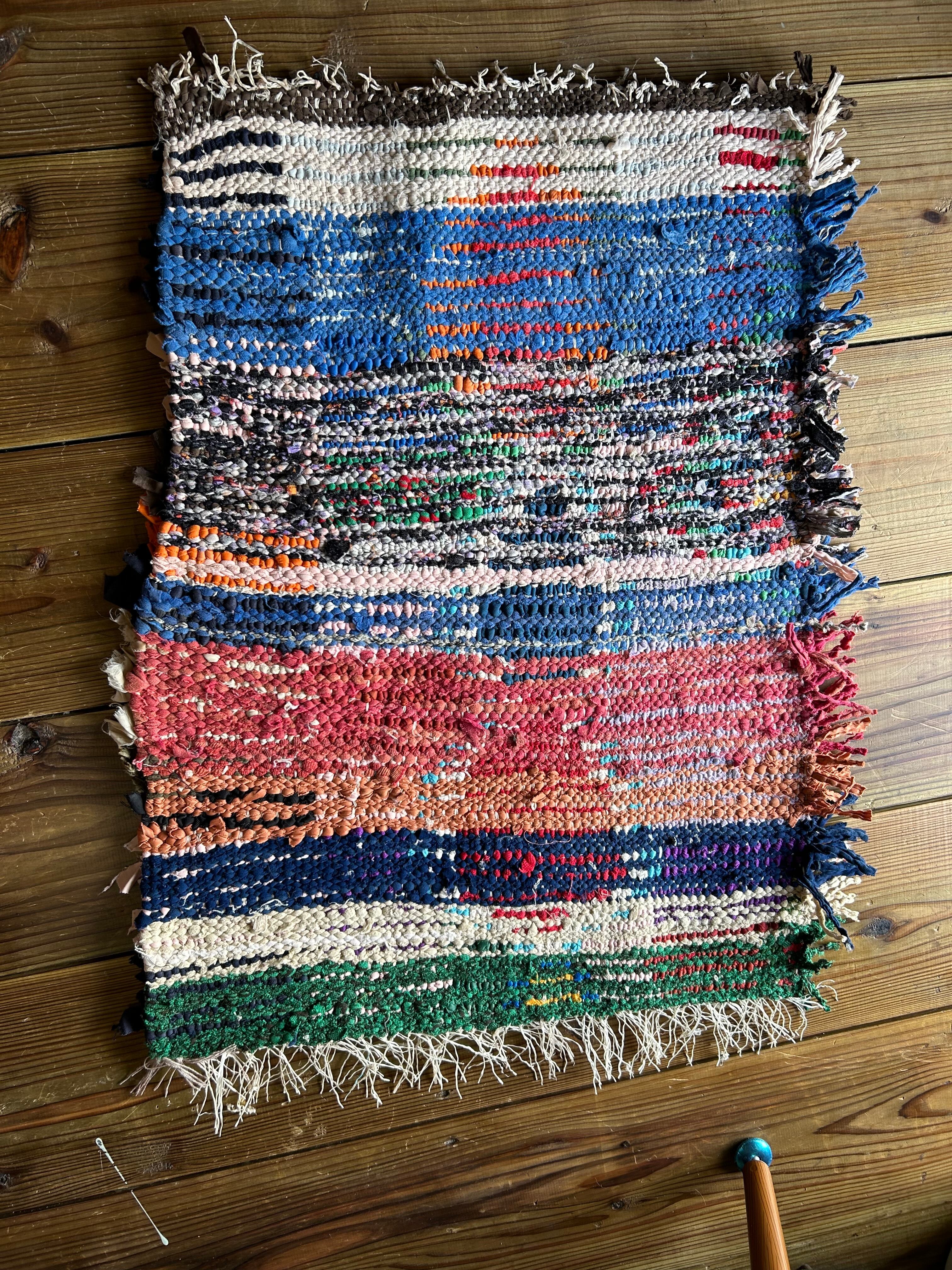 *いろんな種類の古着が使われてますので、強い日光に長時間当てると色落ちする場合もあります。裏返したり陰干しにして調整してあげるとカラフルな色が長持ちします^^