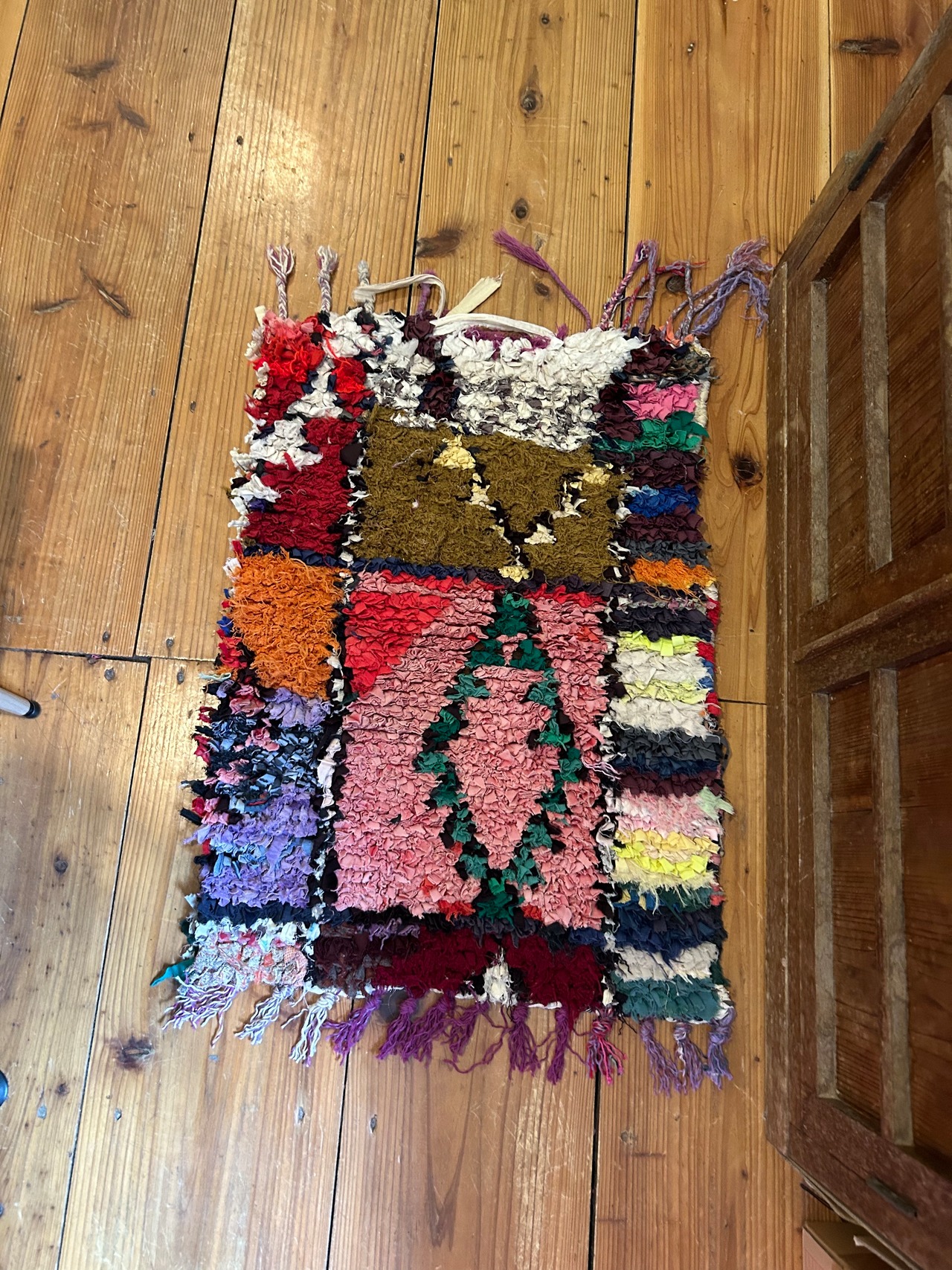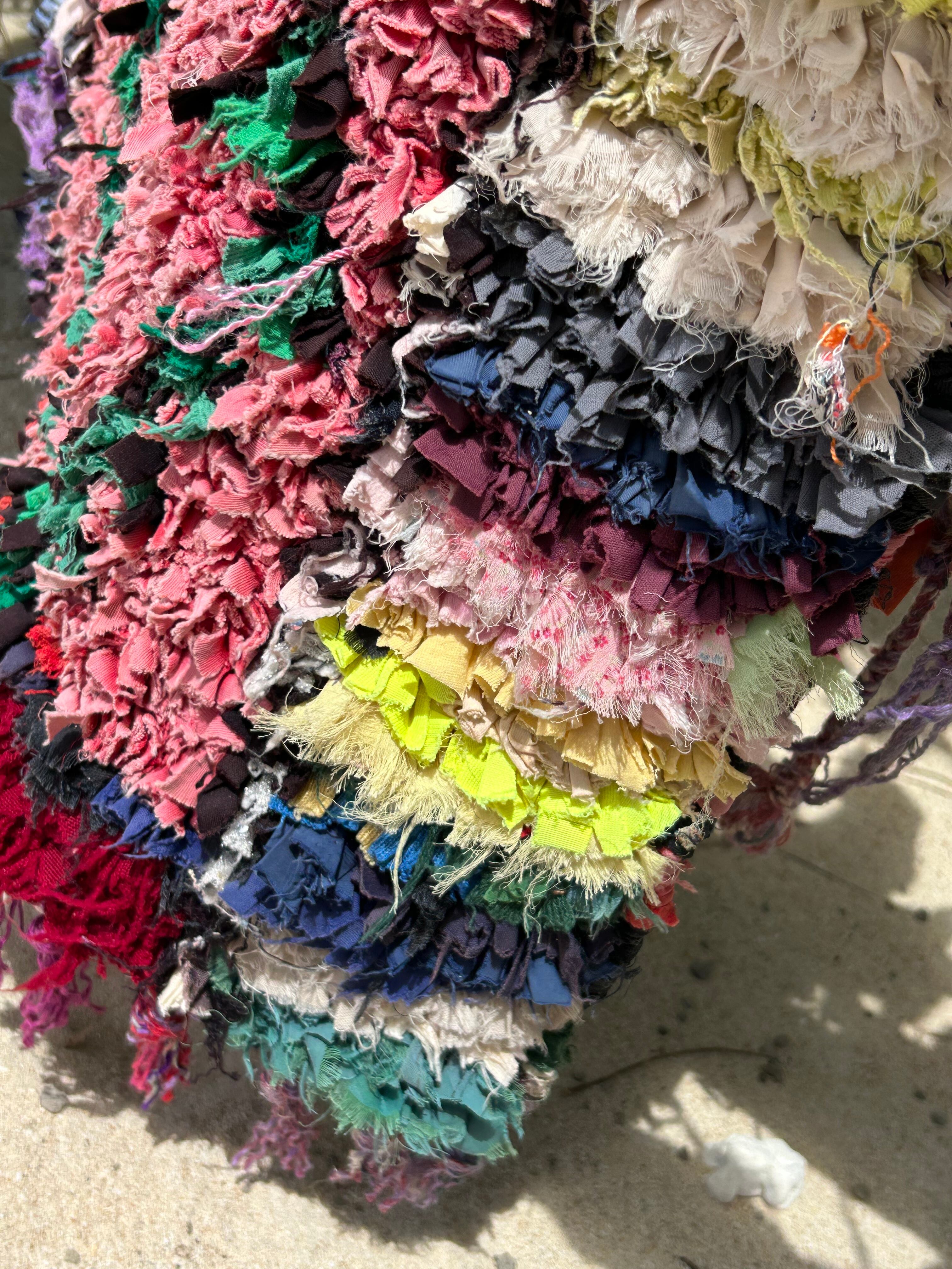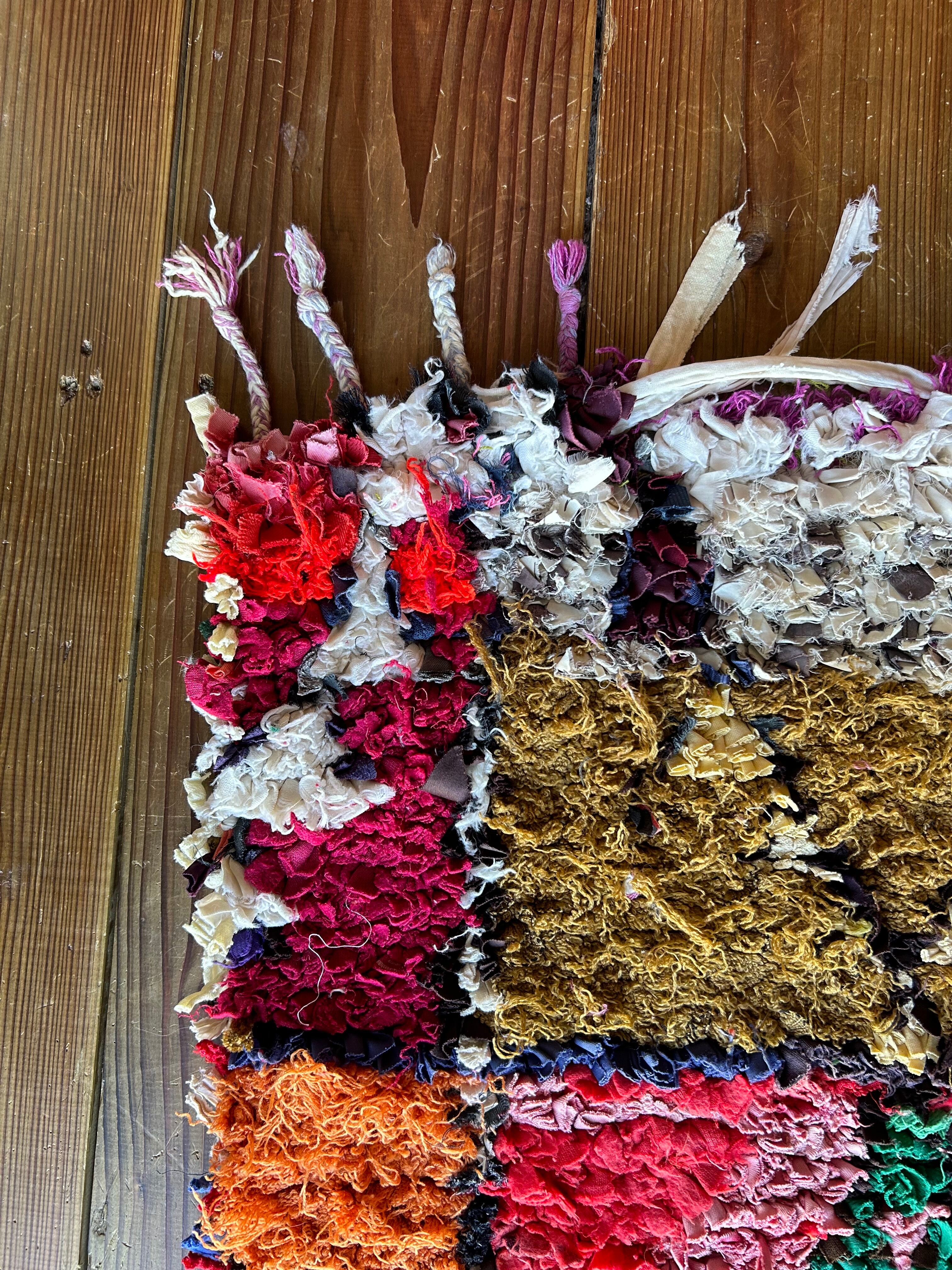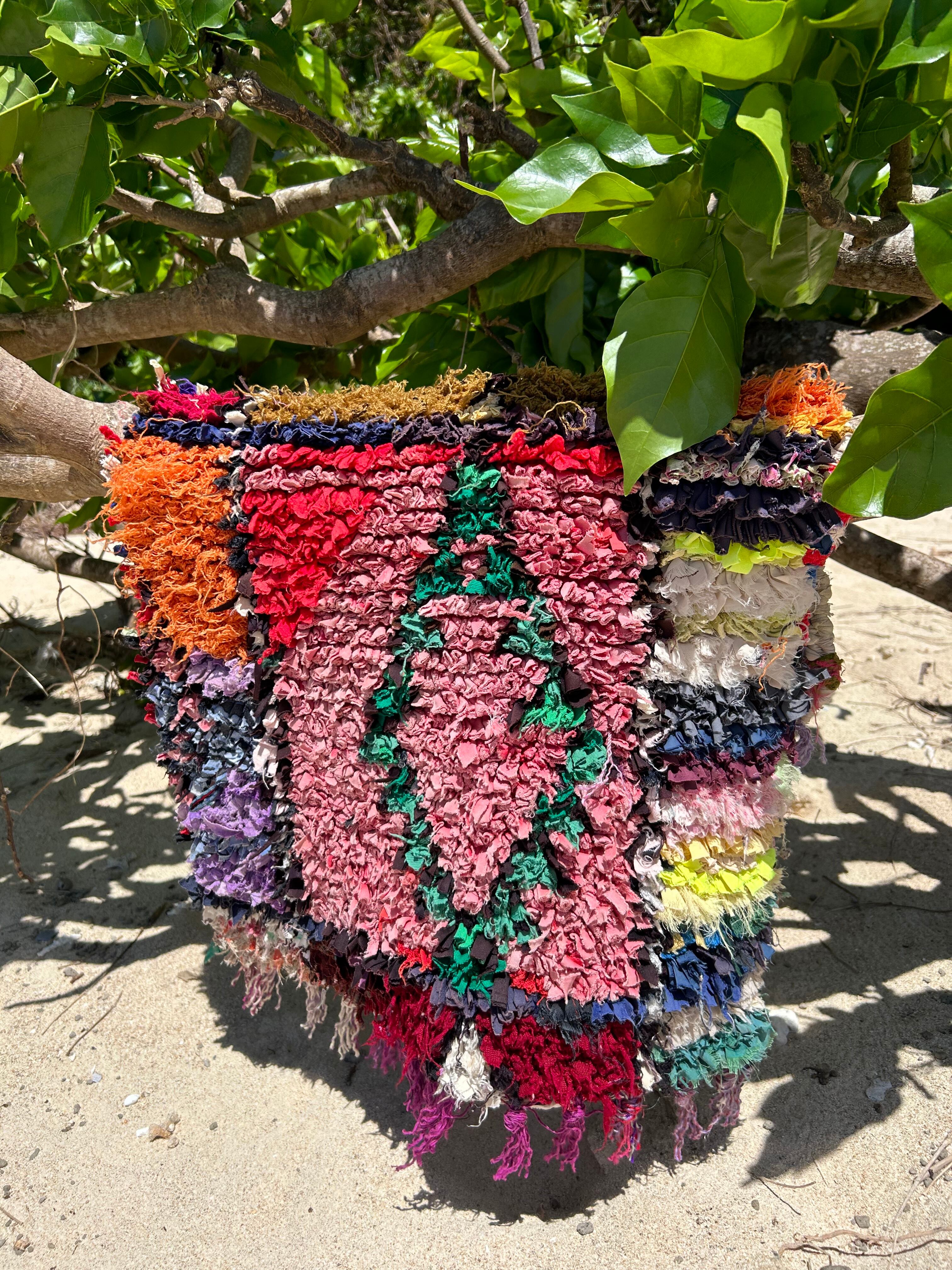 *いろんな種類の古着が使われてますので、強い日光に長時間当てると色落ちする場合もあります。裏返したり陰干しにして調整してあげるとカラフルな色が長持ちします^^