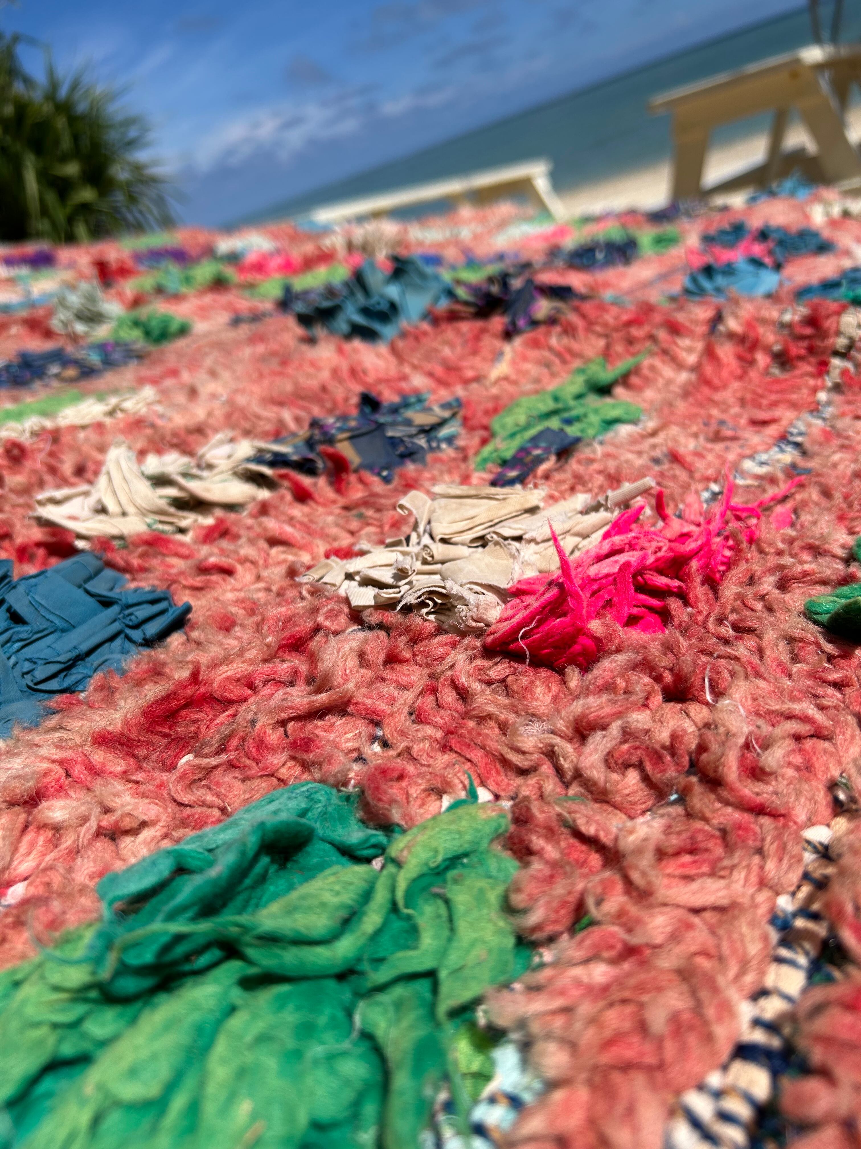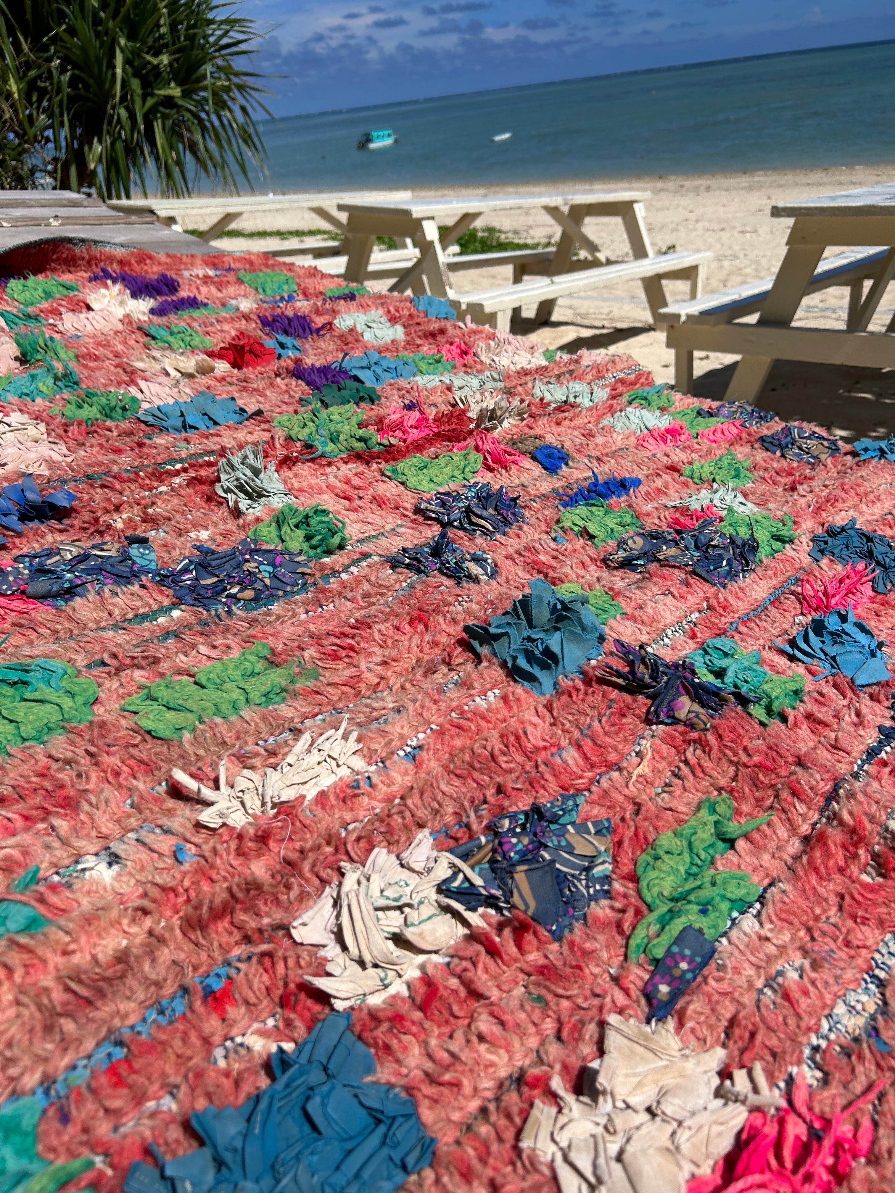 ウールが多く温かみがあり、海や芝生にも映える素敵なラグです。