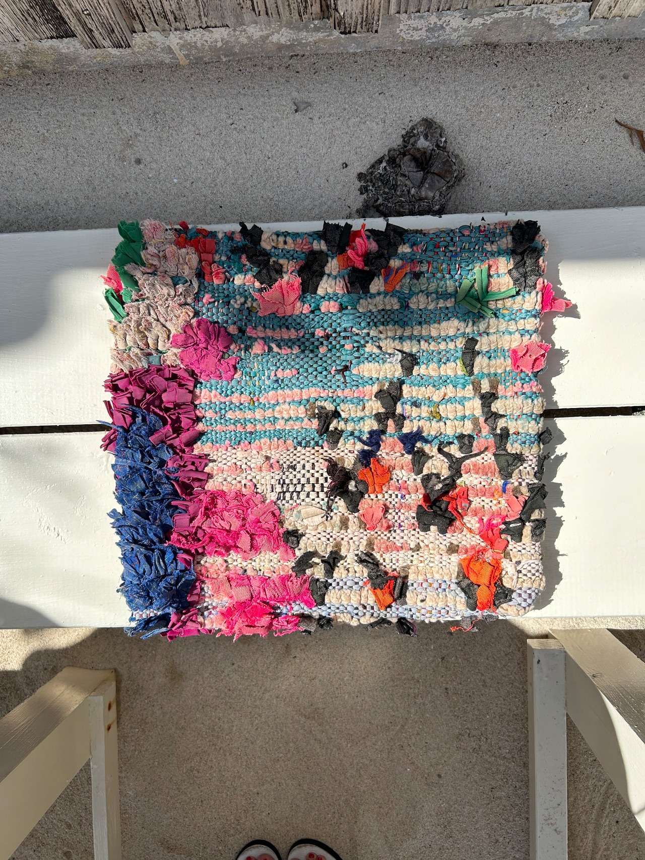 *いろんな種類の古着が使われてますので、強い日光に長時間当てると色落ちする場合もあります。裏返したり陰干しにして調整してあげるとカラフルな色が長持ちします^^