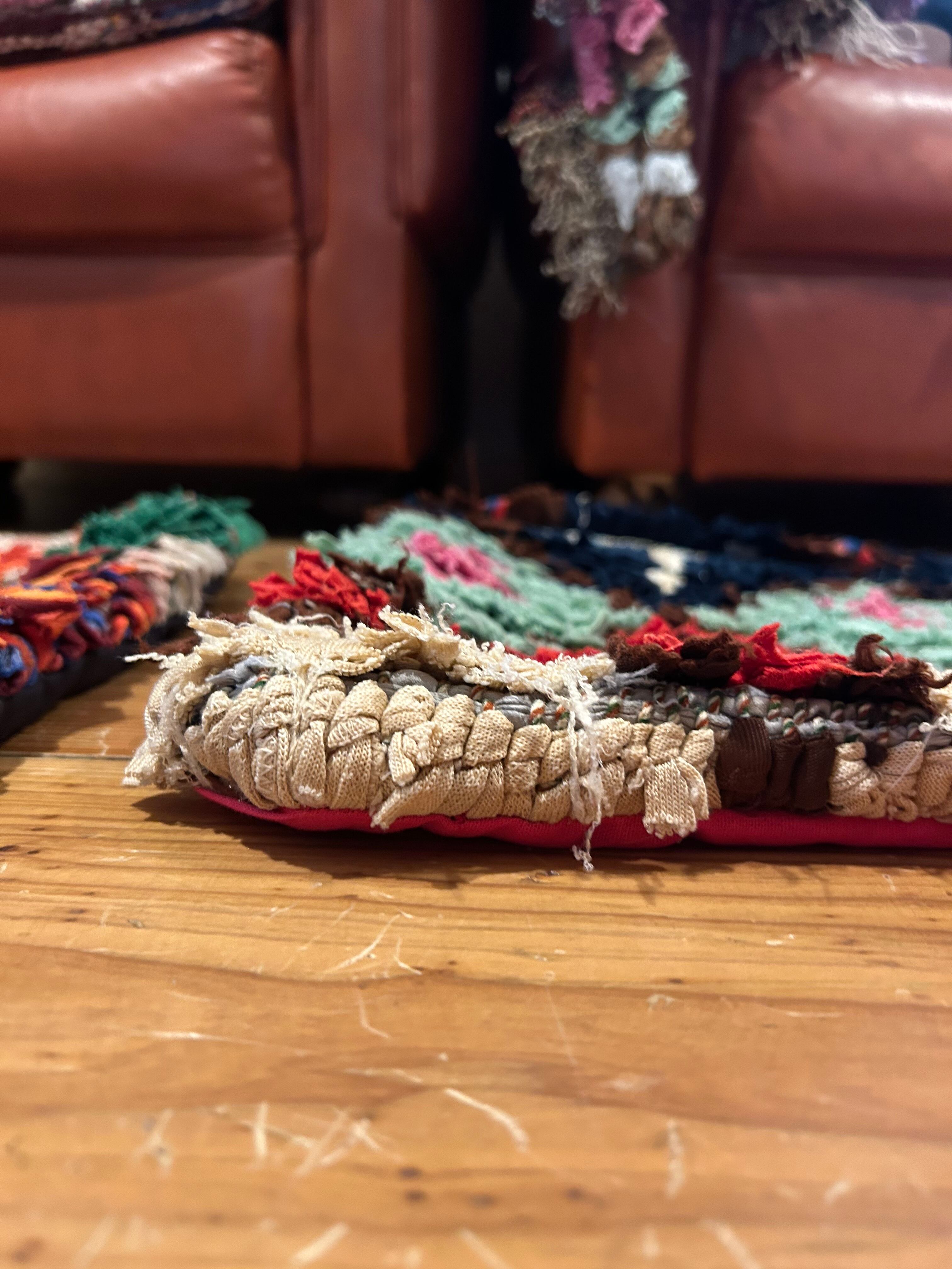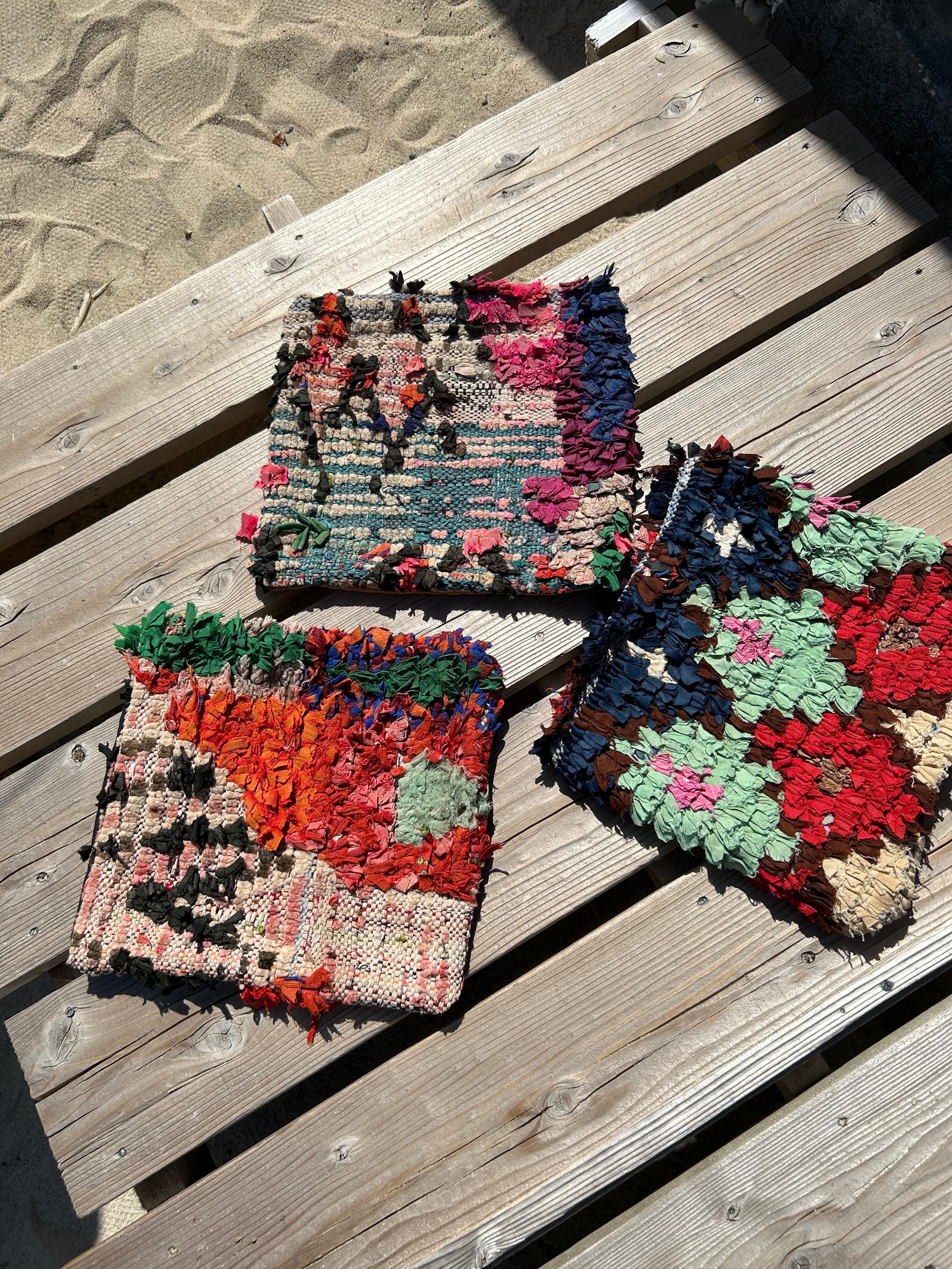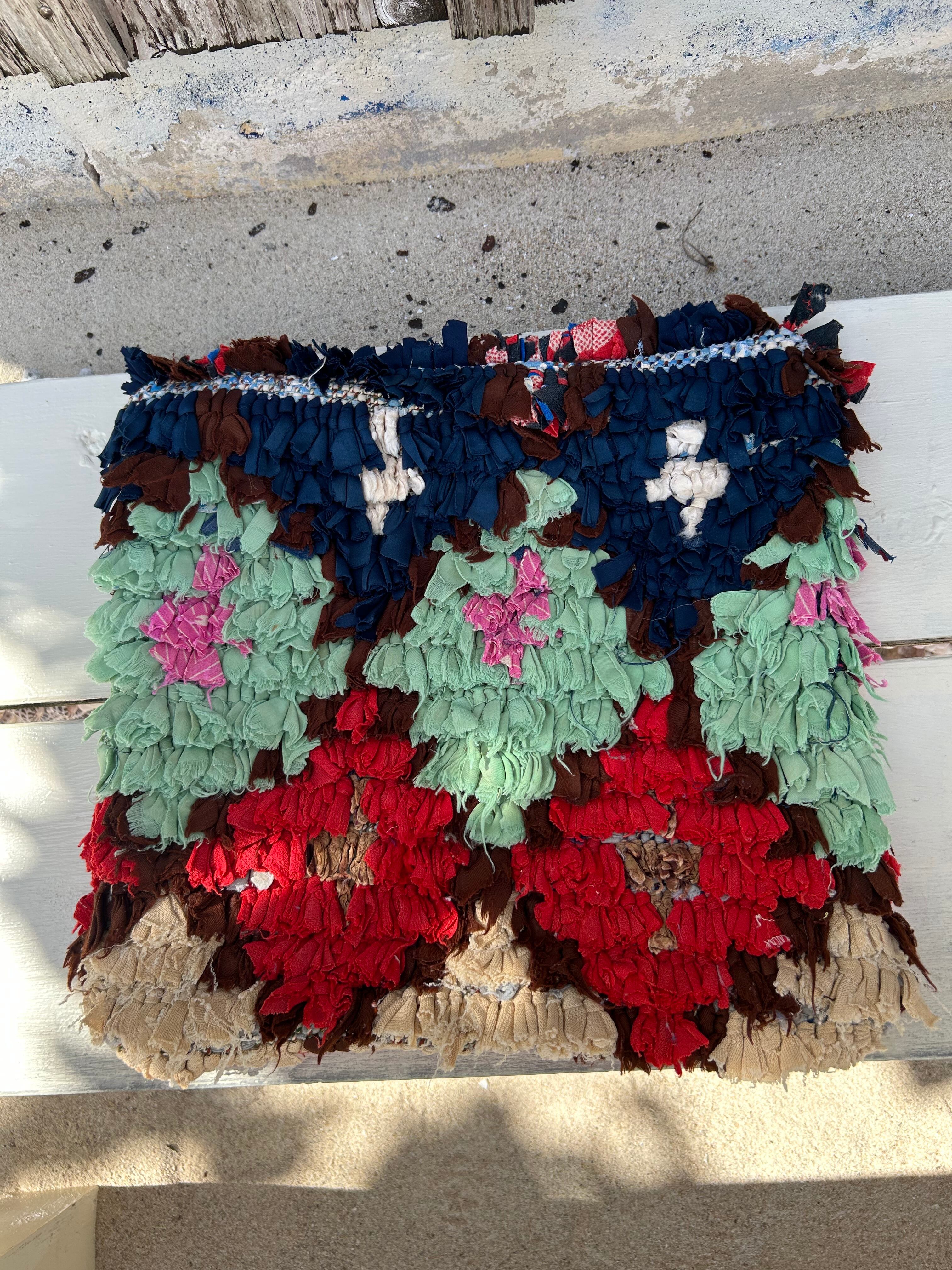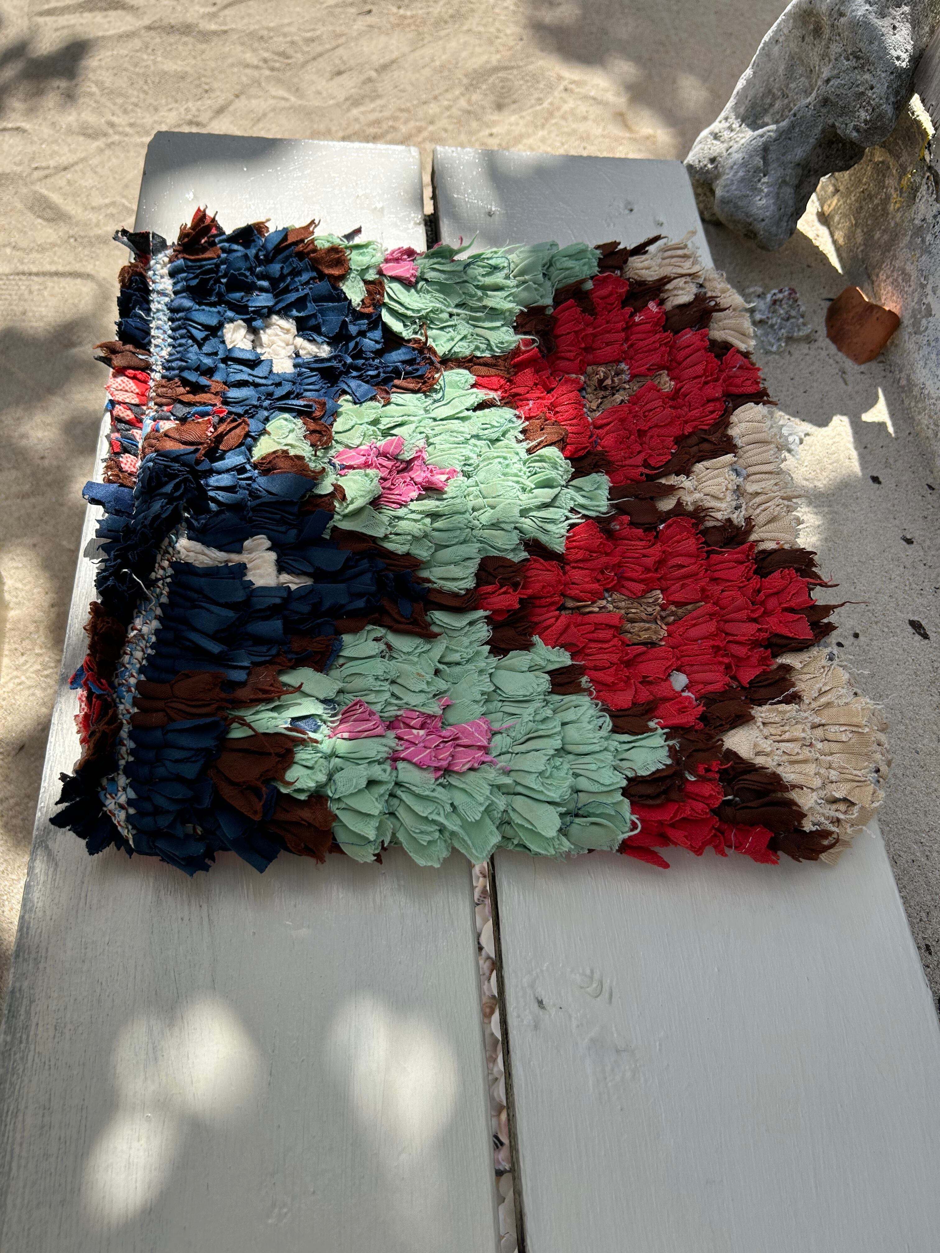 *いろんな種類の古着が使われてますので、強い日光に長時間当てると色落ちする場合もあります。裏返したり陰干しにして調整してあげるとカラフルな色が長持ちします^^