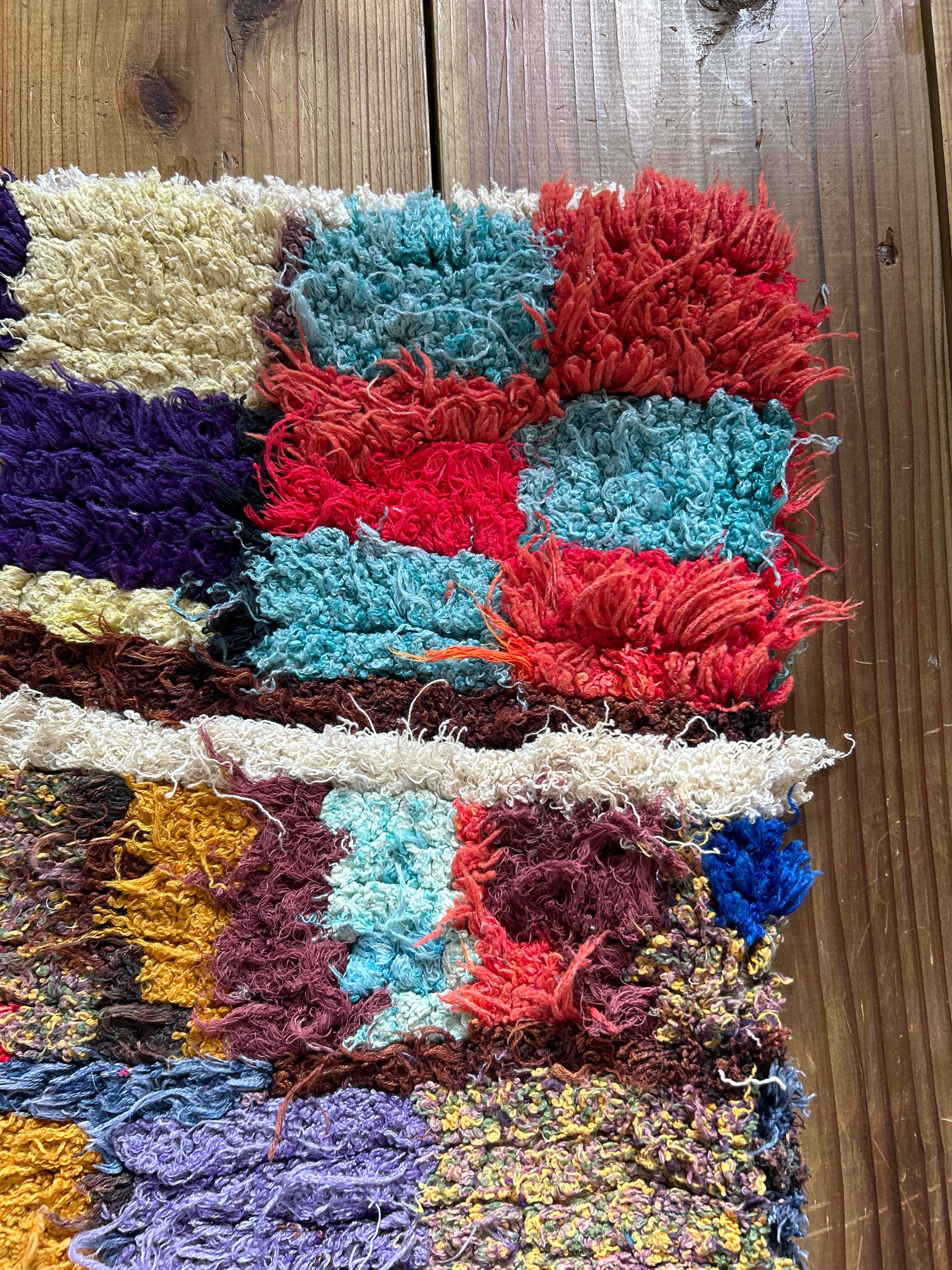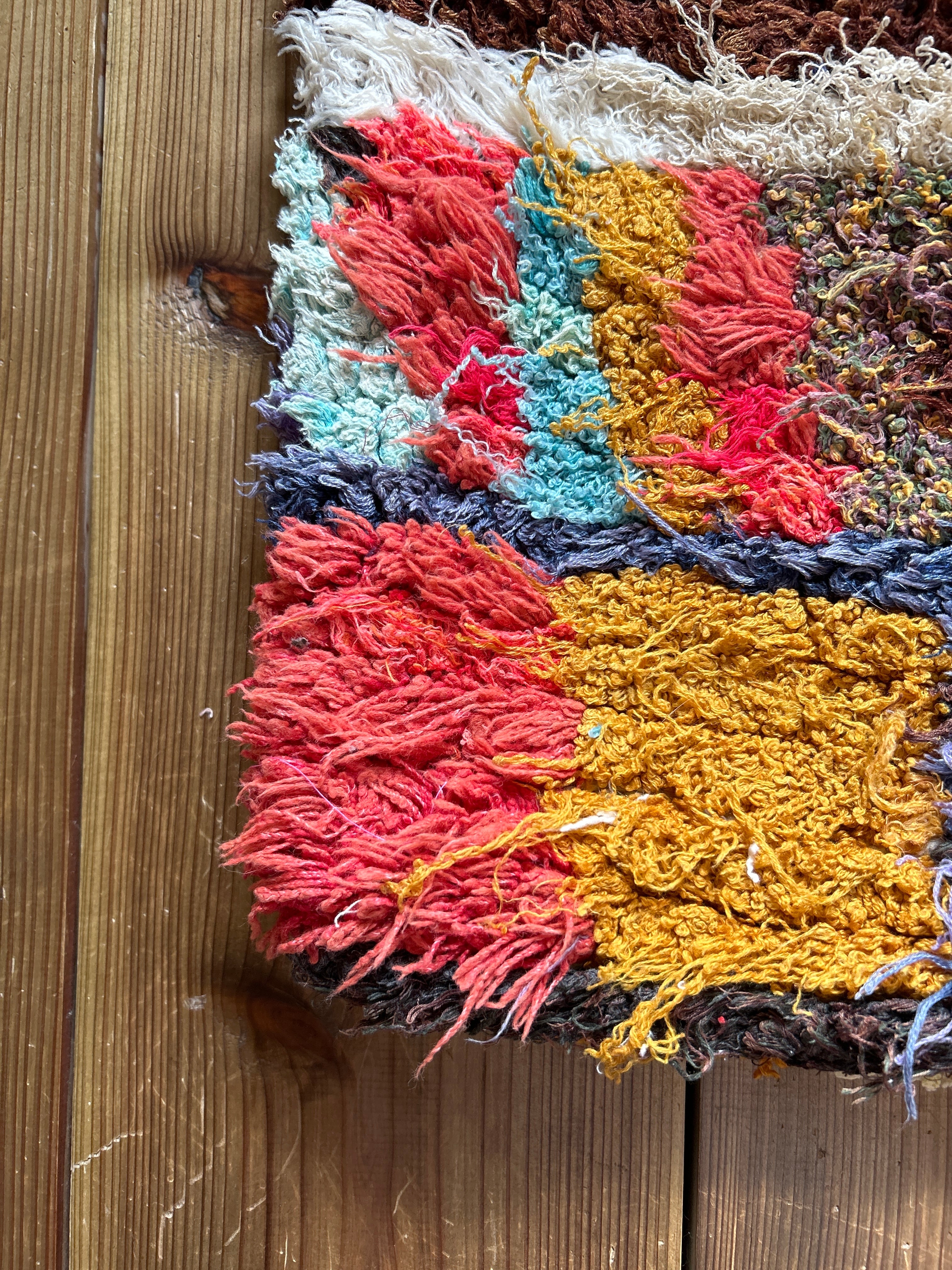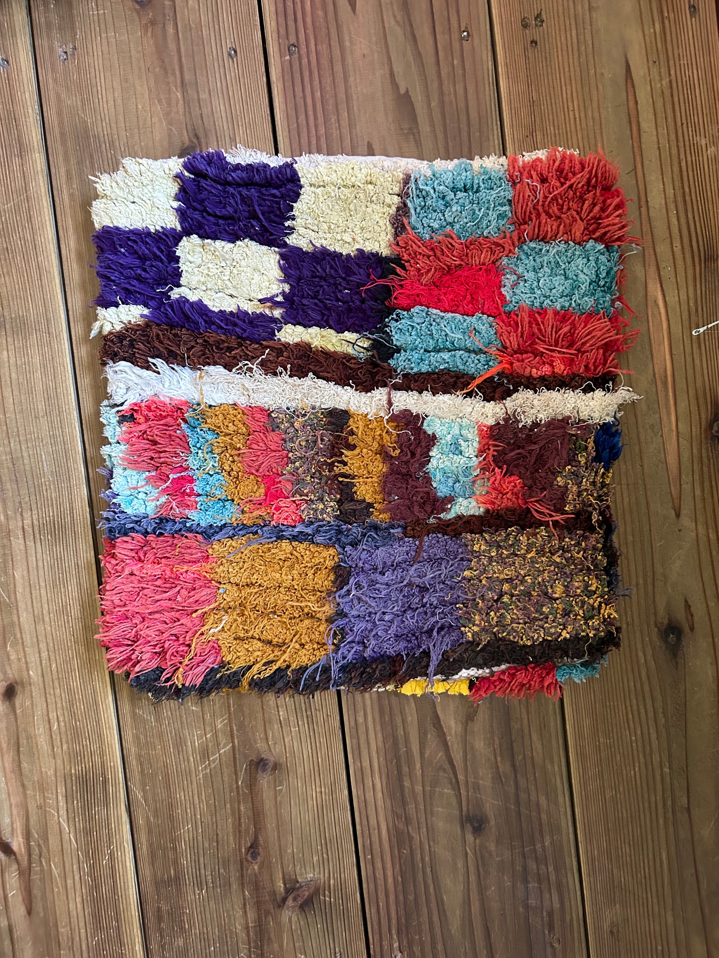 *いろんな種類の古着が使われてますので、強い日光に長時間当てると色落ちする場合もあります。裏返したり陰干しにして調整してあげるとカラフルな色が長持ちします^^