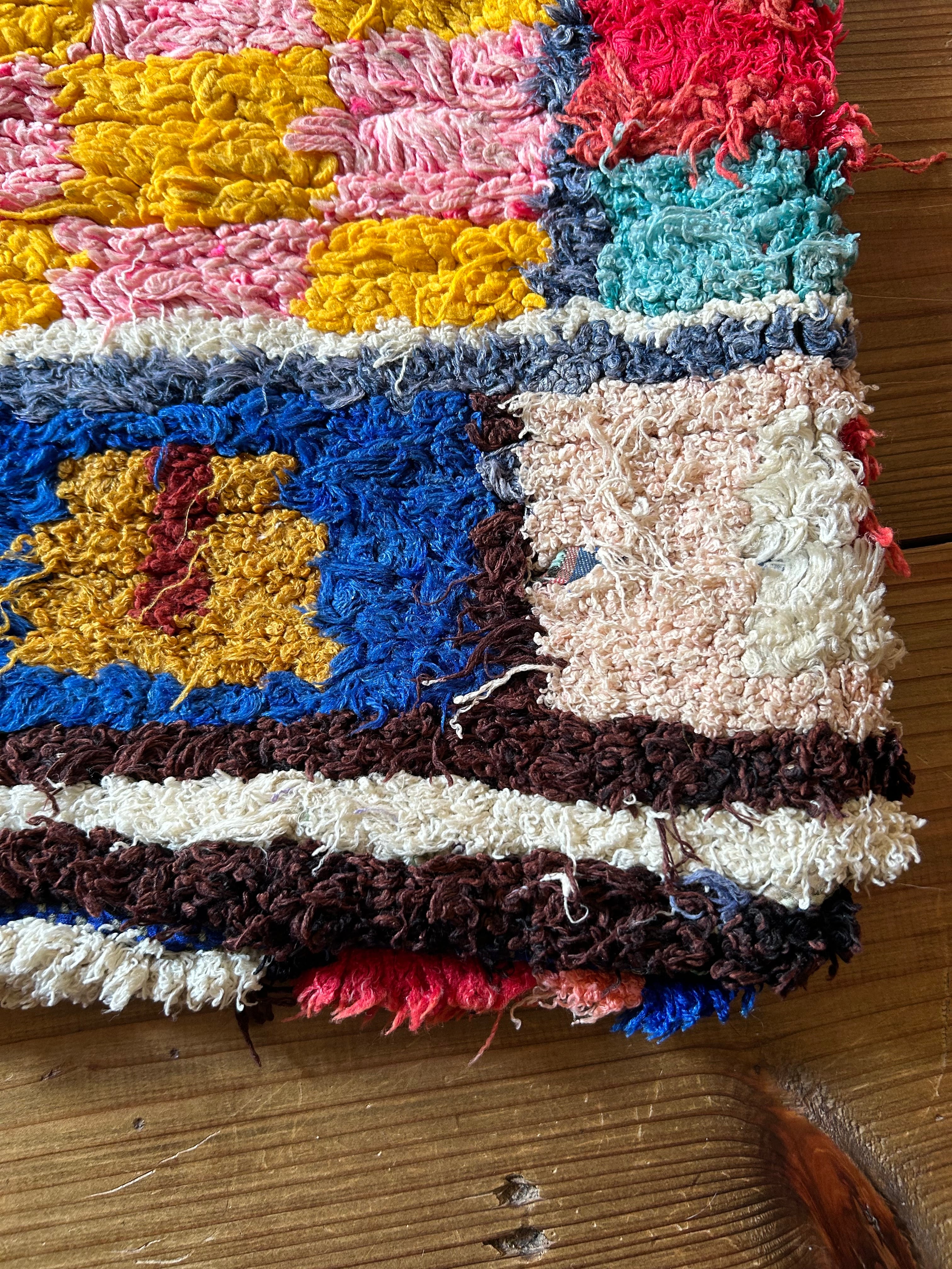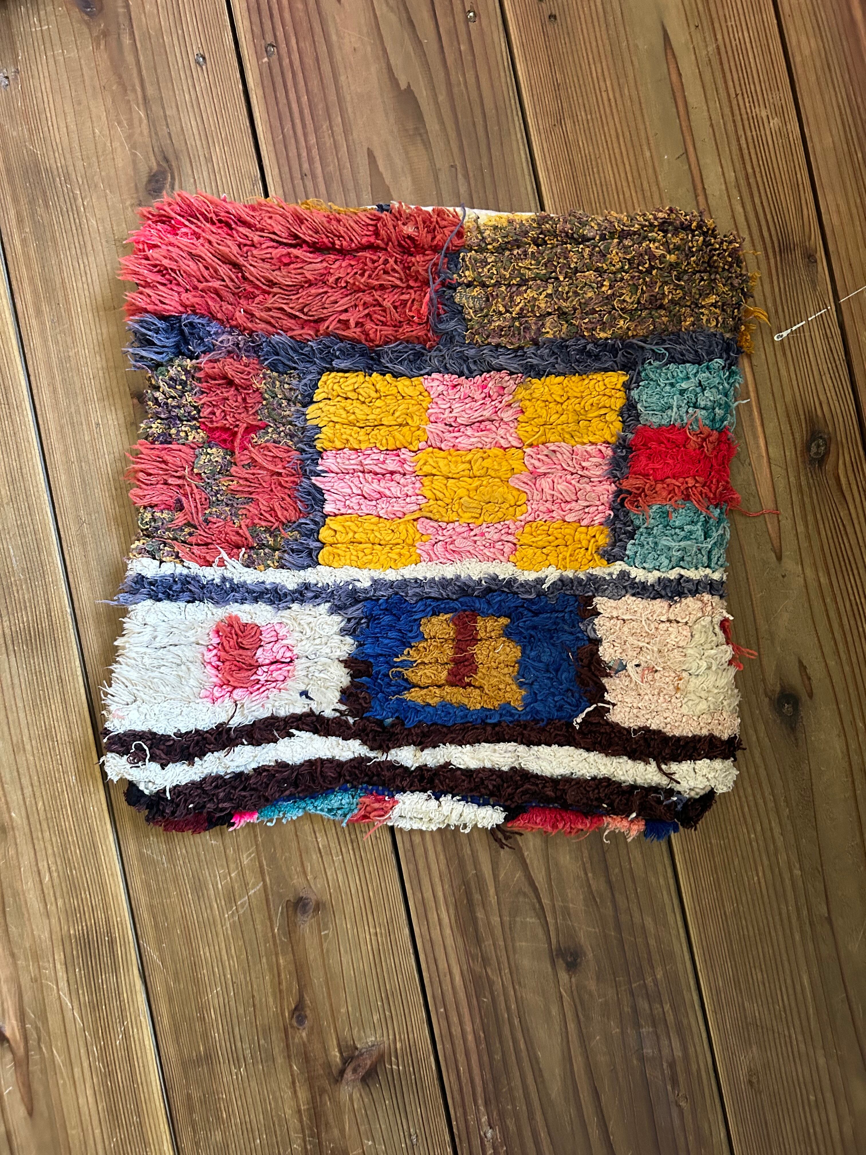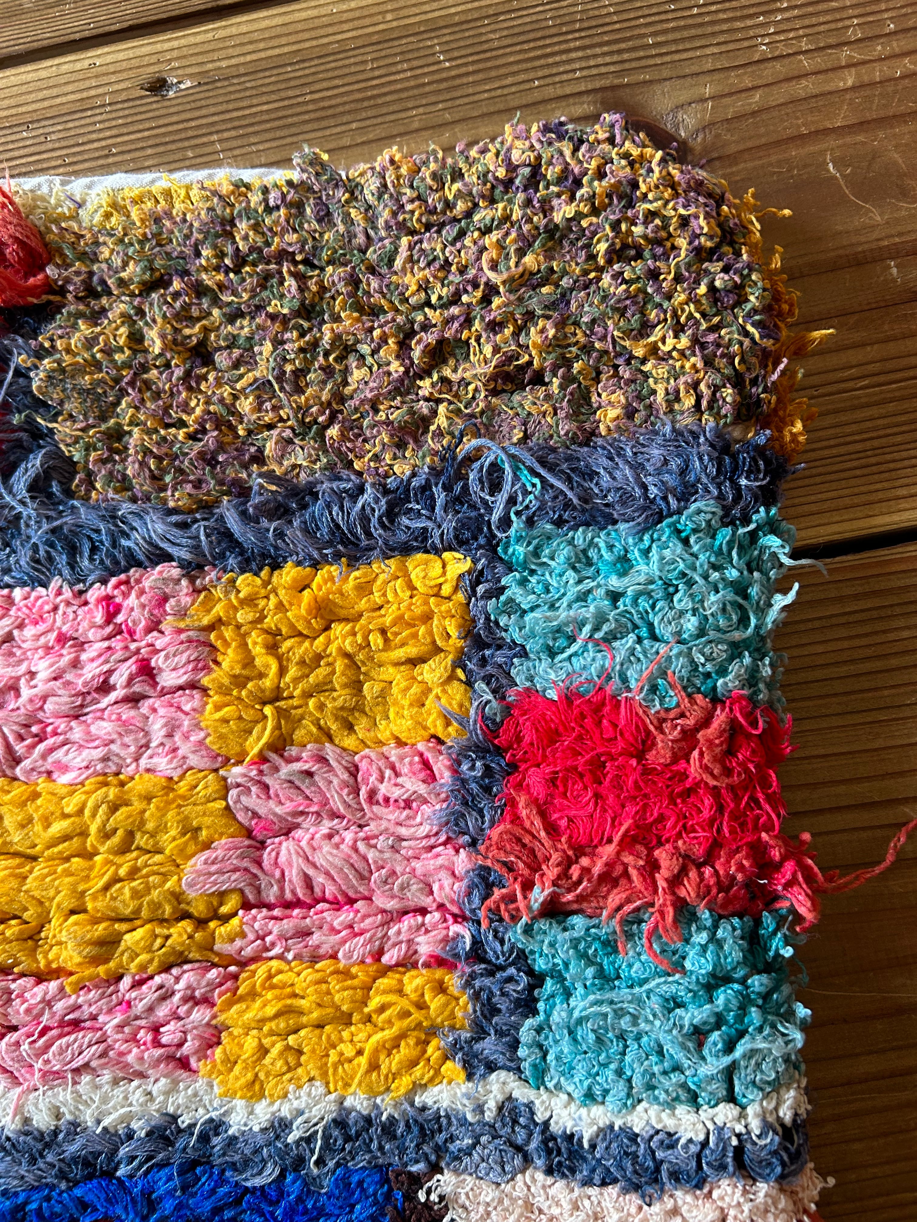 *いろんな種類の古着が使われてますので、強い日光に長時間当てると色落ちする場合もあります。裏返したり陰干しにして調整してあげるとカラフルな色が長持ちします^^