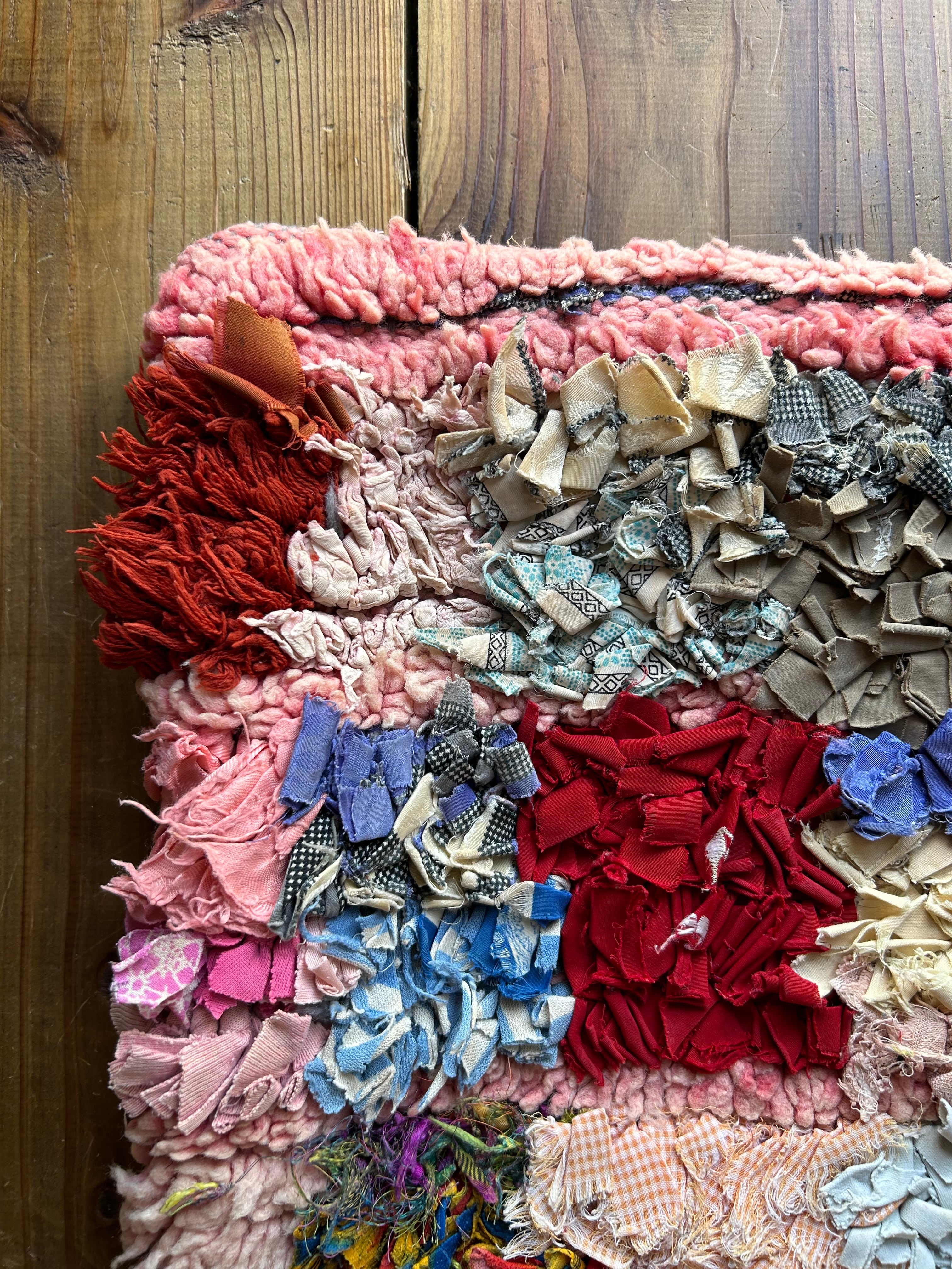 新作!ピンクのウールとレトロな布。