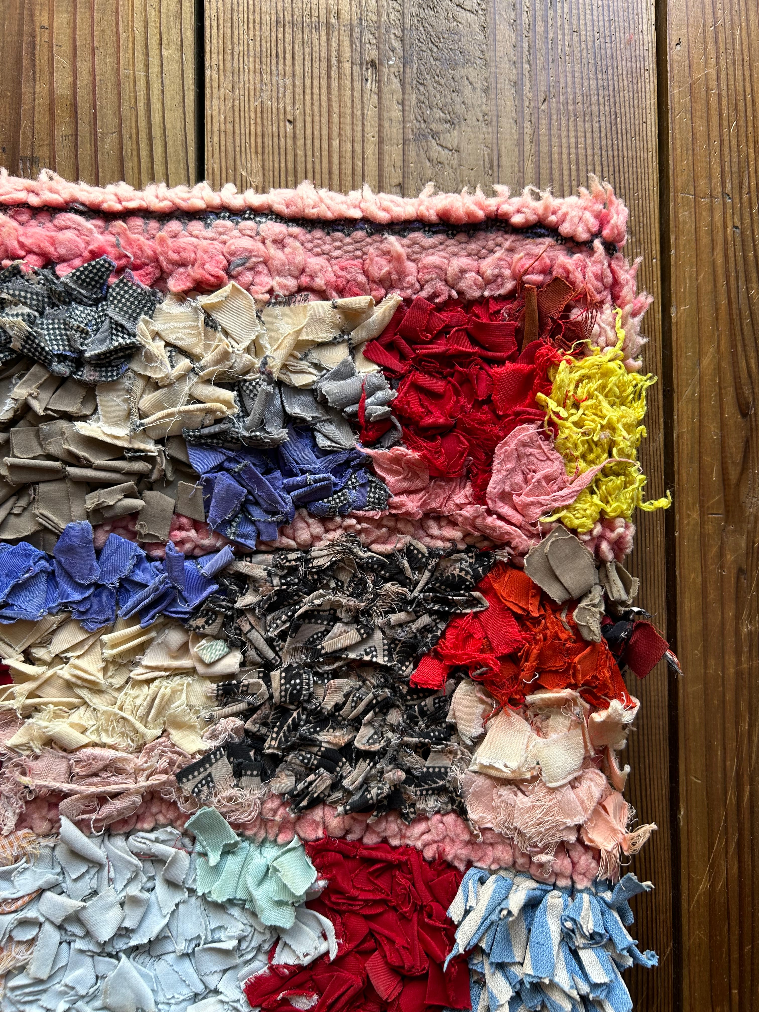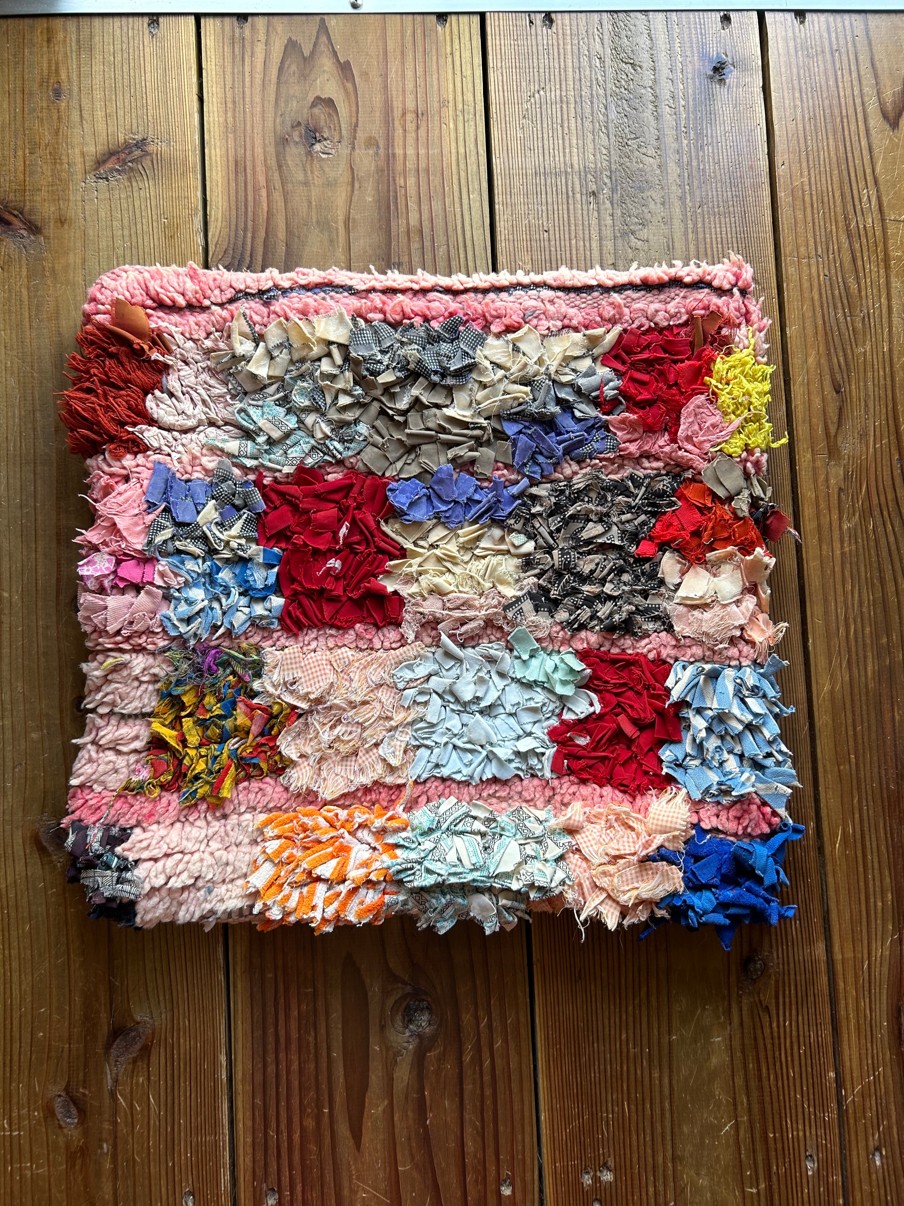 *いろんな種類の古着が使われてますので、強い日光に長時間当てると色落ちする場合もあります。裏返したり陰干しにして調整してあげるとカラフルな色が長持ちします^^