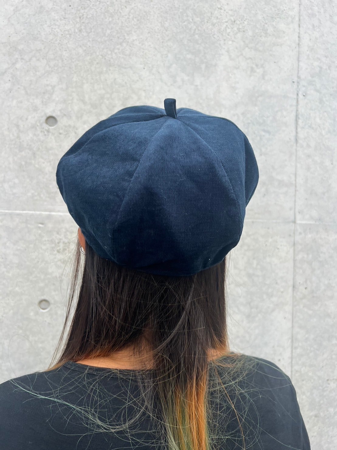 裏はシンプルに紺色コーデュロイ生地のみ。