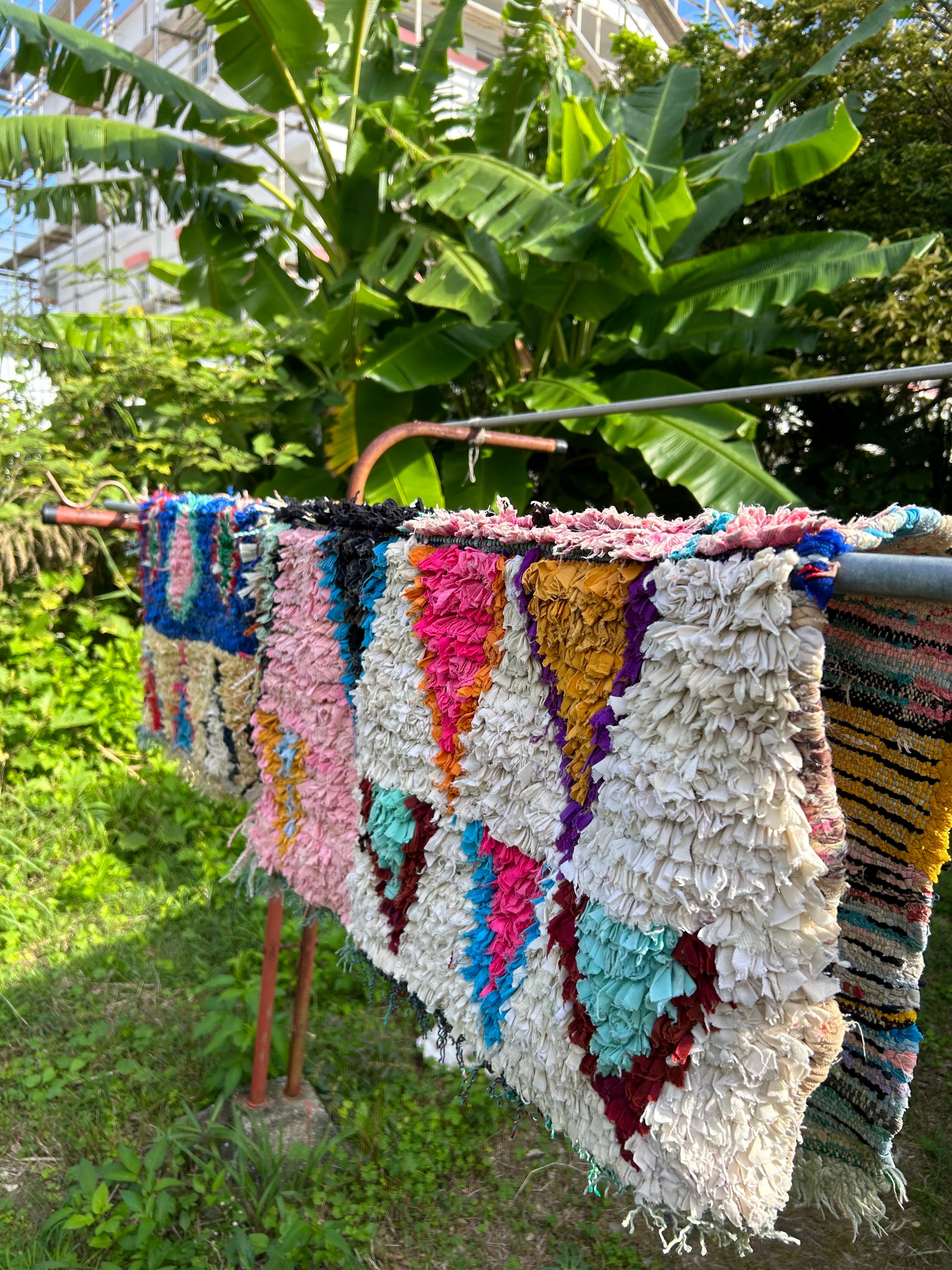 made in morocco モロッコ直輸入のラグをカットしてます。