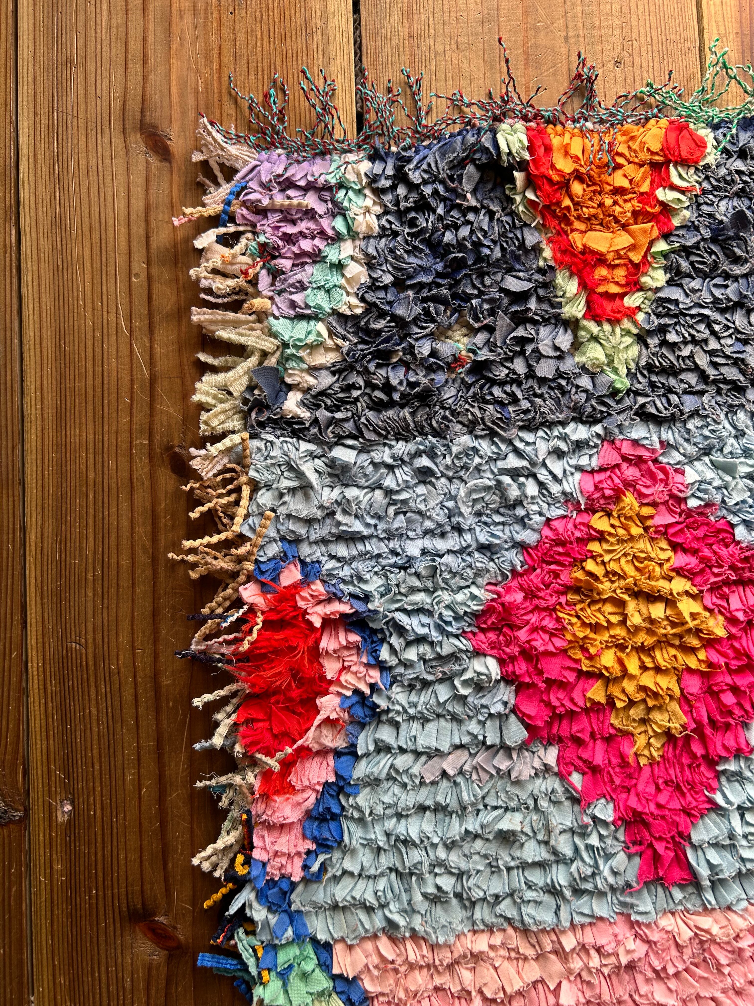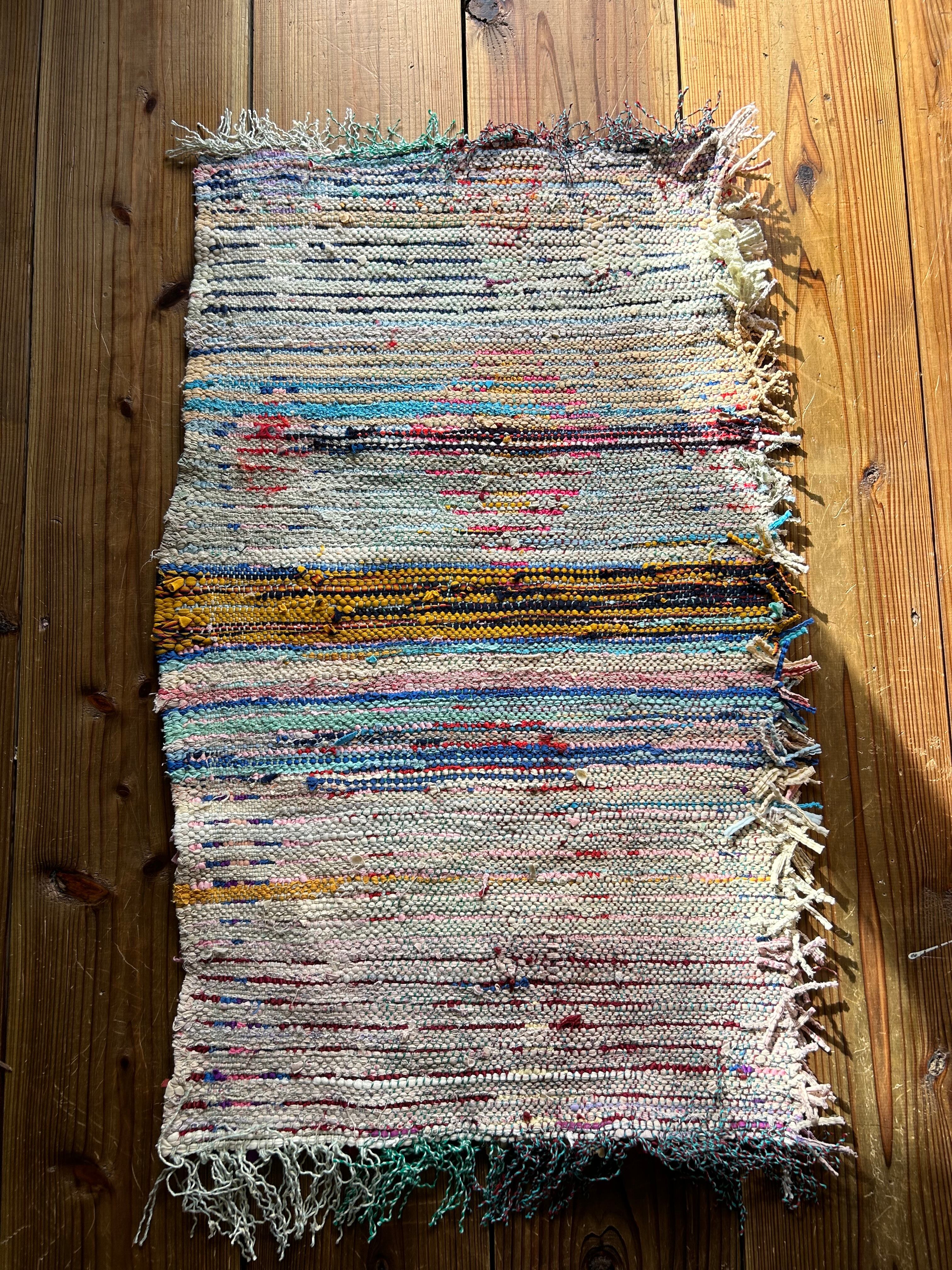 *いろんな種類の古着が使われてますので、強い日光に長時間当てると色落ちする場合もあります。裏返したり陰干しにして調整してあげるとカラフルな色が長持ちします^^