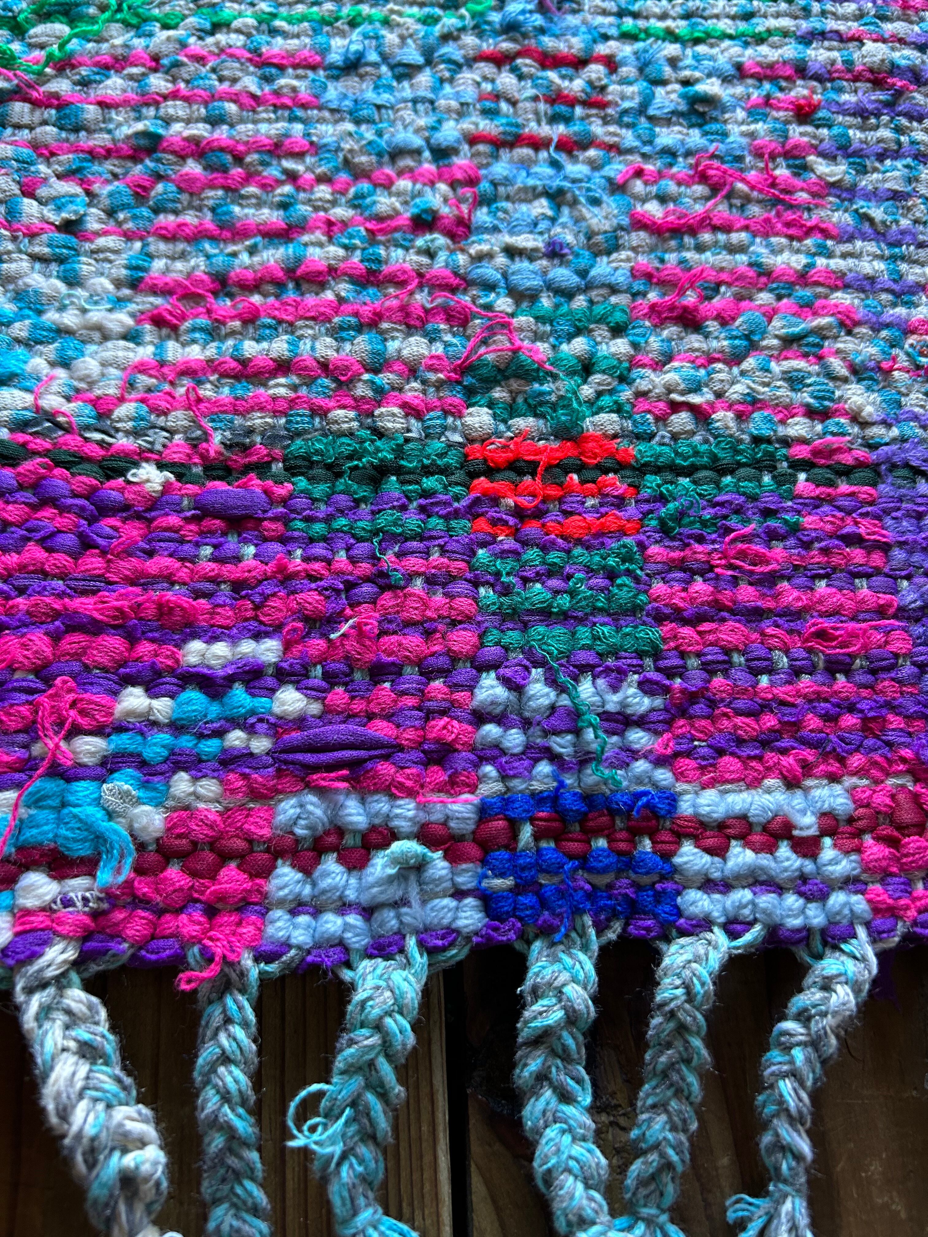 *いろんな種類の古着が使われてますので、強い日光に長時間当てると色落ちする場合もあります。裏返したり陰干しにして調整してあげるとカラフルな色が長持ちします^^