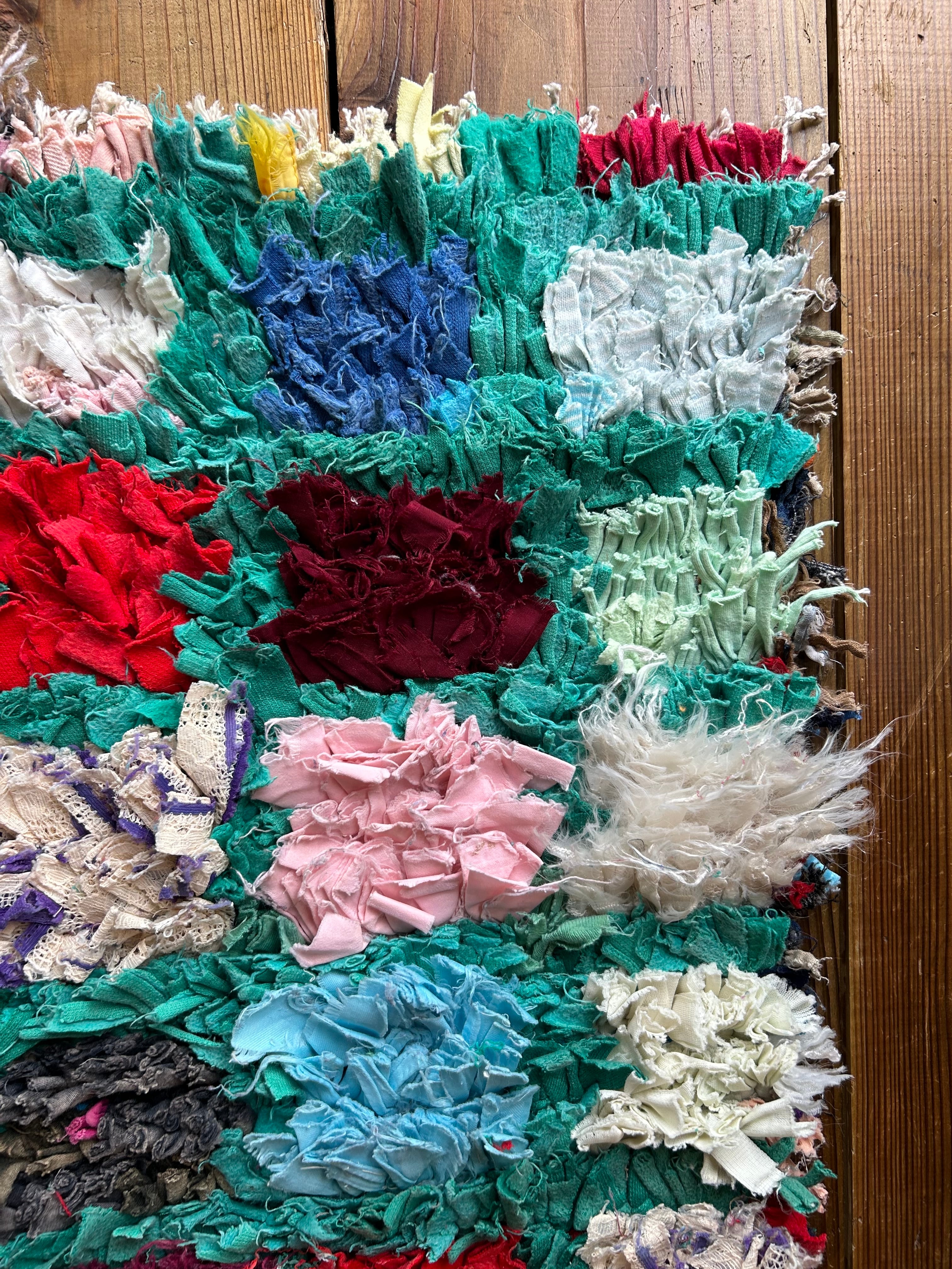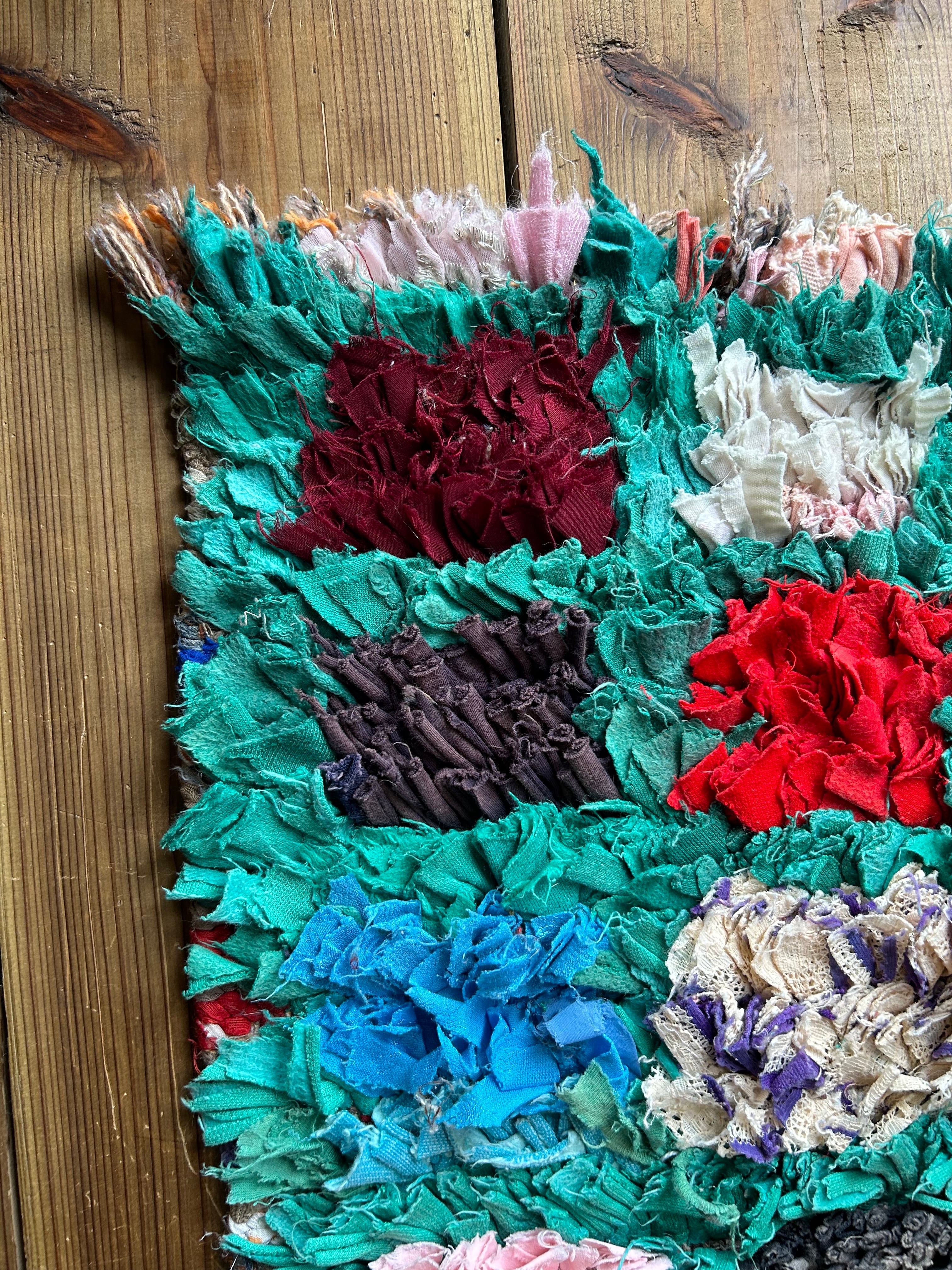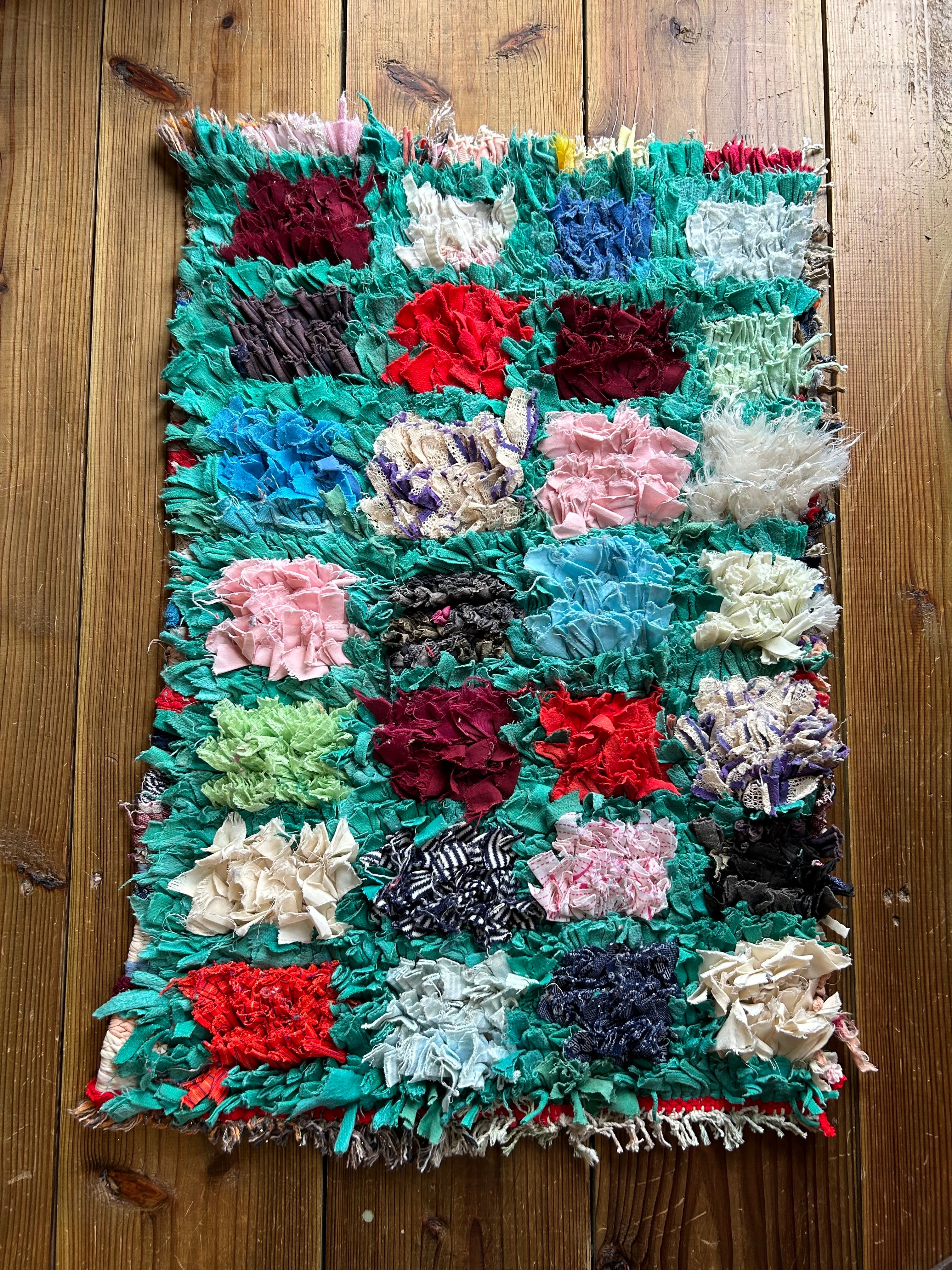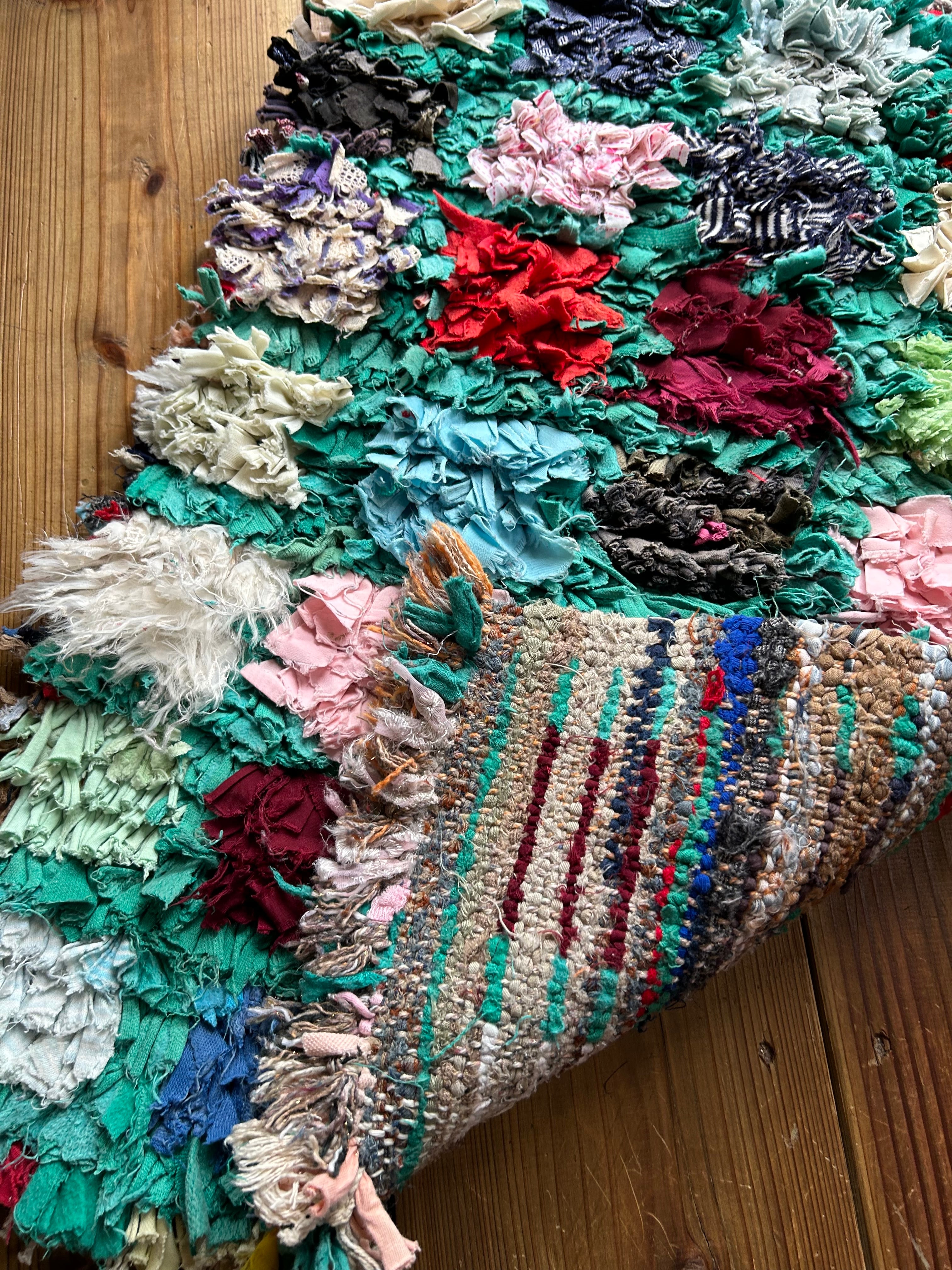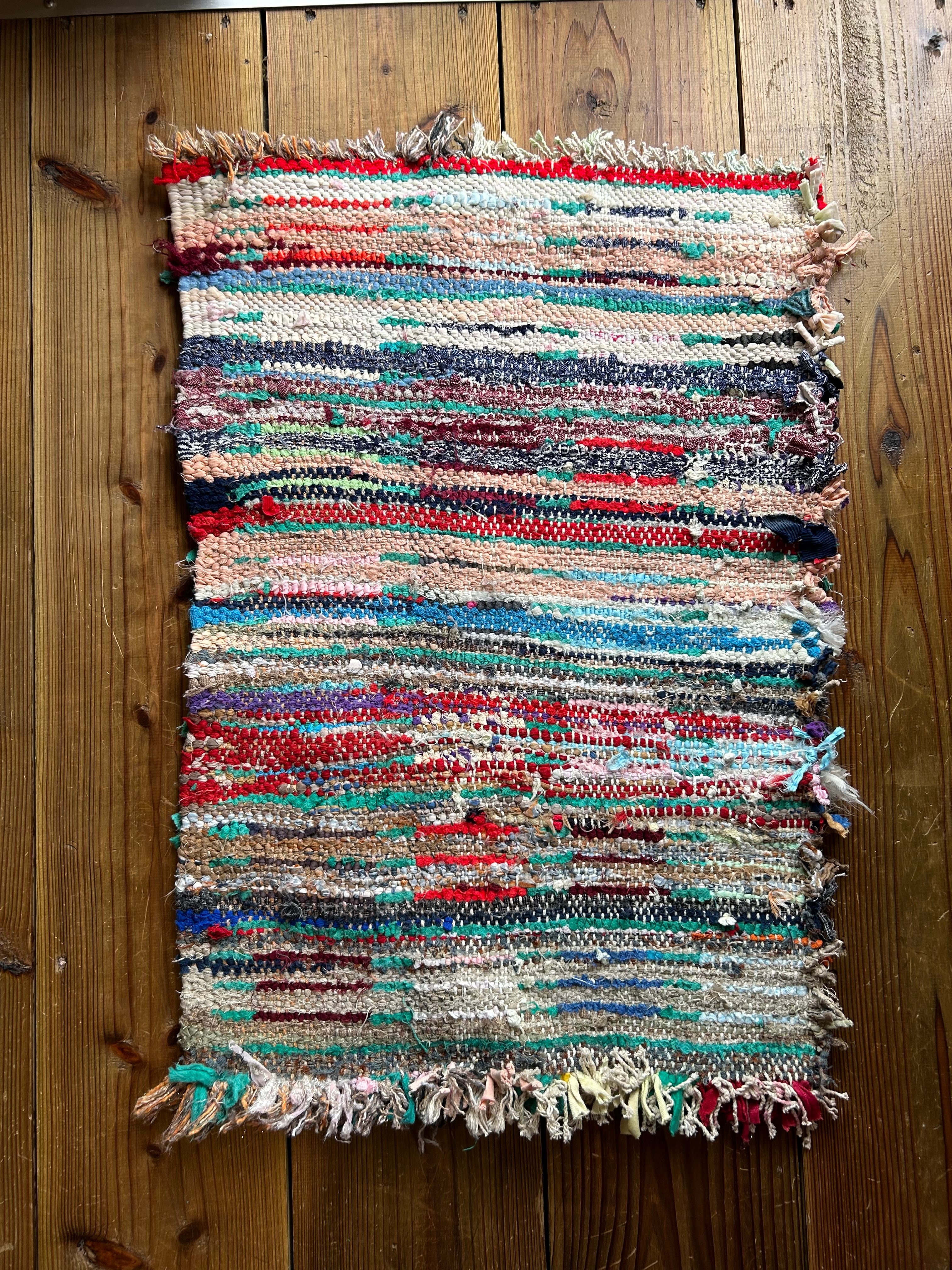 *いろんな種類の古着が使われてますので、強い日光に長時間当てると色落ちする場合もあります。裏返したり陰干しにして調整してあげるとカラフルな色が長持ちします^^