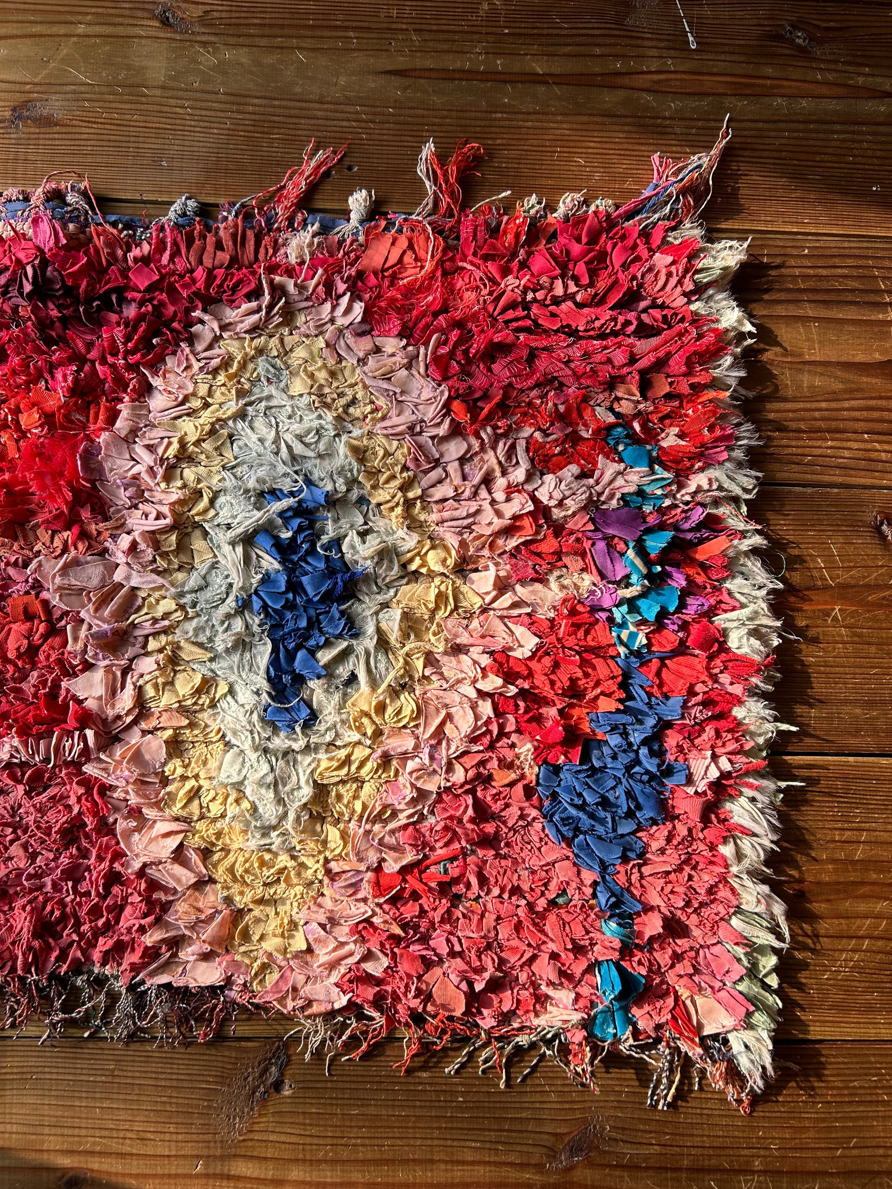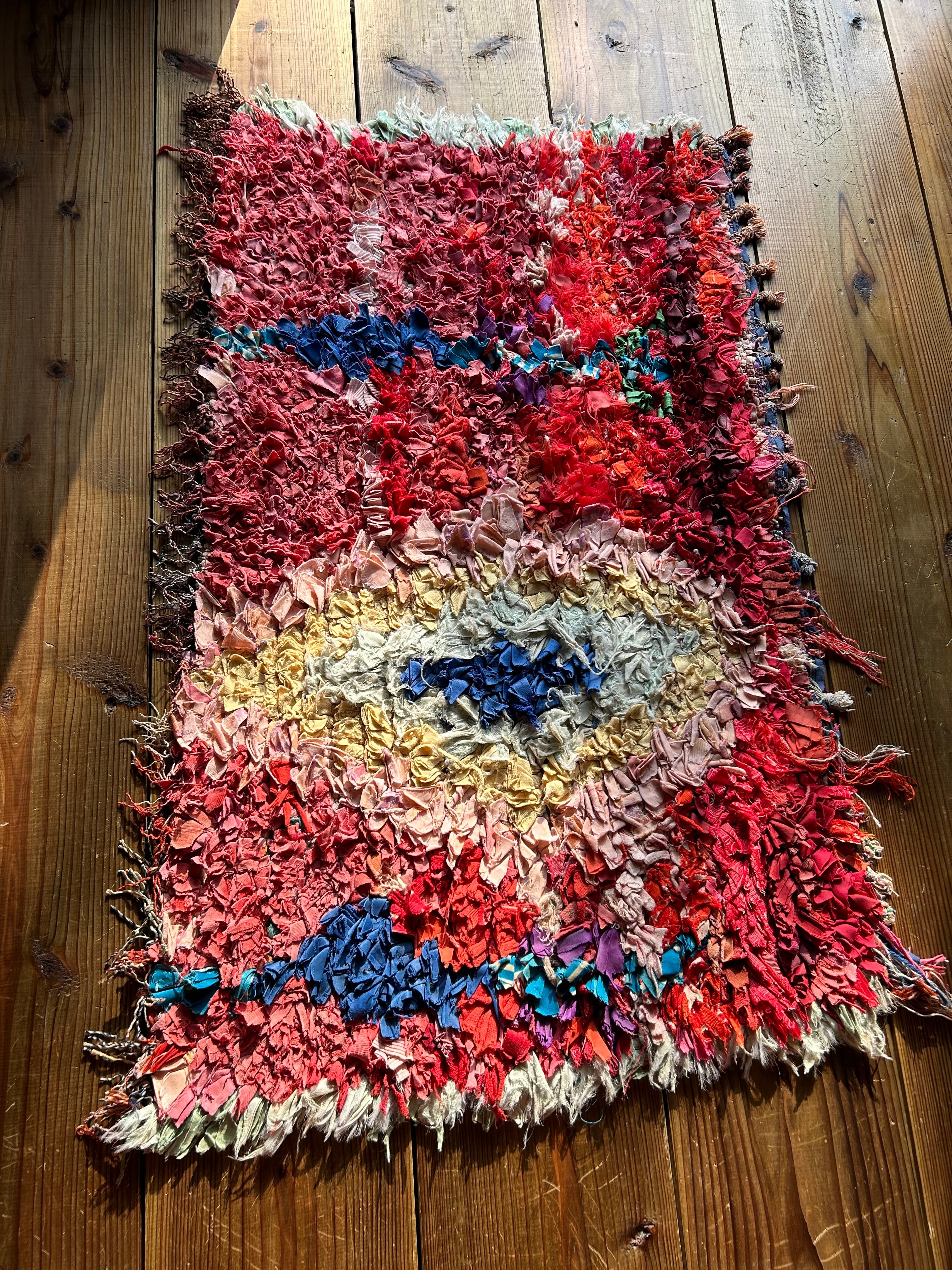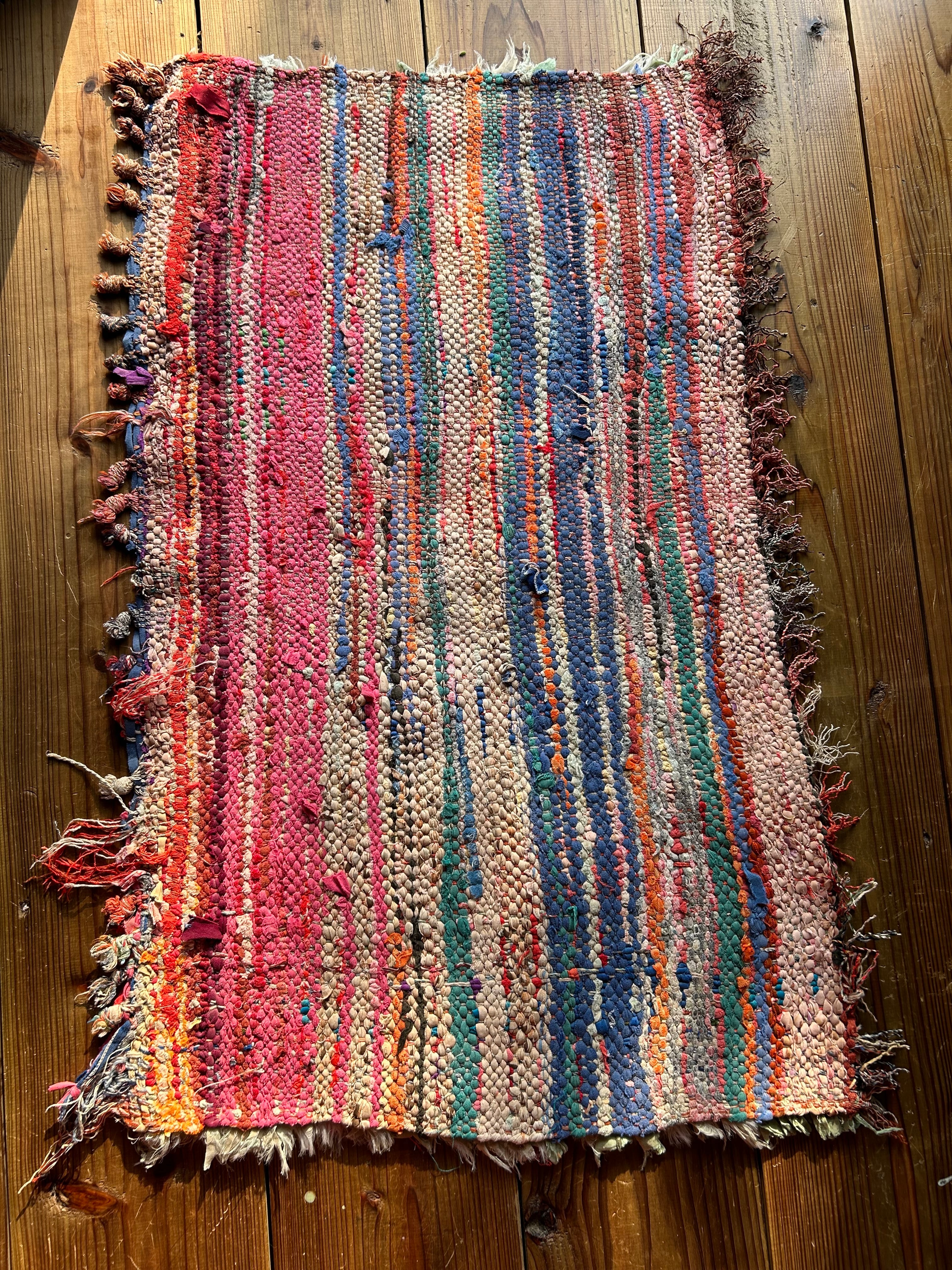 *いろんな種類の古着が使われてますので、強い日光に長時間当てると色落ちする場合もあります。裏返したり陰干しにして調整してあげるとカラフルな色が長持ちします^^
