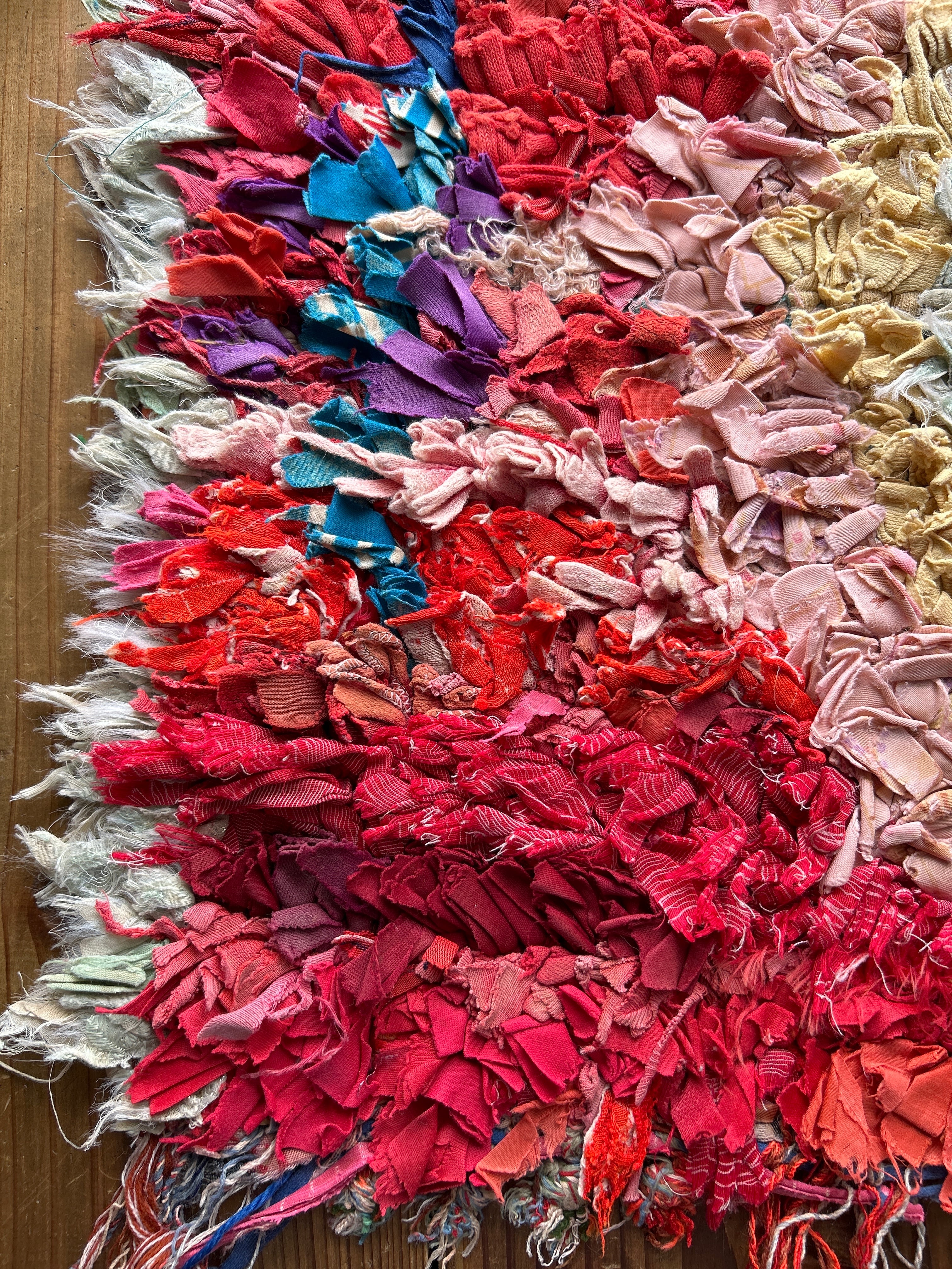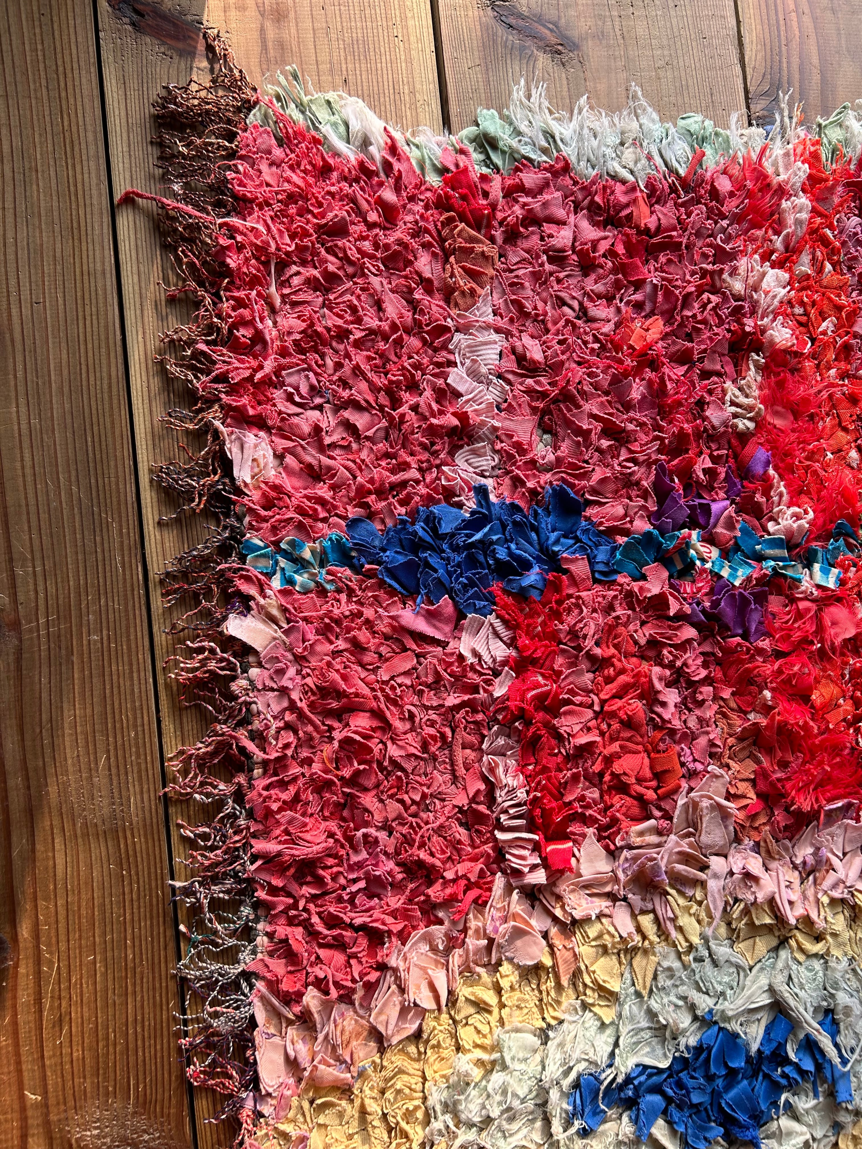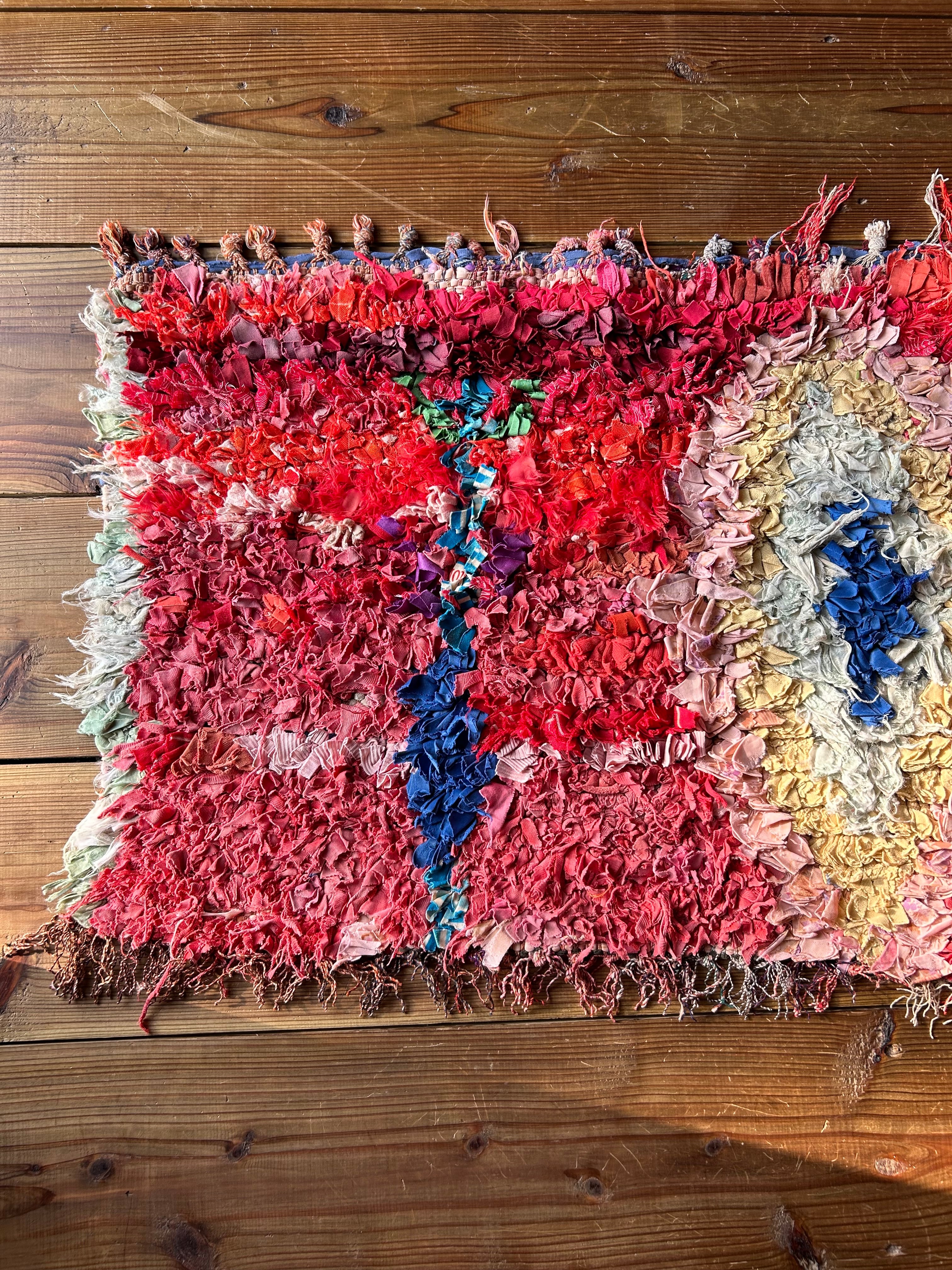 *いろんな種類の古着が使われてますので、強い日光に長時間当てると色落ちする場合もあります。裏返したり陰干しにして調整してあげるとカラフルな色が長持ちします^^