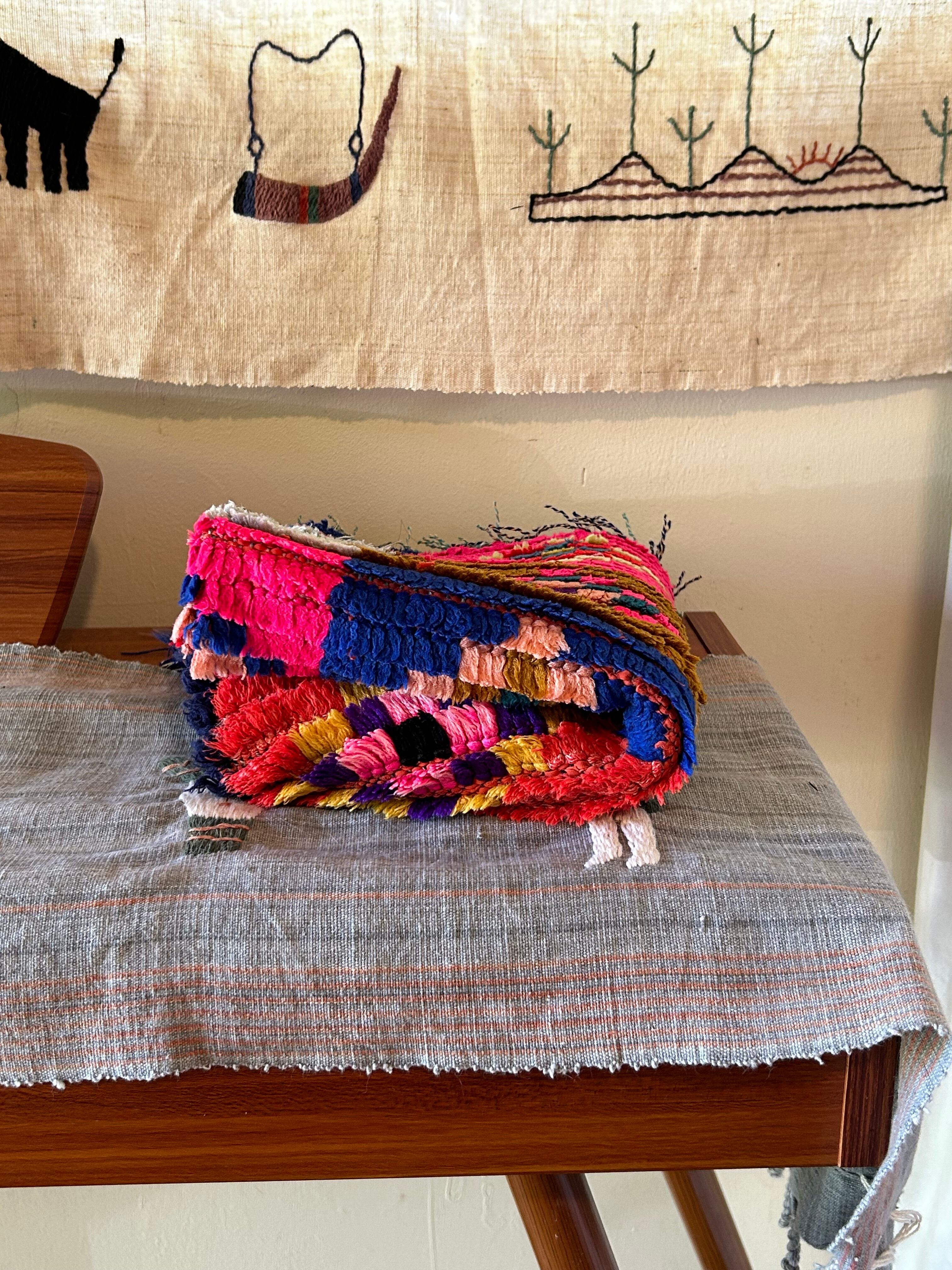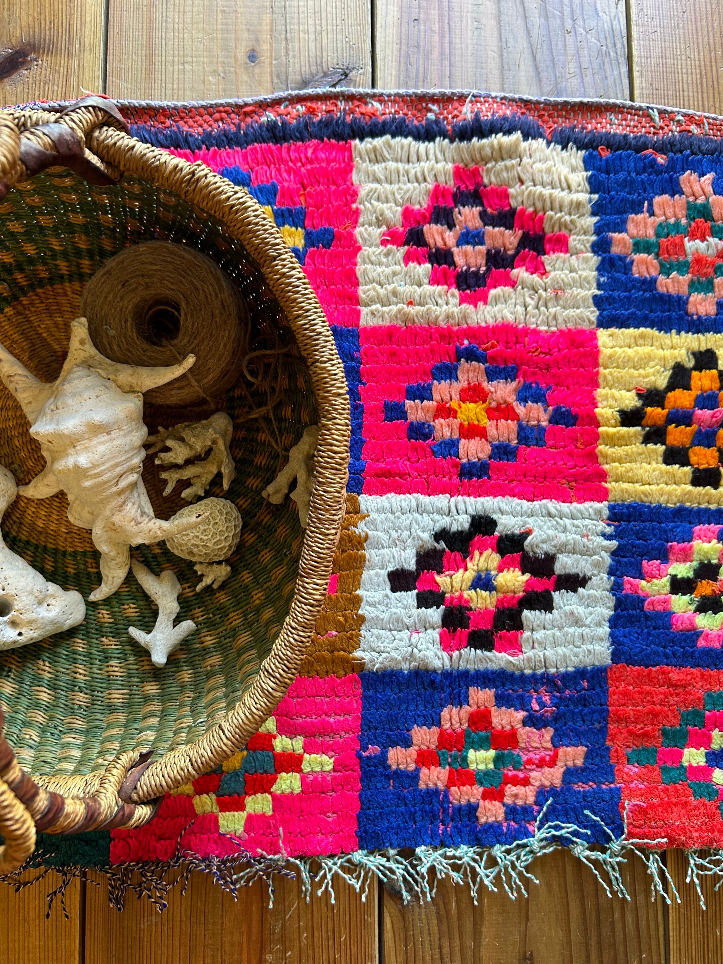 *いろんな種類の古着が使われてますので、強い日光に長時間当てると色落ちする場合もあります。裏返したり陰干しにして調整してあげるとカラフルな色が長持ちします^^