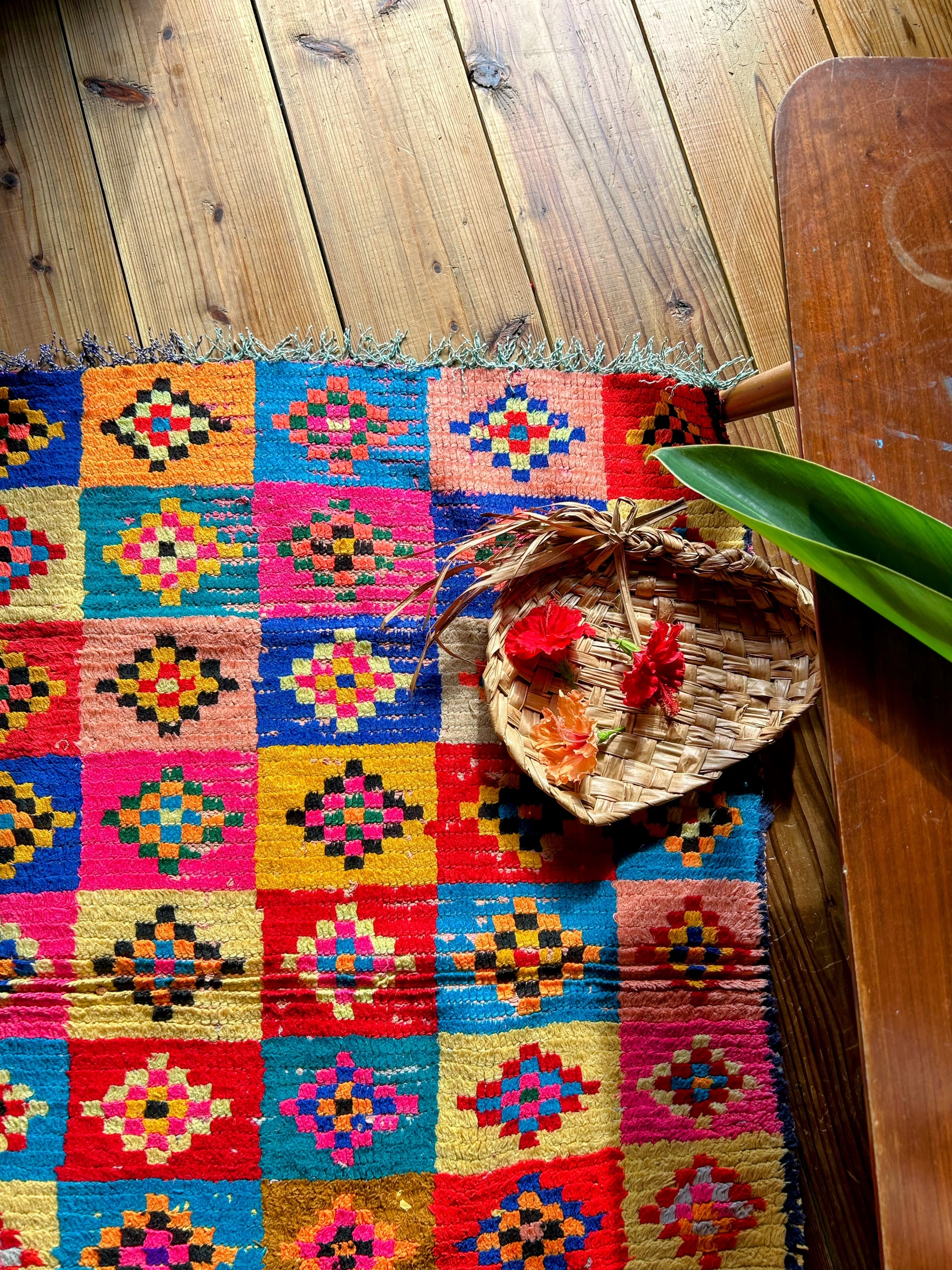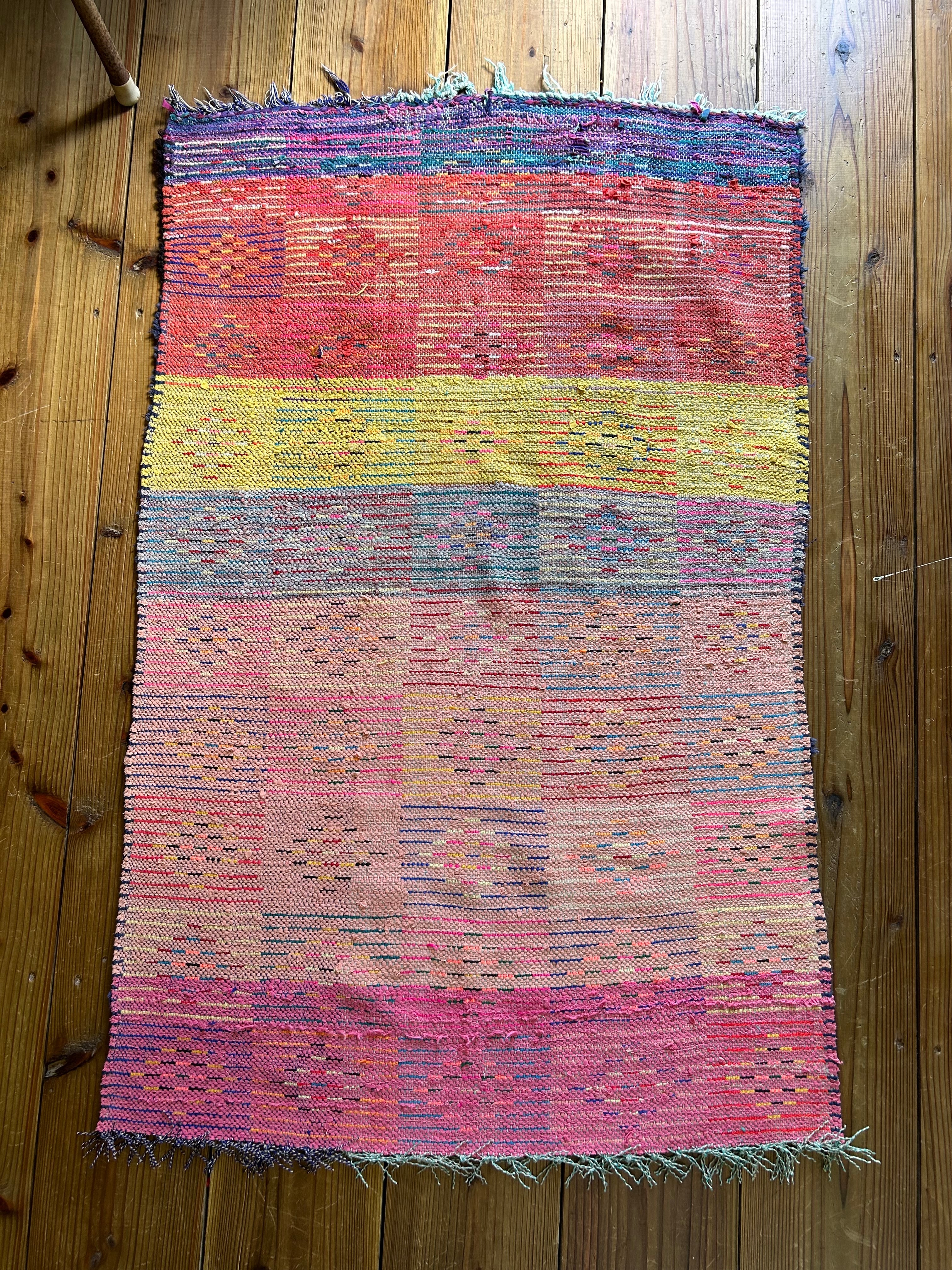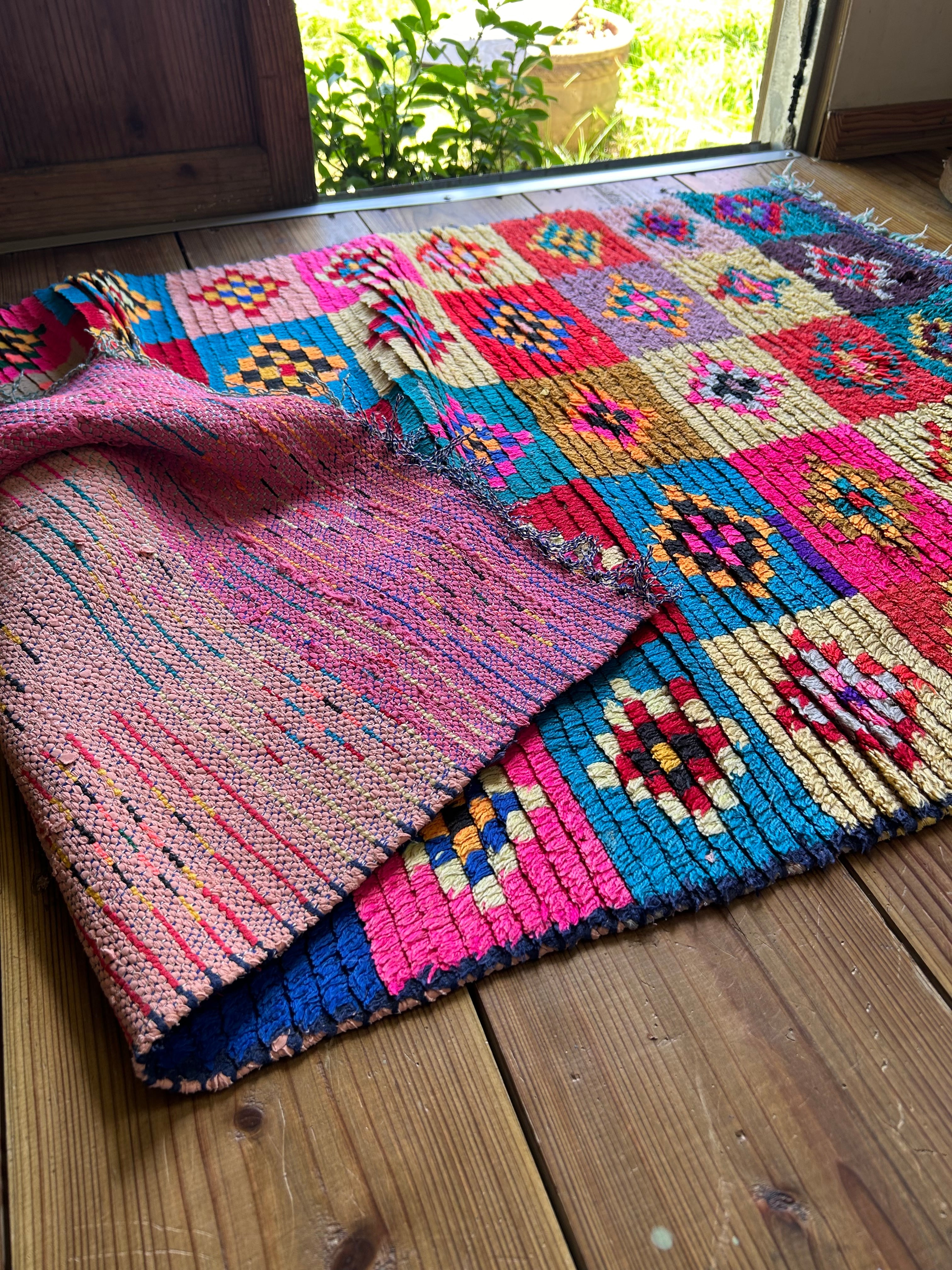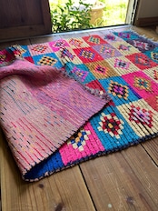 自然光でキラキラしたピンクが素敵なラグ。