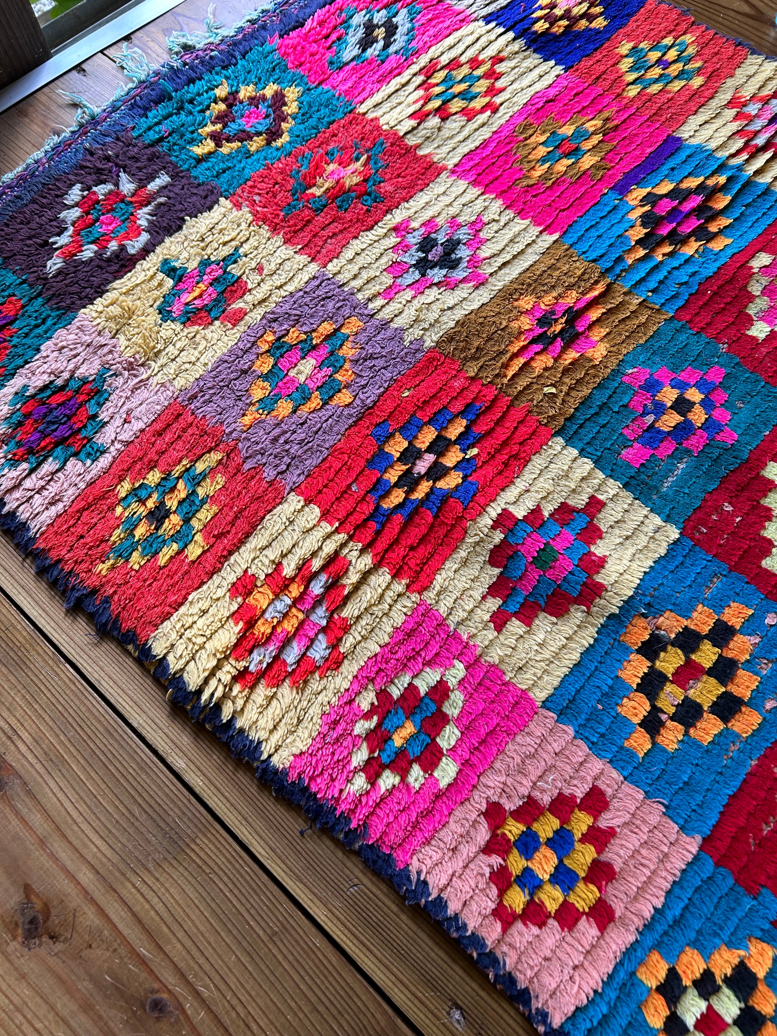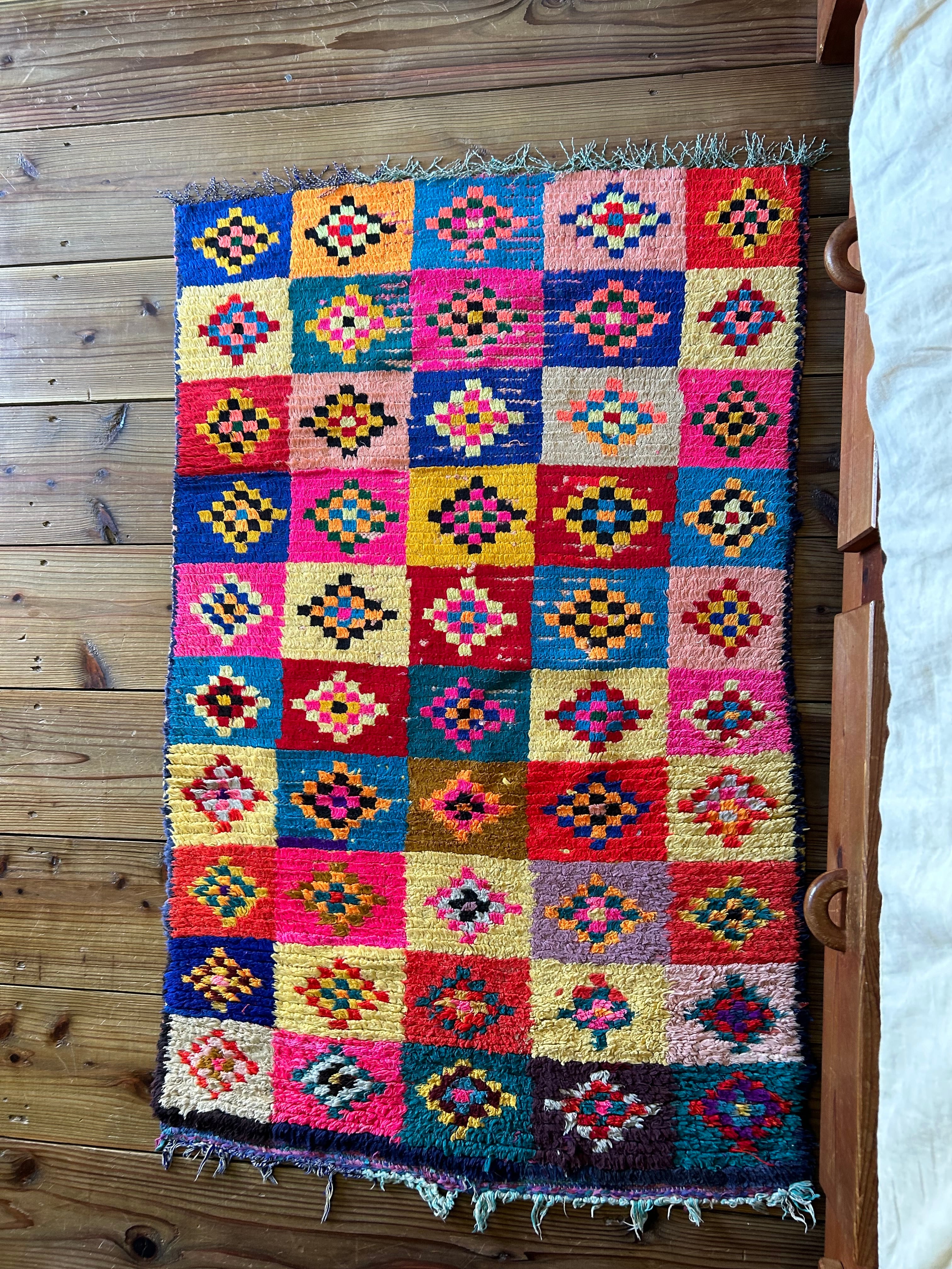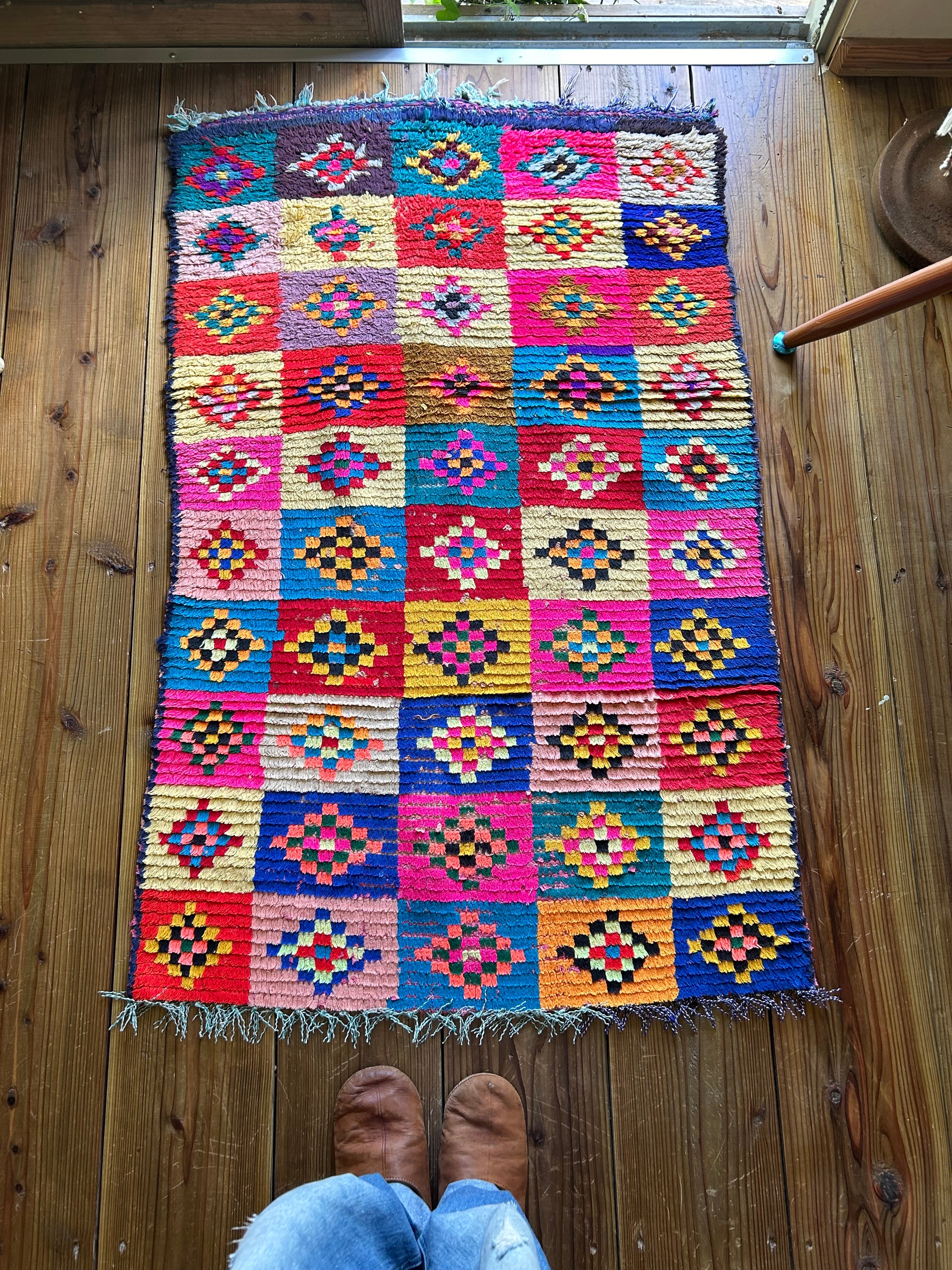 自然光でキラキラしたピンクが素敵なラグ。