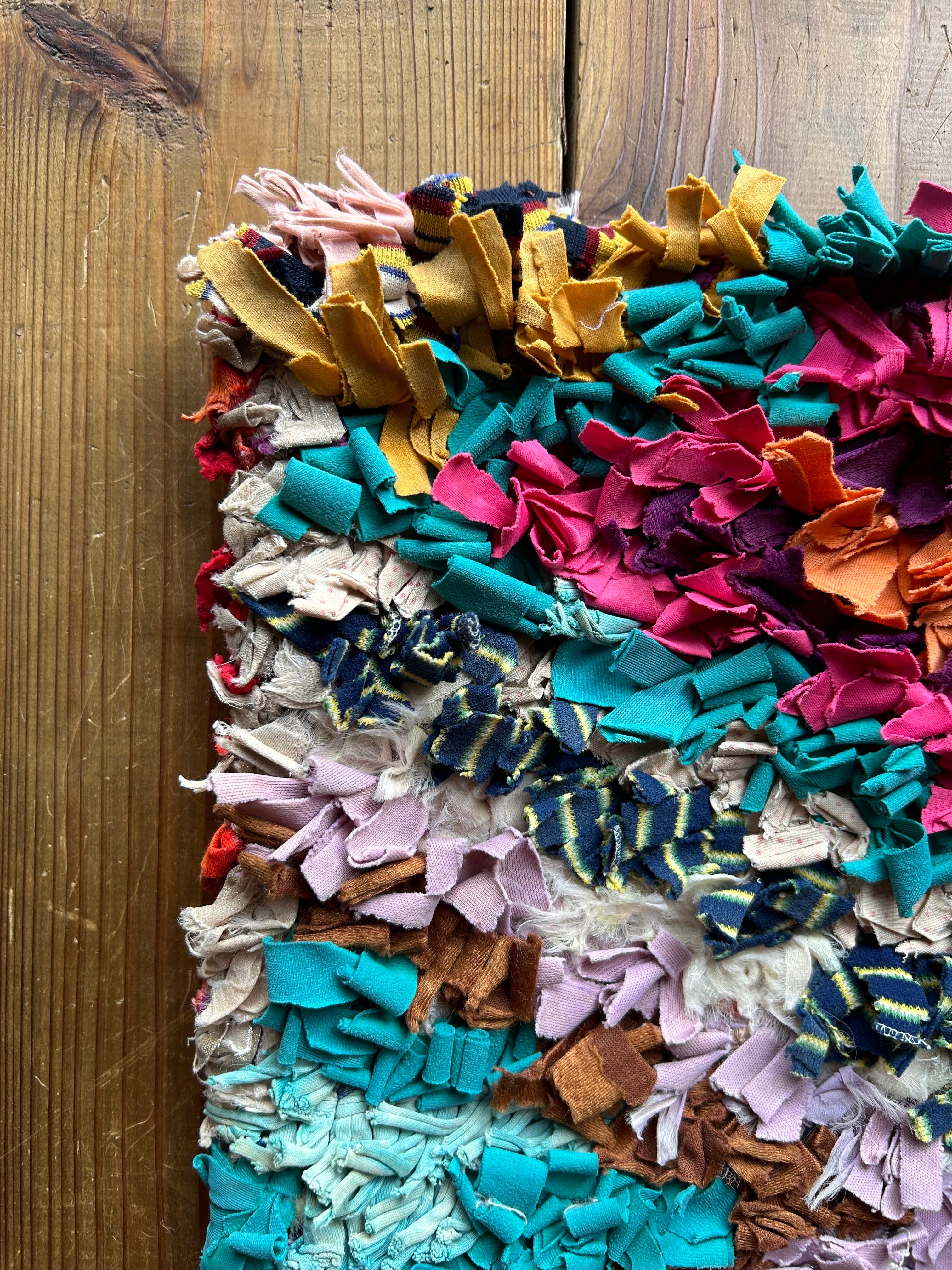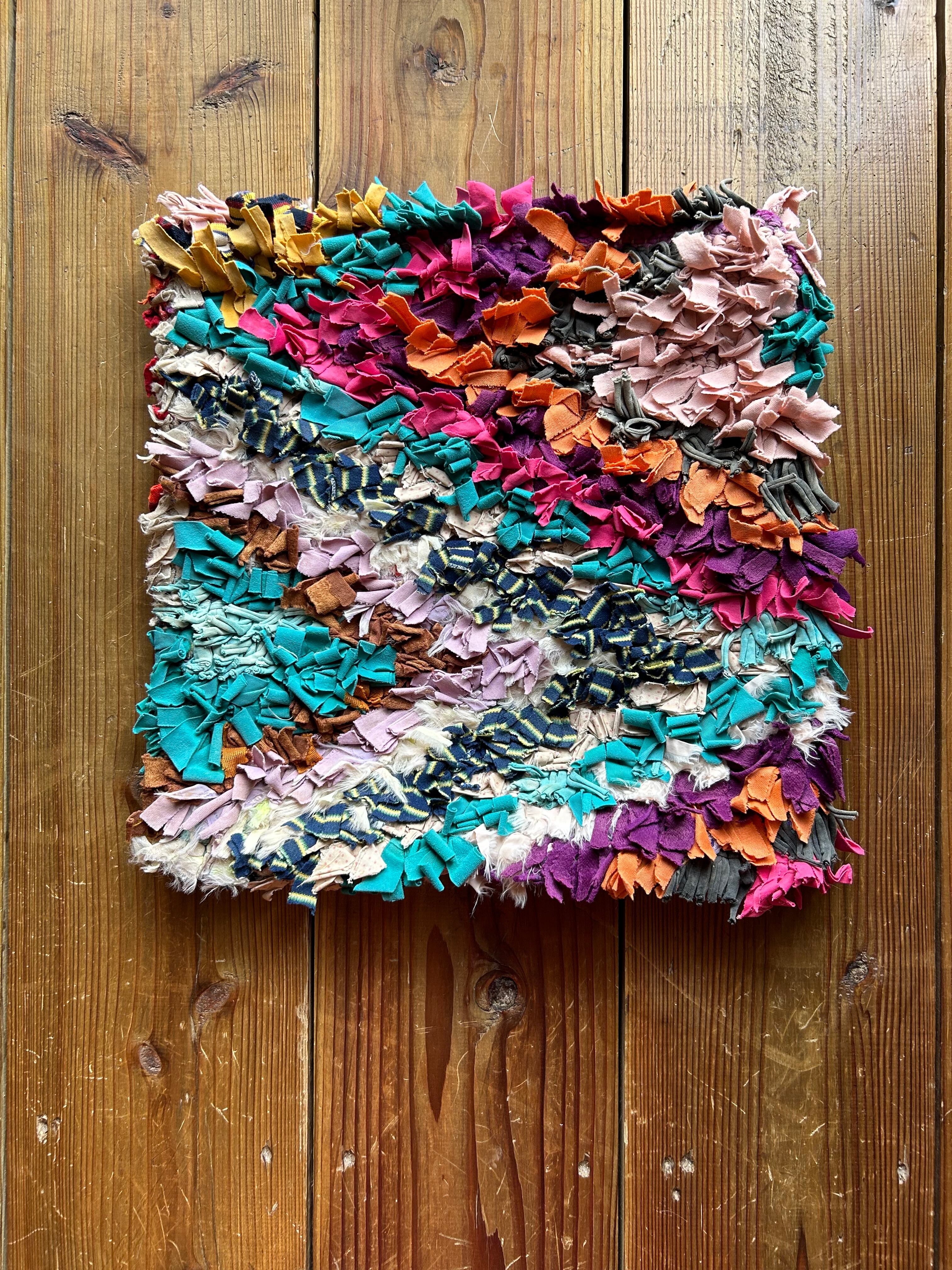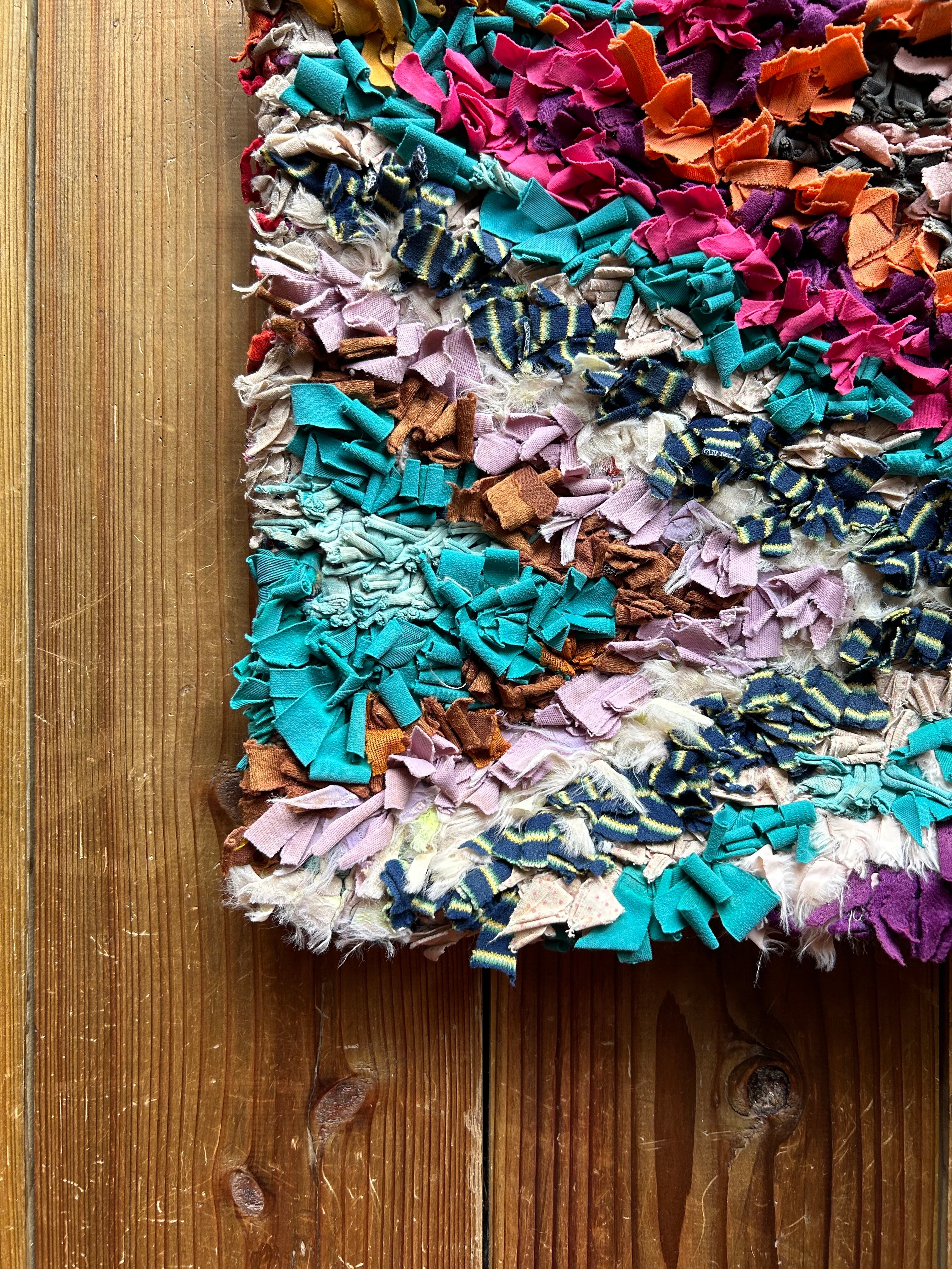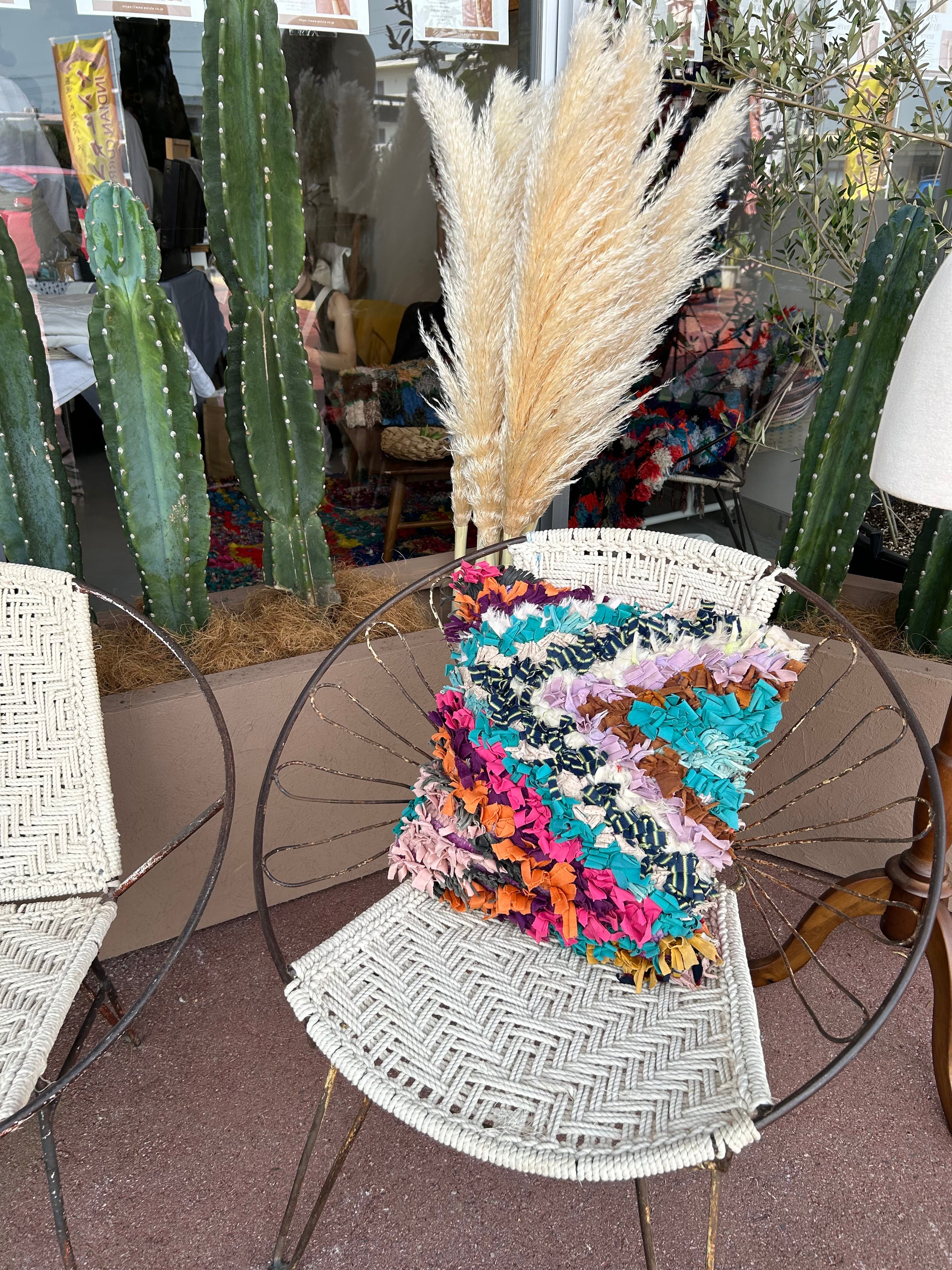 *いろんな種類の古着が使われてますので、強い日光に長時間当てると色落ちする場合もあります。裏返したり陰干しにして調整してあげるとカラフルな色が長持ちします^^