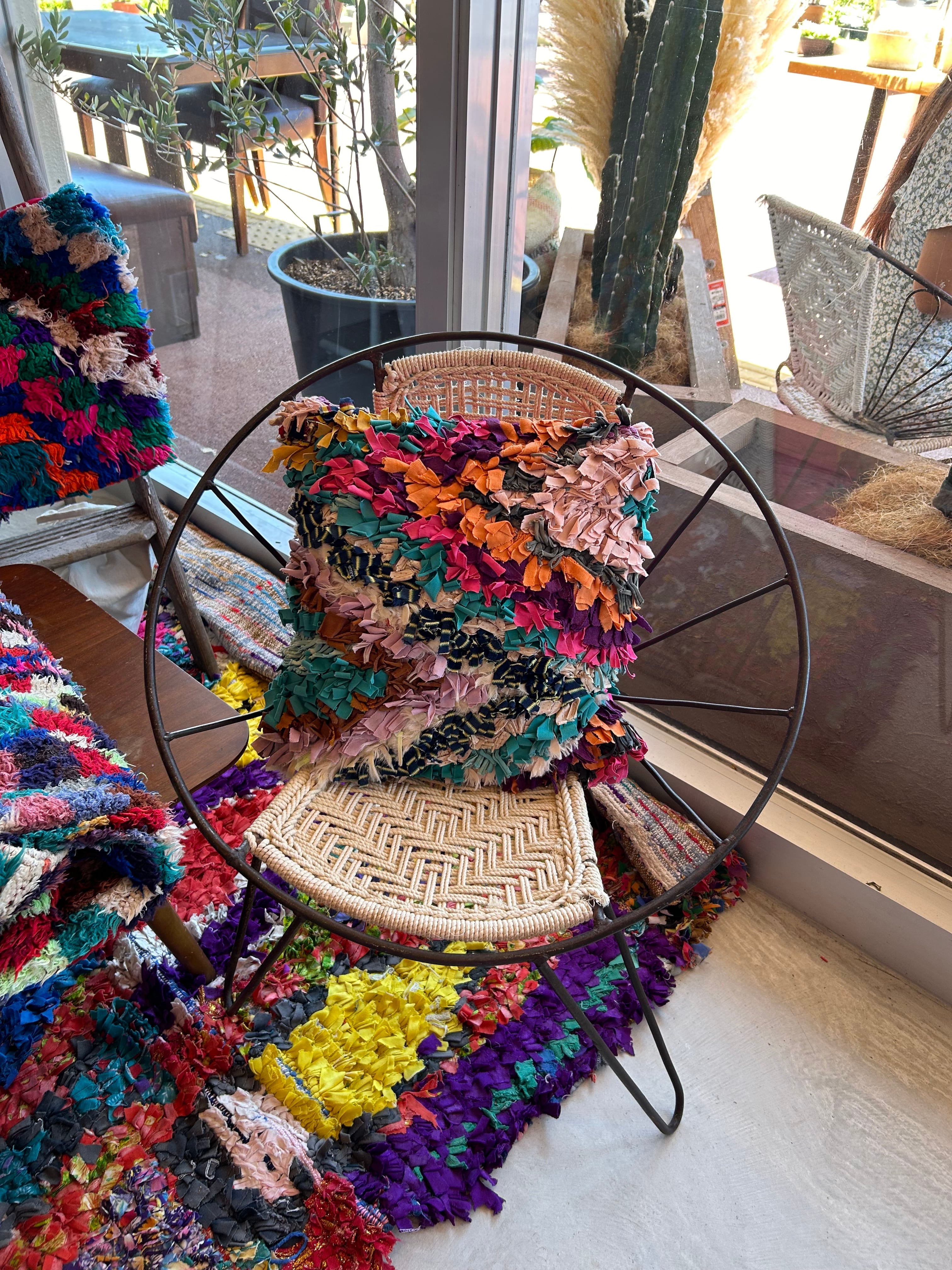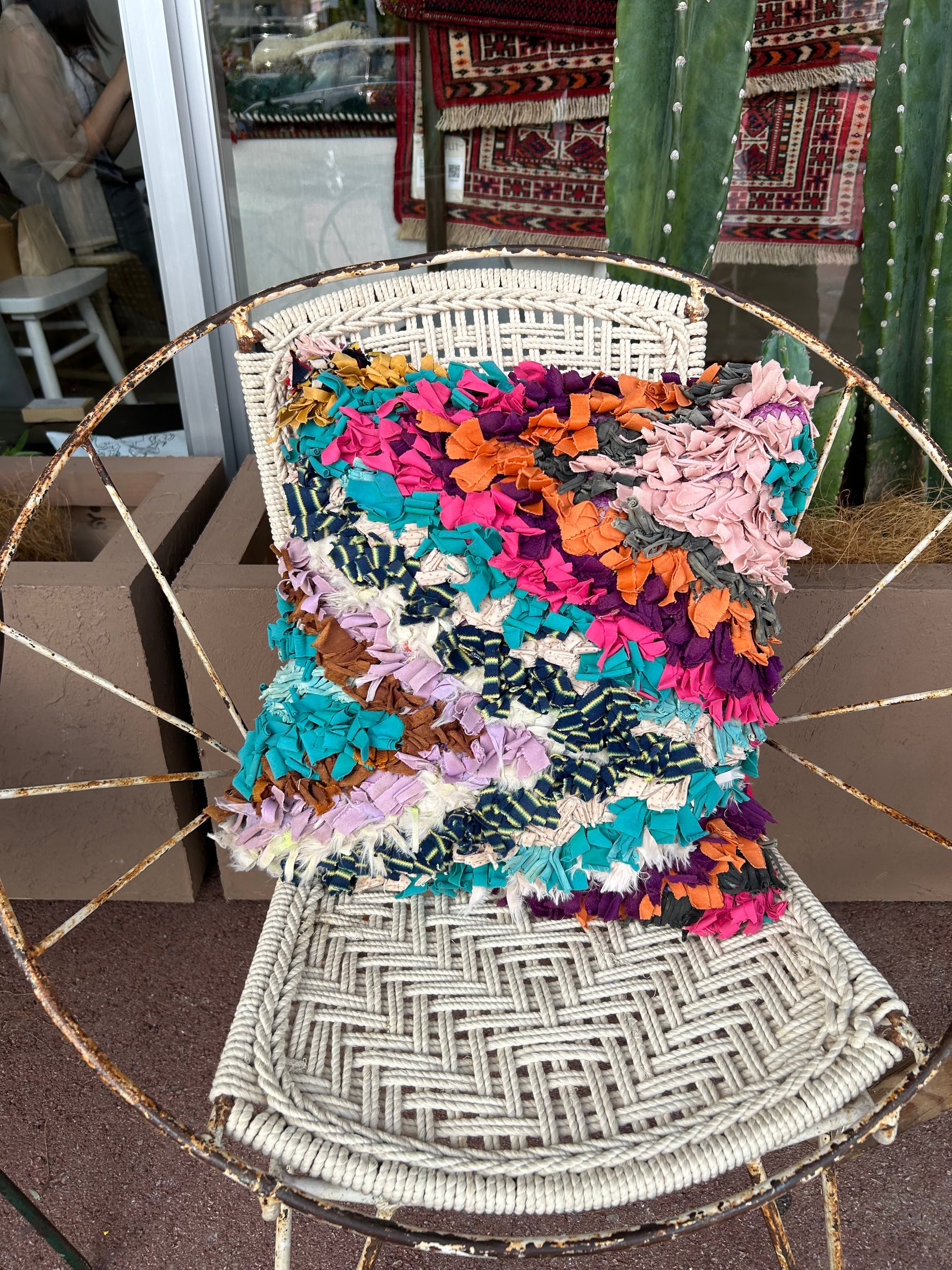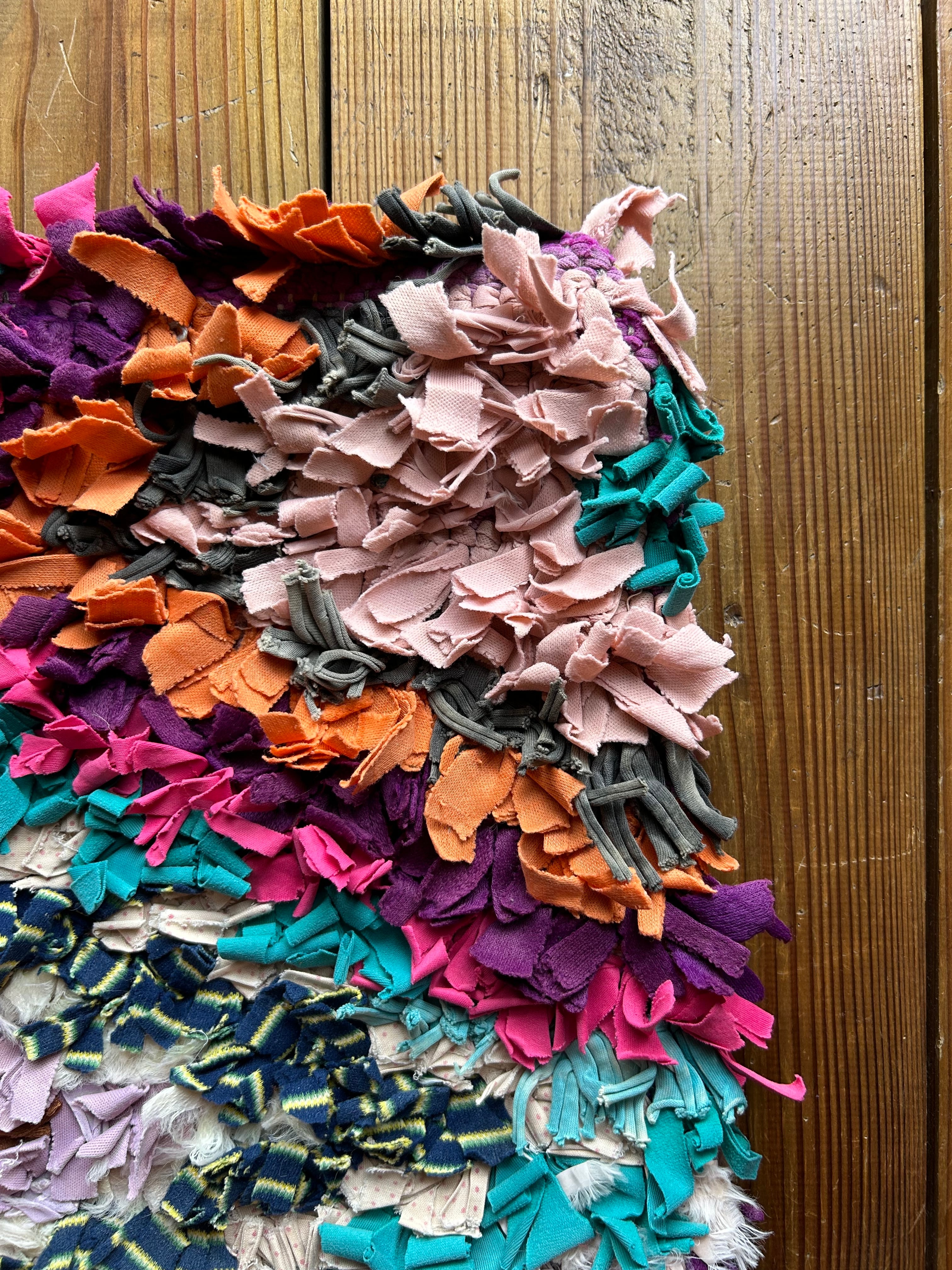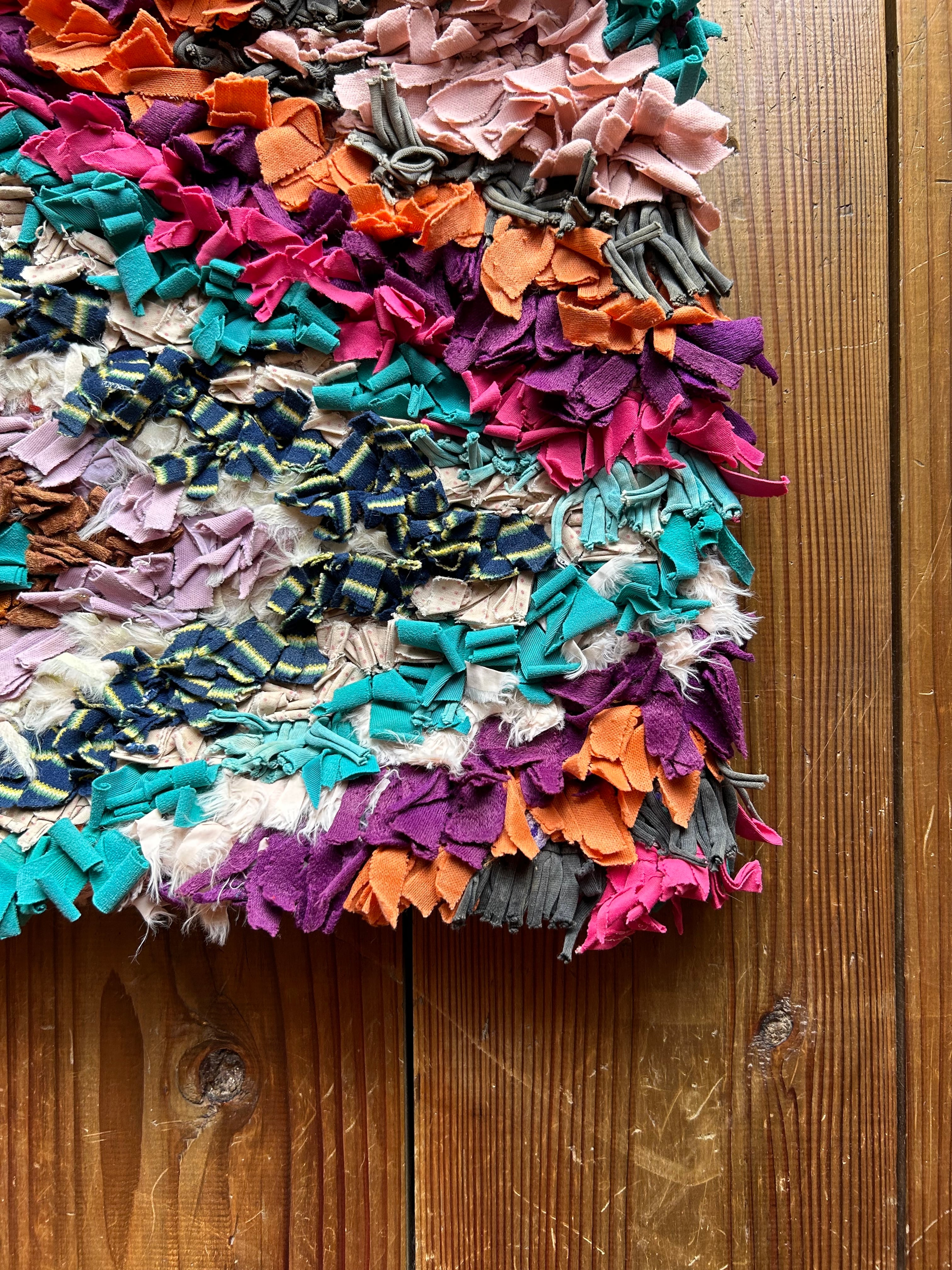 *いろんな種類の古着が使われてますので、強い日光に長時間当てると色落ちする場合もあります。裏返したり陰干しにして調整してあげるとカラフルな色が長持ちします^^
