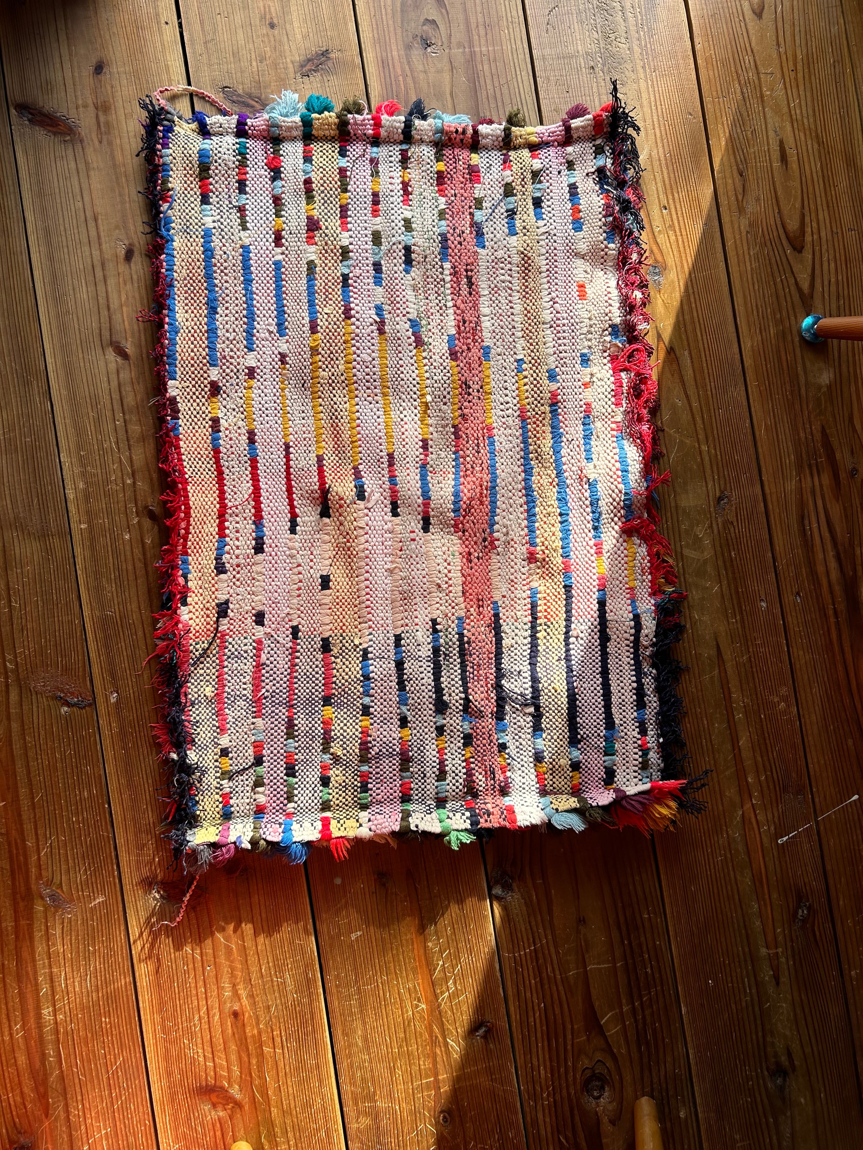 *いろんな種類の古着が使われてますので、強い日光に長時間当てると色落ちする場合もあります。裏返したり陰干しにして調整してあげるとカラフルな色が長持ちします^^