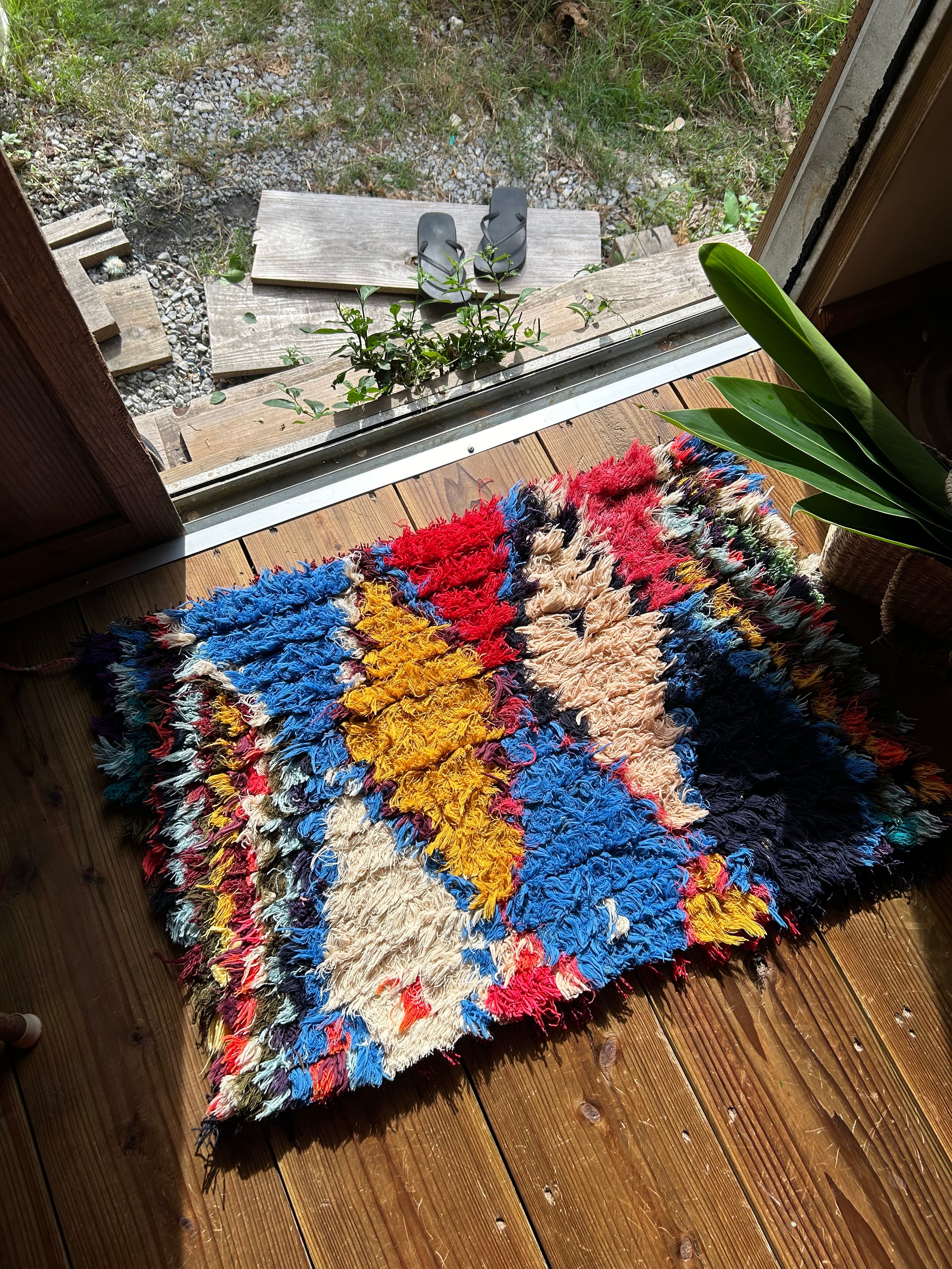 made in morocco モロッコ直輸入のラグをカットしてます。