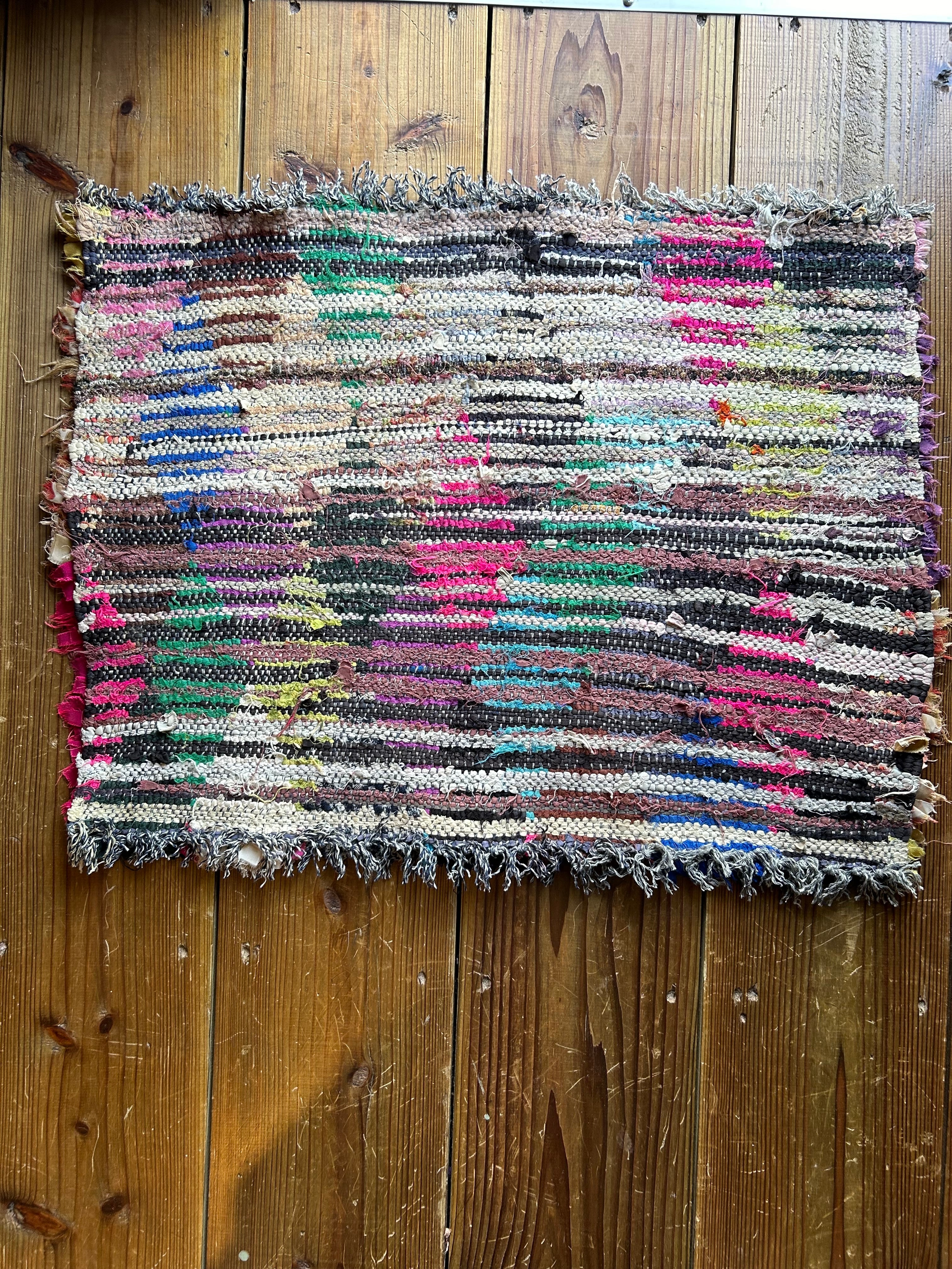 *いろんな種類の古着が使われてますので、強い日光に長時間当てると色落ちする場合もあります。裏返したり陰干しにして調整してあげるとカラフルな色が長持ちします^^