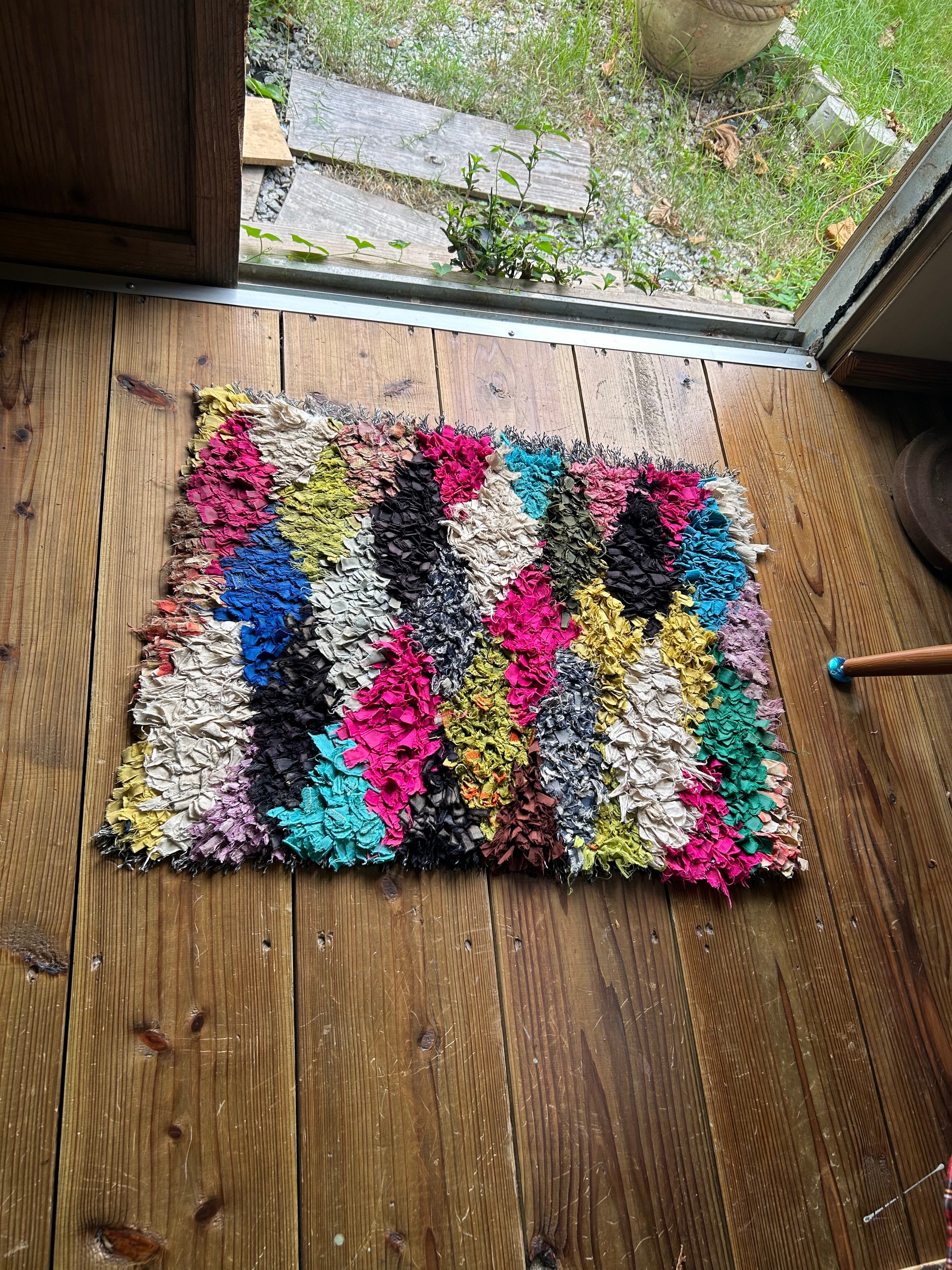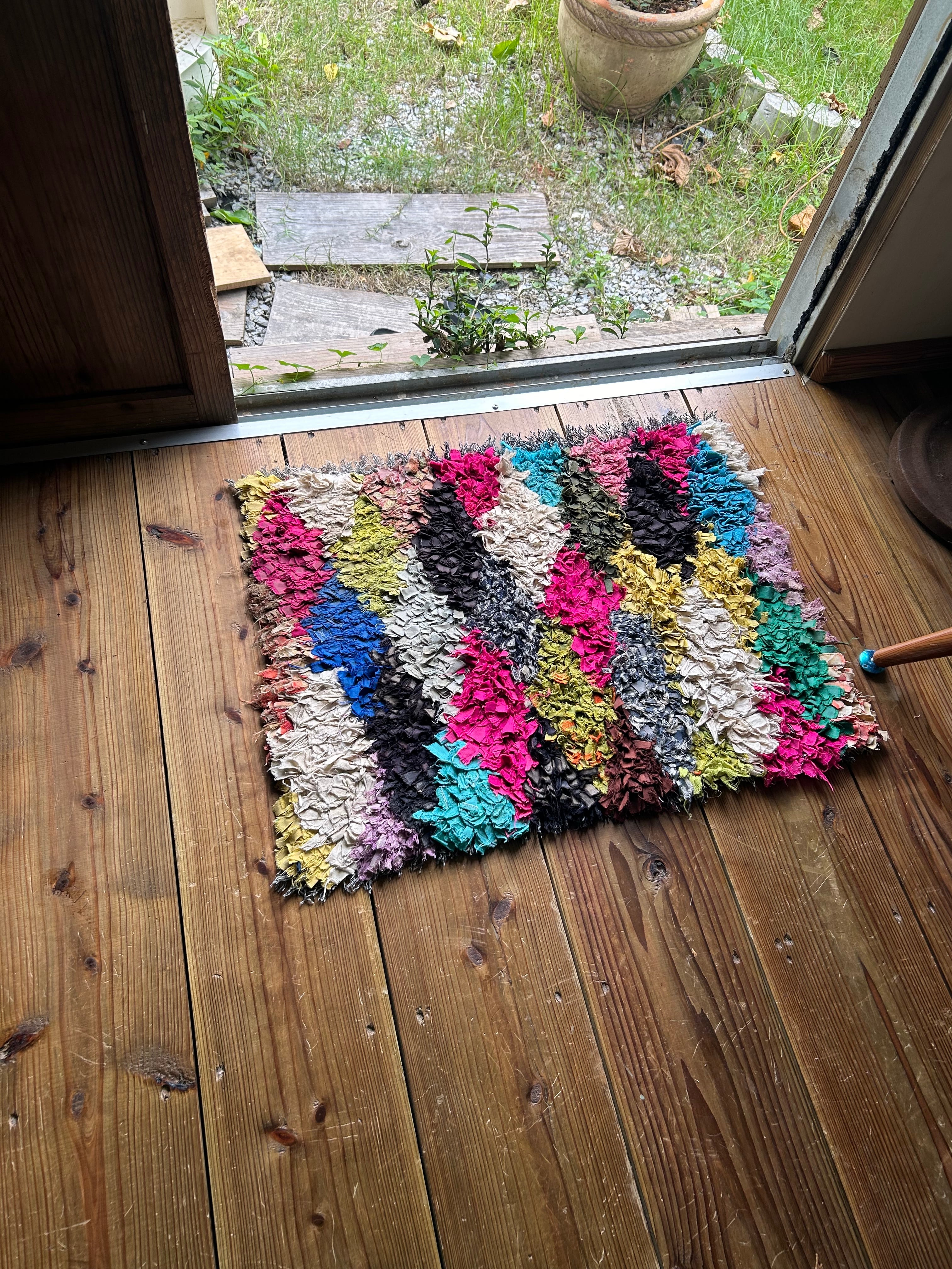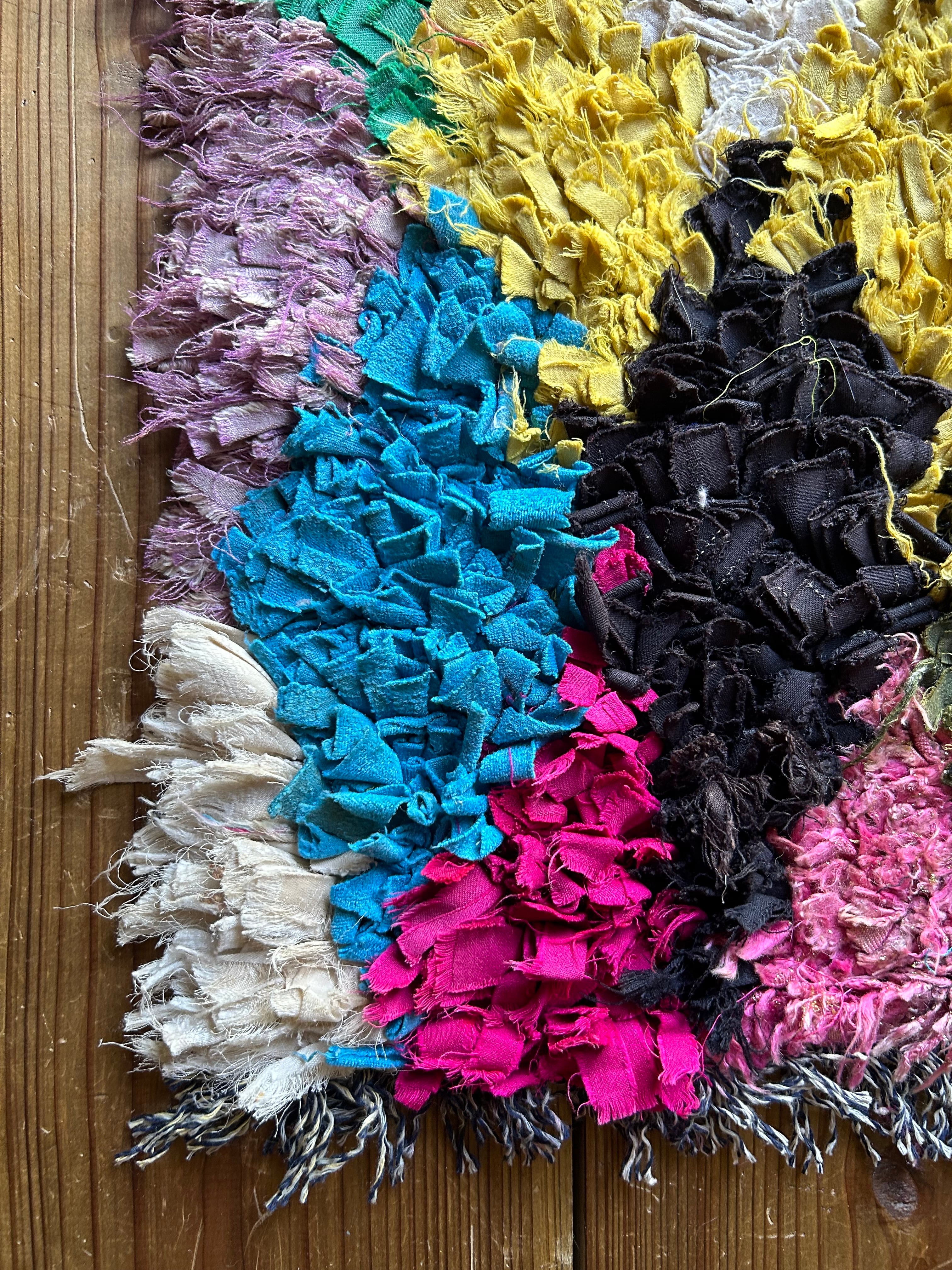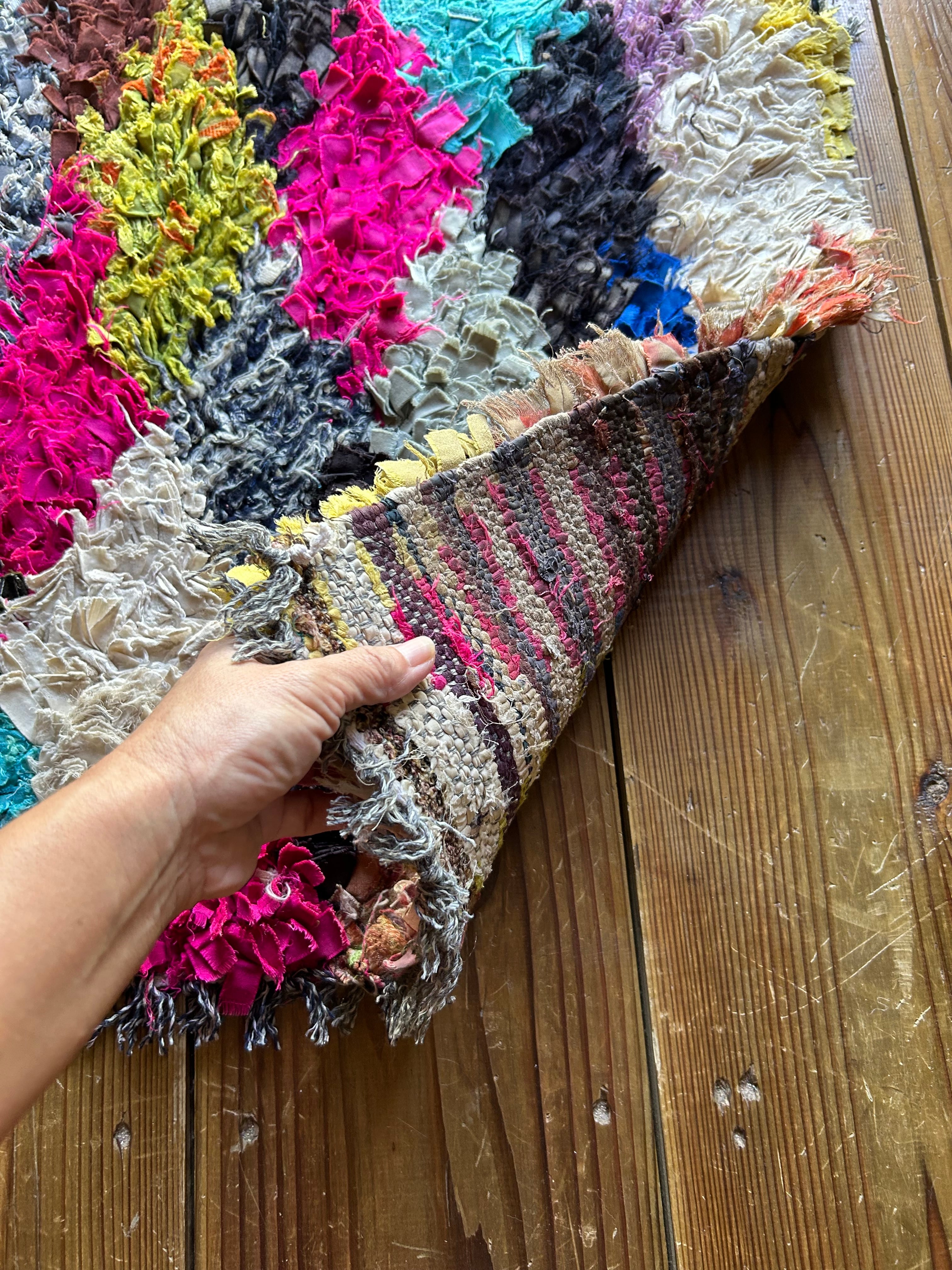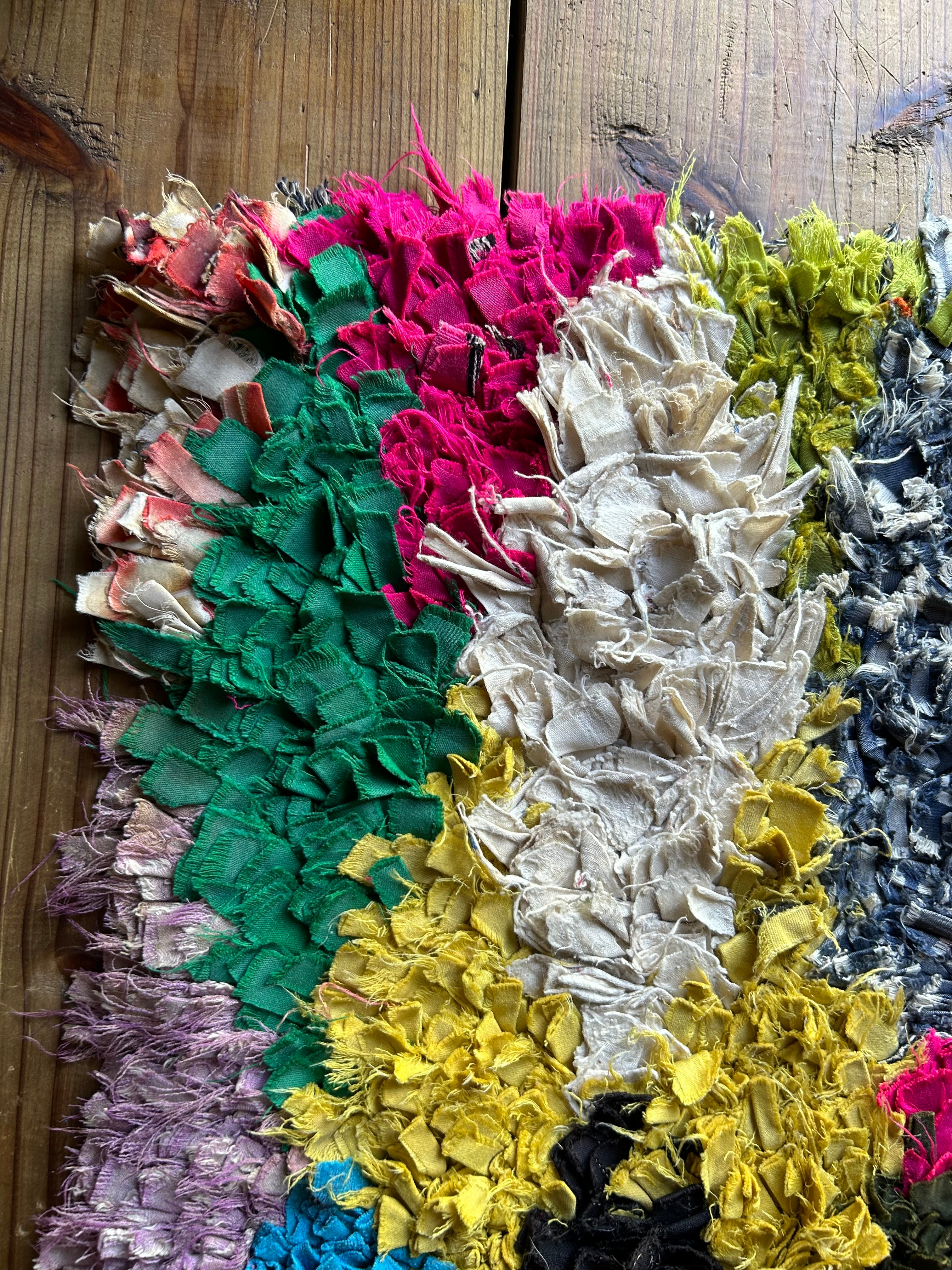 *いろんな種類の古着が使われてますので、強い日光に長時間当てると色落ちする場合もあります。裏返したり陰干しにして調整してあげるとカラフルな色が長持ちします^^