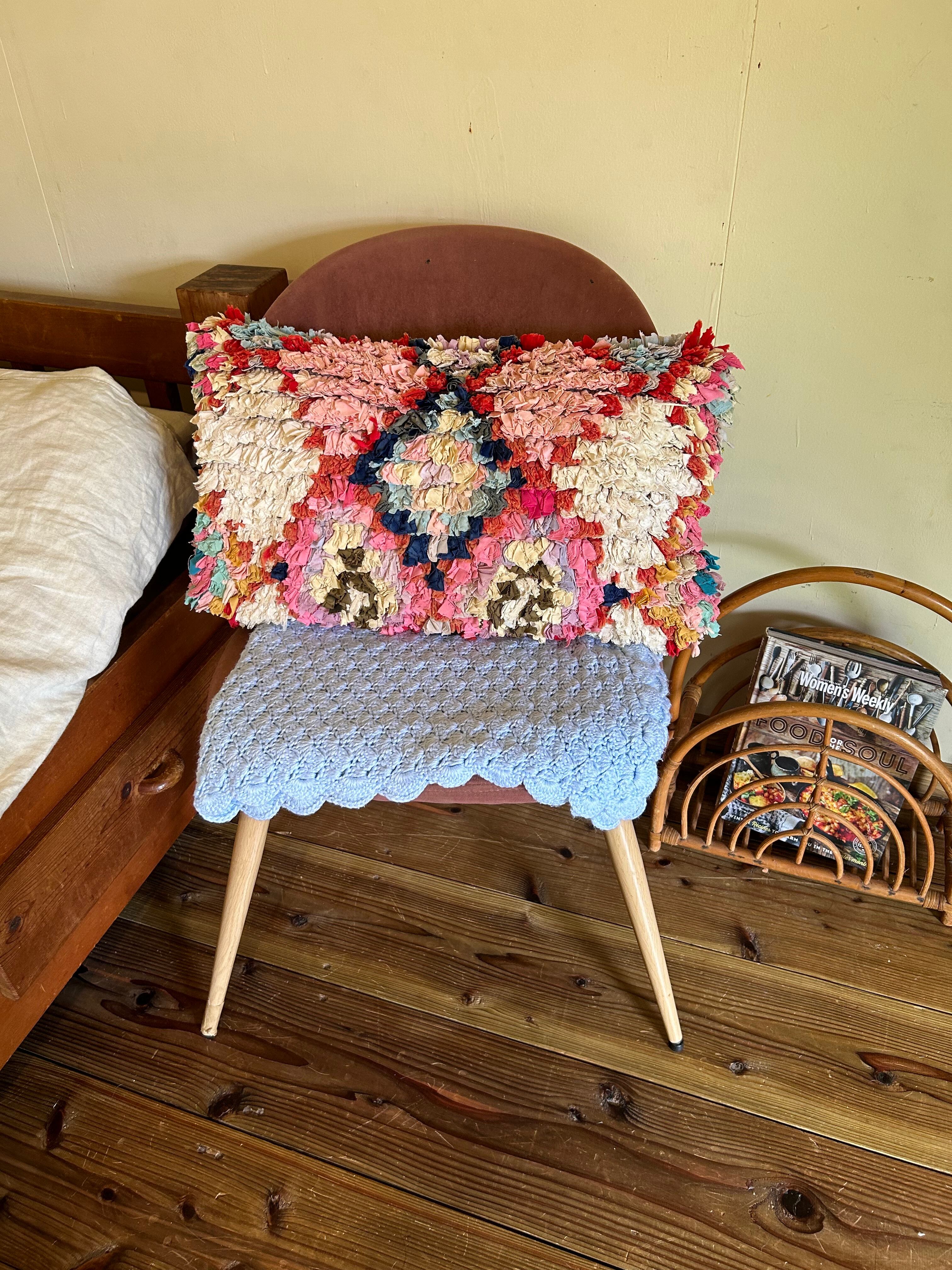 *いろんな種類の古着が使われてますので、強い日光に長時間当てると色落ちする場合もあります。裏返したり陰干しにして調整してあげるとカラフルな色が長持ちします^^